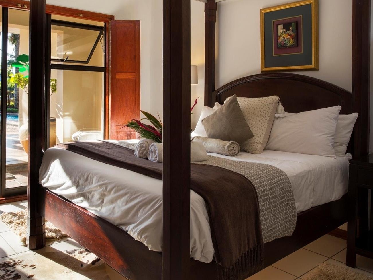 The rooms on offer include Standard Rooms, Economy Twin, and Economy Double. All rooms come equipped with comfortable beds, an en-suite bathroom, air-conditioning, and tea and coffee-making facilities. These rooms also come equipped with Wi-Fi, TV, DStv, a hair dryer, and a safe.