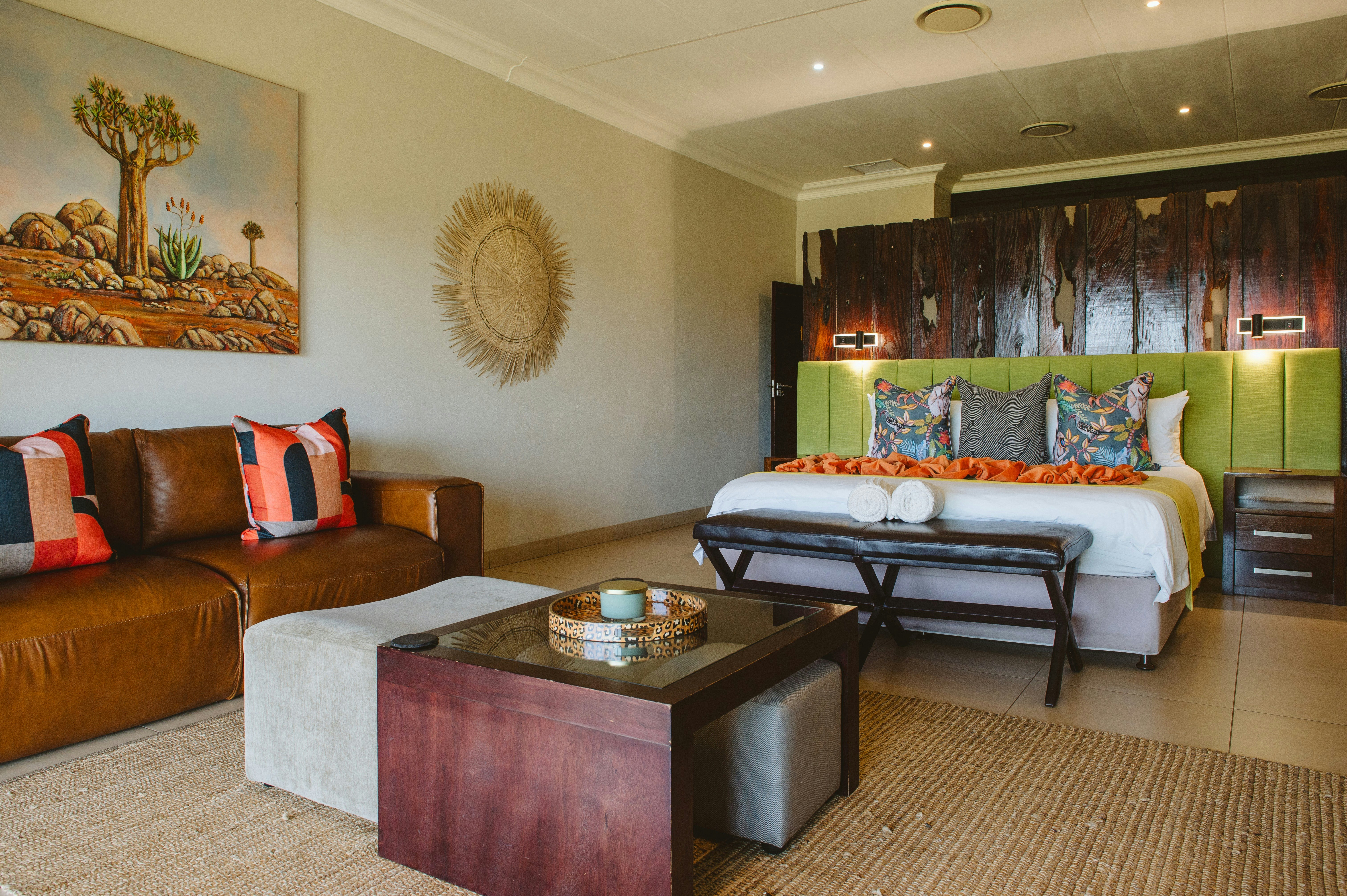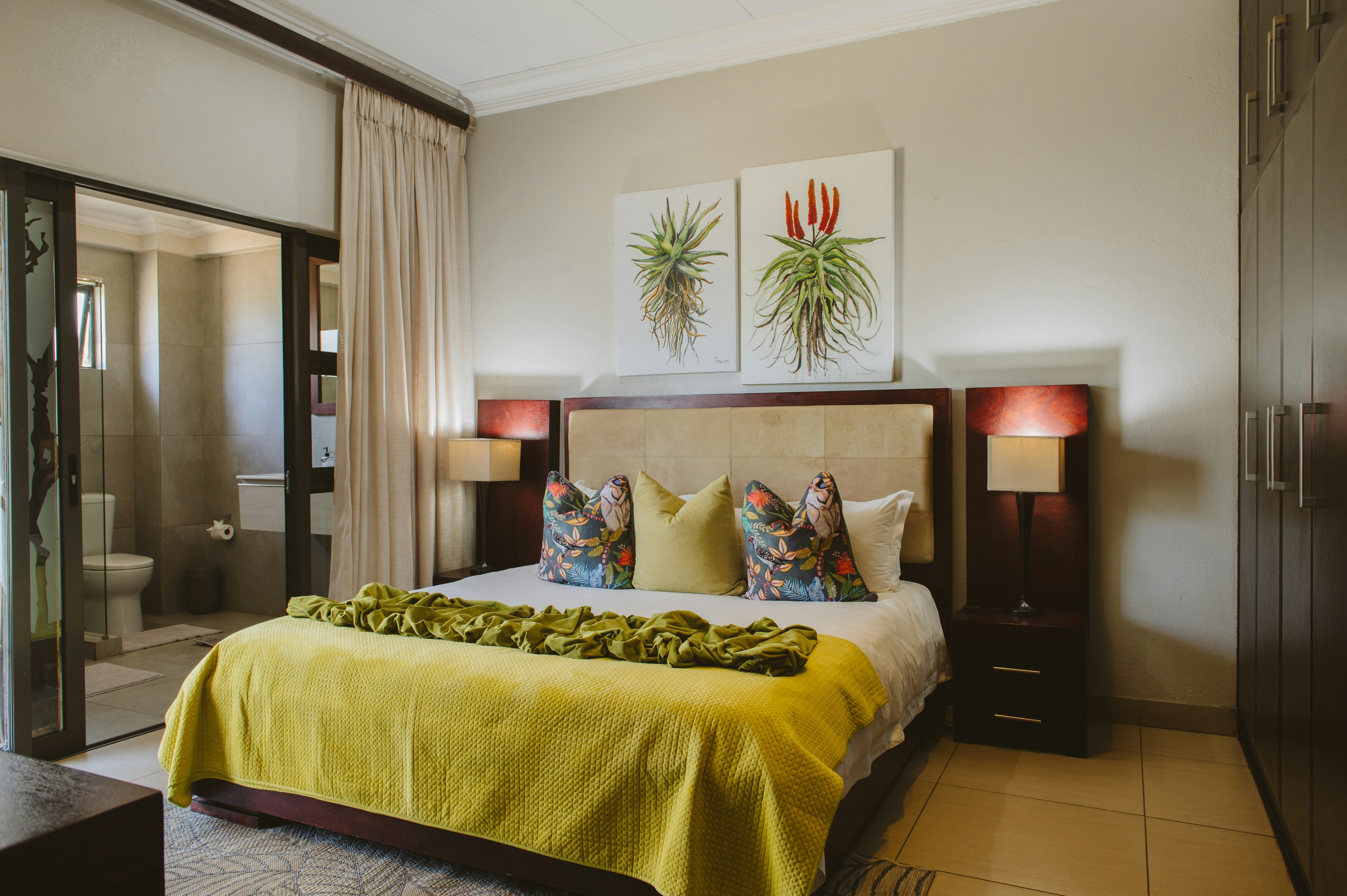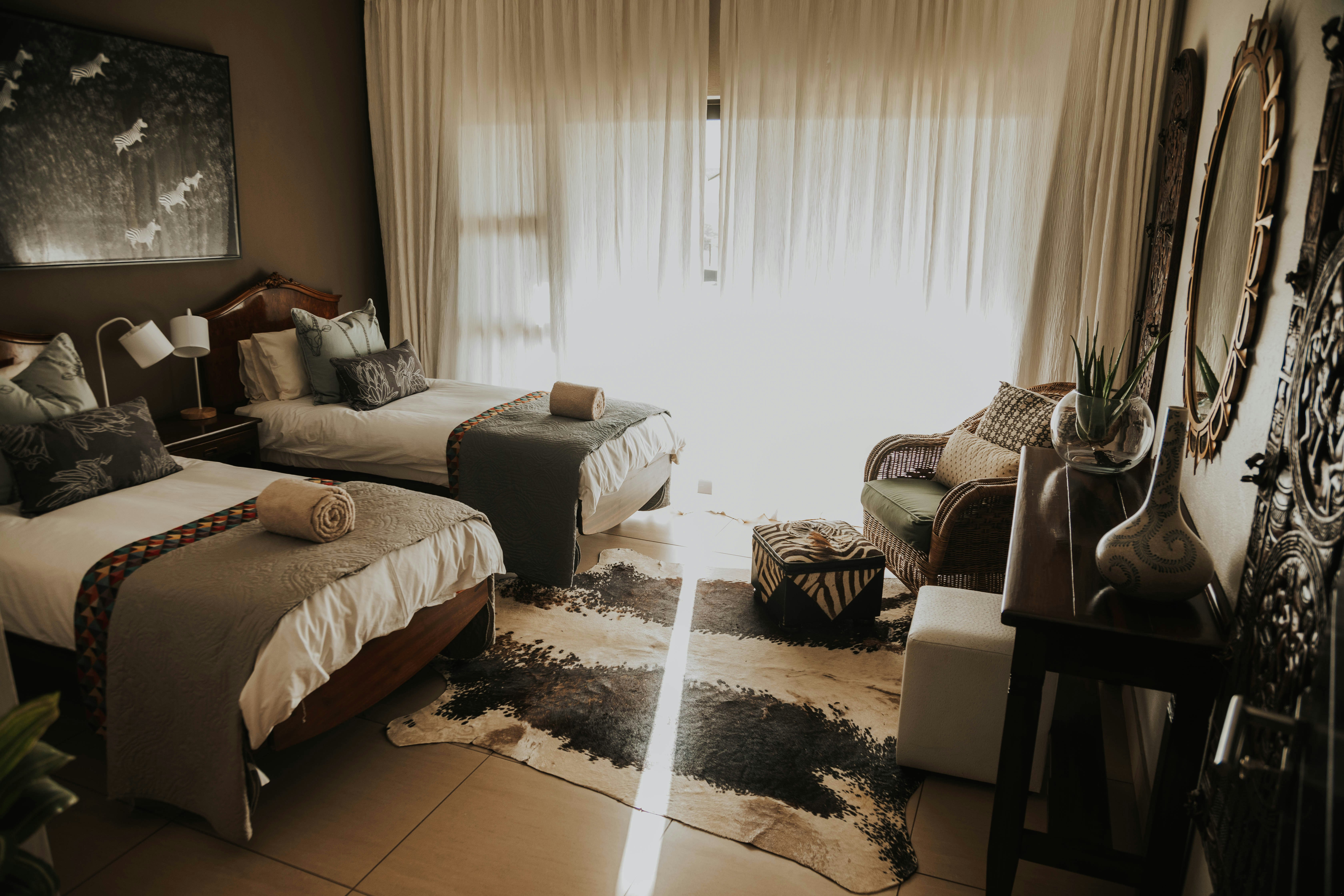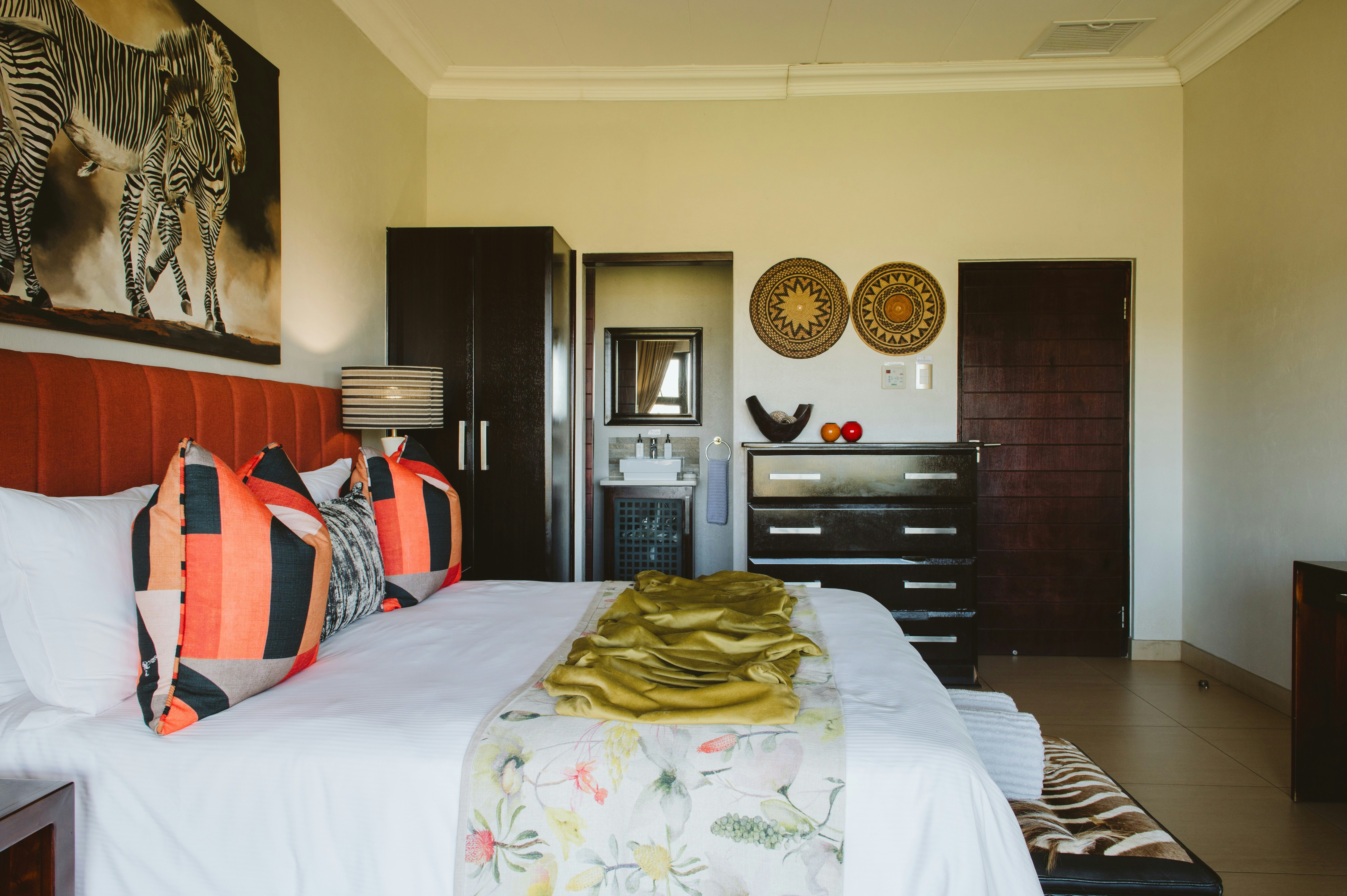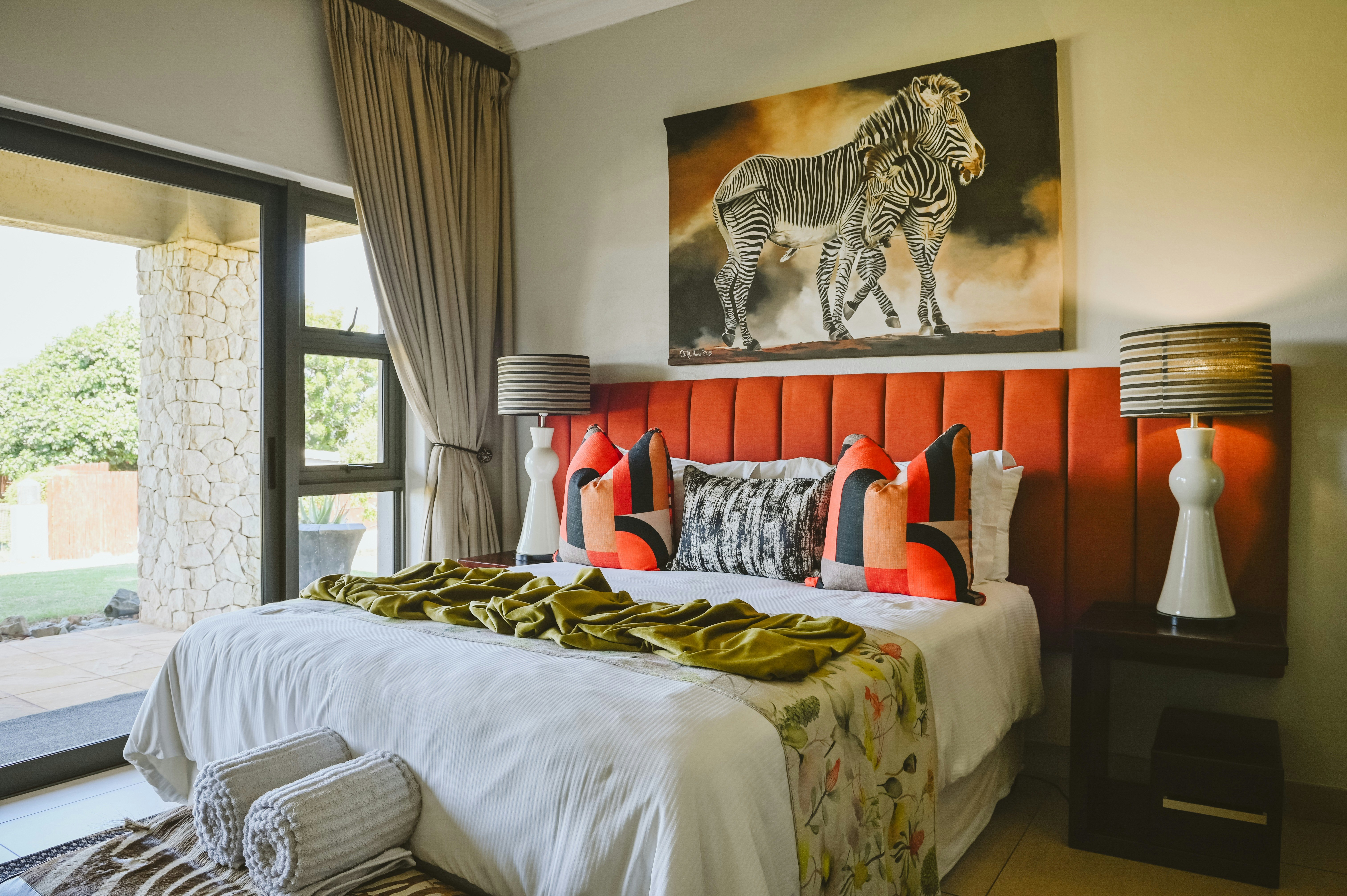 Tandweni Villa boasts panoramic views of Jozini dam and the Ubombo mountain range from every room. The villa can accommodate up to 10 guests and contains 5 luxury bedrooms and 5 bathrooms, 2 of which are en suite. The first bedroom is furnished with a king-size bed. The second and third bedrooms each have a queen-size bed, and the fourth and fifth bedrooms each contain 2 single beds. The main bedroom has a kids' room attached. All the luxury bedrooms have sliding doors that open up onto a covered patio with a lounge suite that flows onto the gardens. Each bathroom is fitted with either a bath or a shower, or both, and some en-suite bathrooms feature double basins and a toilet.