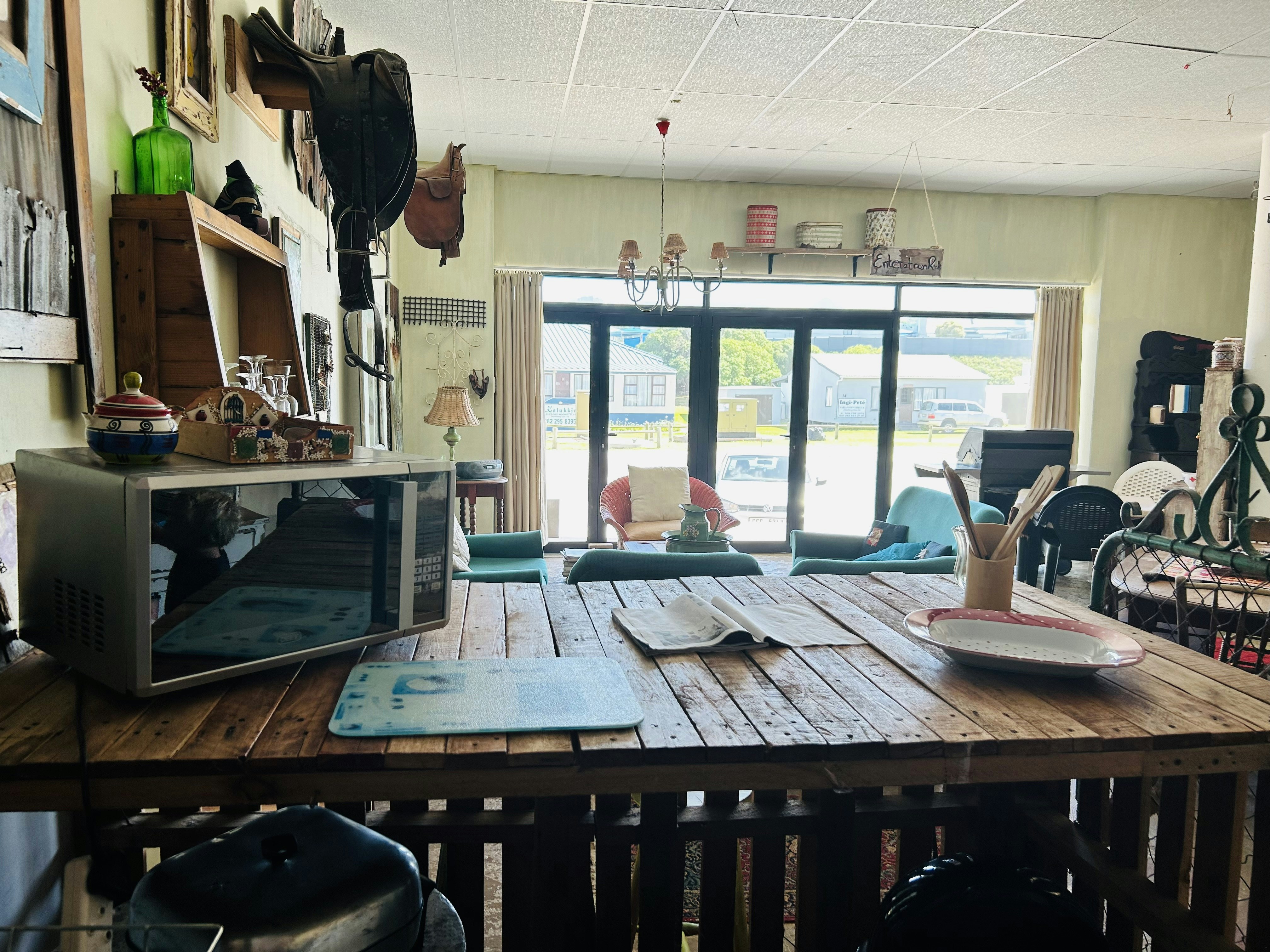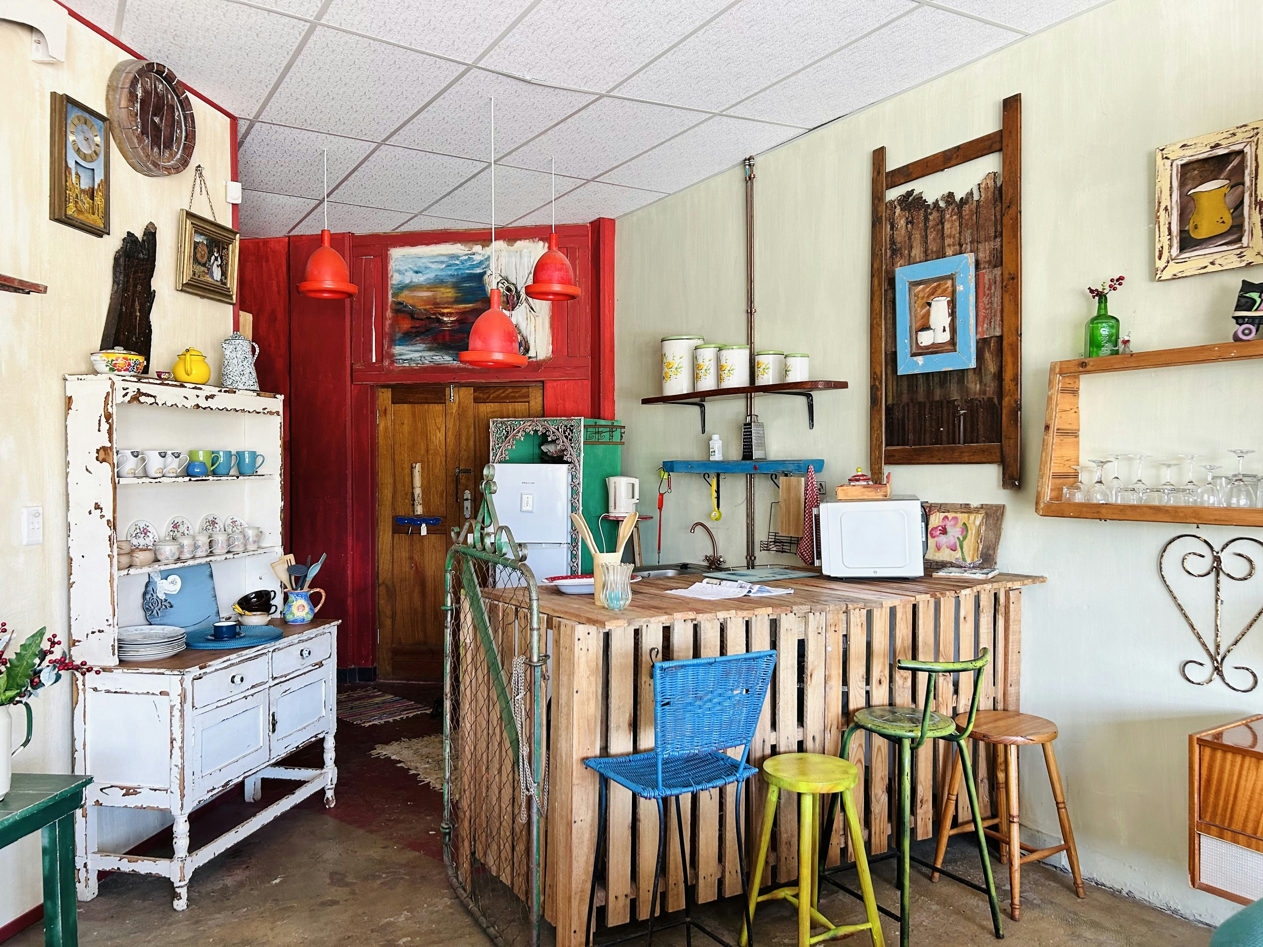 Die oopplan-leefarea nooi gaste om te ontspan met gemaklike sitplek, 'n etenstafel vir gedeelde maaltye en 'n kombuisie. Goed toegerus met 'n yskas-vrieskas, stoof, wasmasjien mikrogolfoond en koffie- en teemaakgeriewe. Vir buitekook-entoesiaste word 'n gasbraai ook voorsien. Veilige parkeerplek op die perseel bied gemoedsrus vir gaste.
