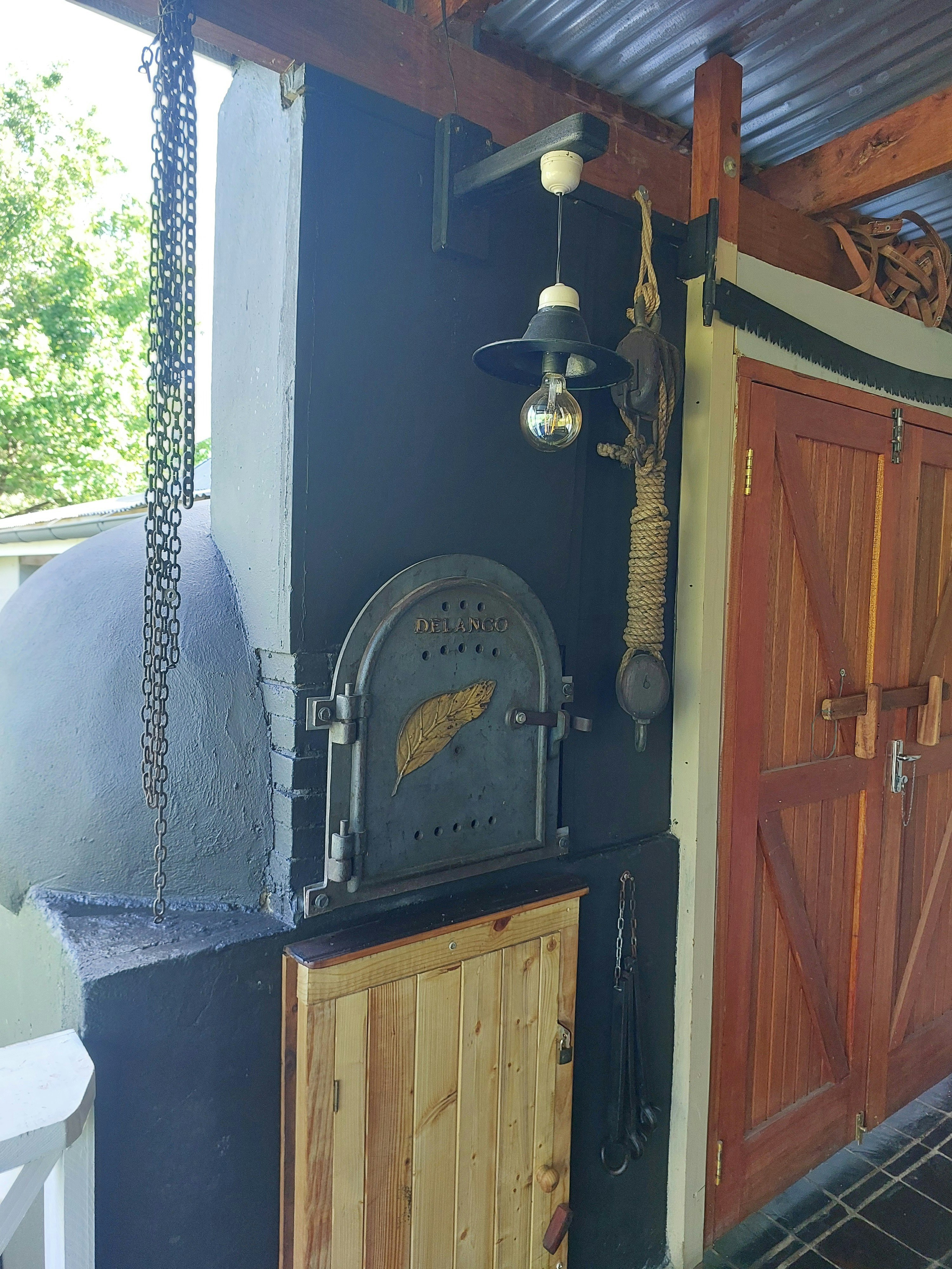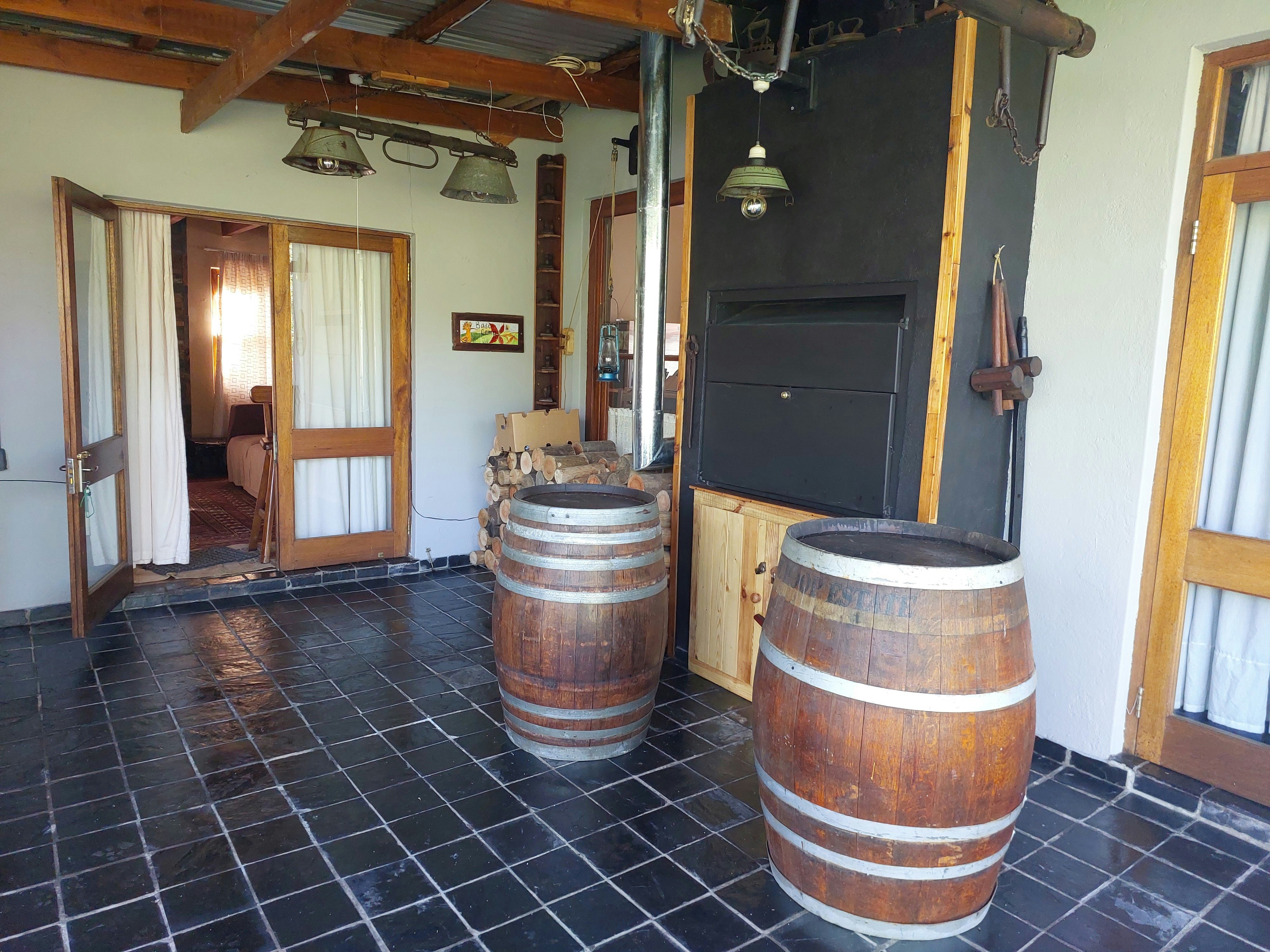 Die buite-area beskik oor 'n moderne ingeboude braai, 'n vuurpylstyl-braai en 'n pizza-oond, met genoeg hout voorsien vir die eerste nag se verblyf.