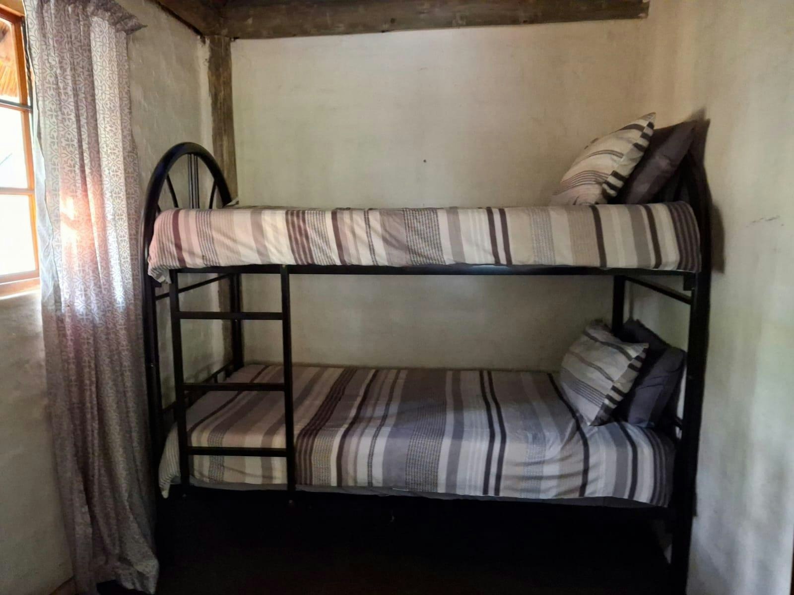 The self-catering cabin comprises a tri-bunk bed and a bunk bed. Guests have access to shared ablution facilities with showers and toilets. The unit is equipped with a microwave, fridge, tea- and coffee-making facilities, DStv Business package, extra blankets, fan, as well as a larger undercover veranda with seating and braai facilities nearby.