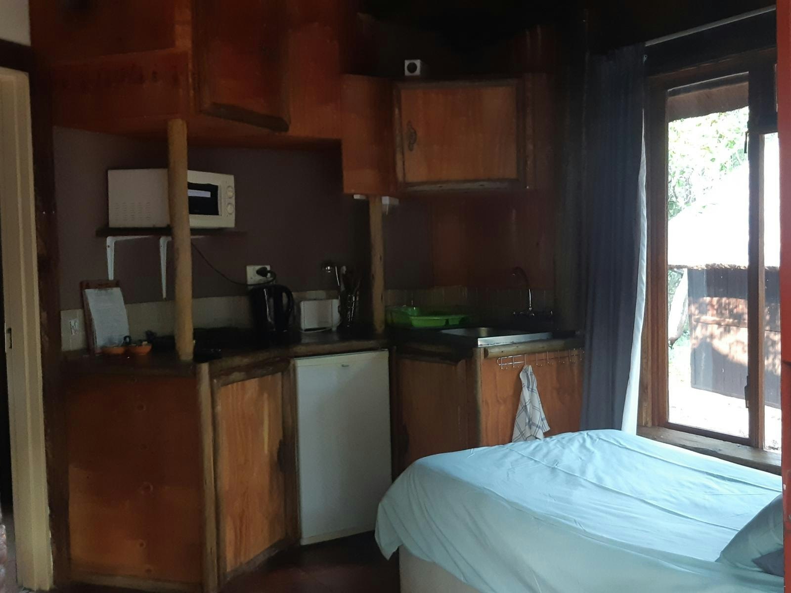 Of the accommodation on offer, there are two 5-sleeper chalets and 2 4-sleeper chalets. Each of the 5-sleeper chalets has a main bedroom with a double bed, a small en-suite bathroom with a shower and toilet, an open-plan sleeping area with a bunk bed and a single bed. The 4-sleeper chalets comprise a main bedroom, one with a double bed and the other with a bunk bed, and a bathroom with a shower and toilet. Each chalet has a kitchenette with a stove, microwave, bar fridge and kettle, an open-plan living area with a TV with business DStv Business bouquet and a patio with braai facilities and an alfresco dining area.