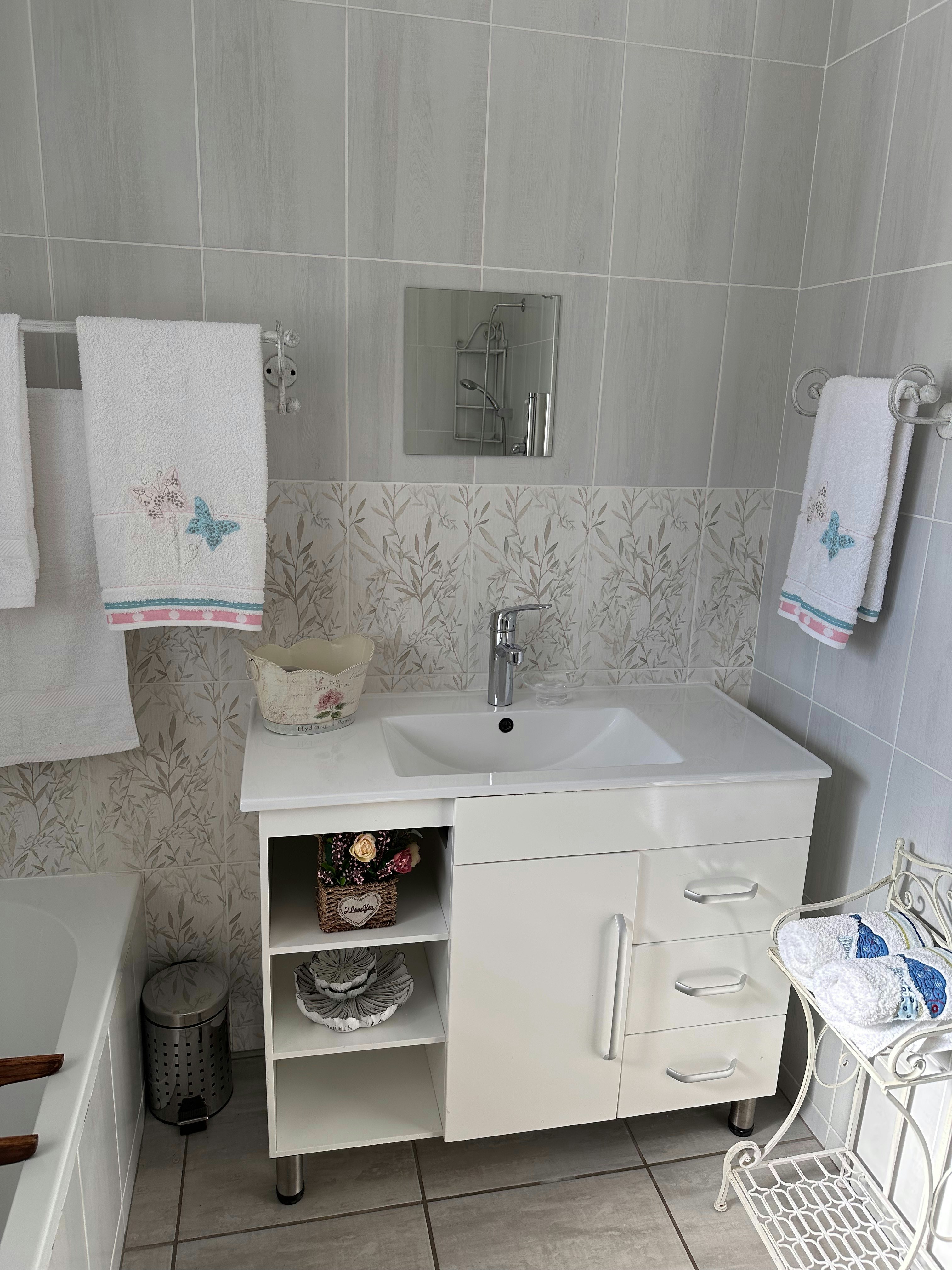 One room has an en-suite bathroom, and the other has a bathroom located opposite the room door. The Ferox Suite is an en-suite room furnished with a queen-size bed and accommodates 2 guests. The bathroom is fitted with a shower, toilet, and basin. The Vera Room has a bathroom located opposite the room entrance, fitted with a shower, bath, and toilet.