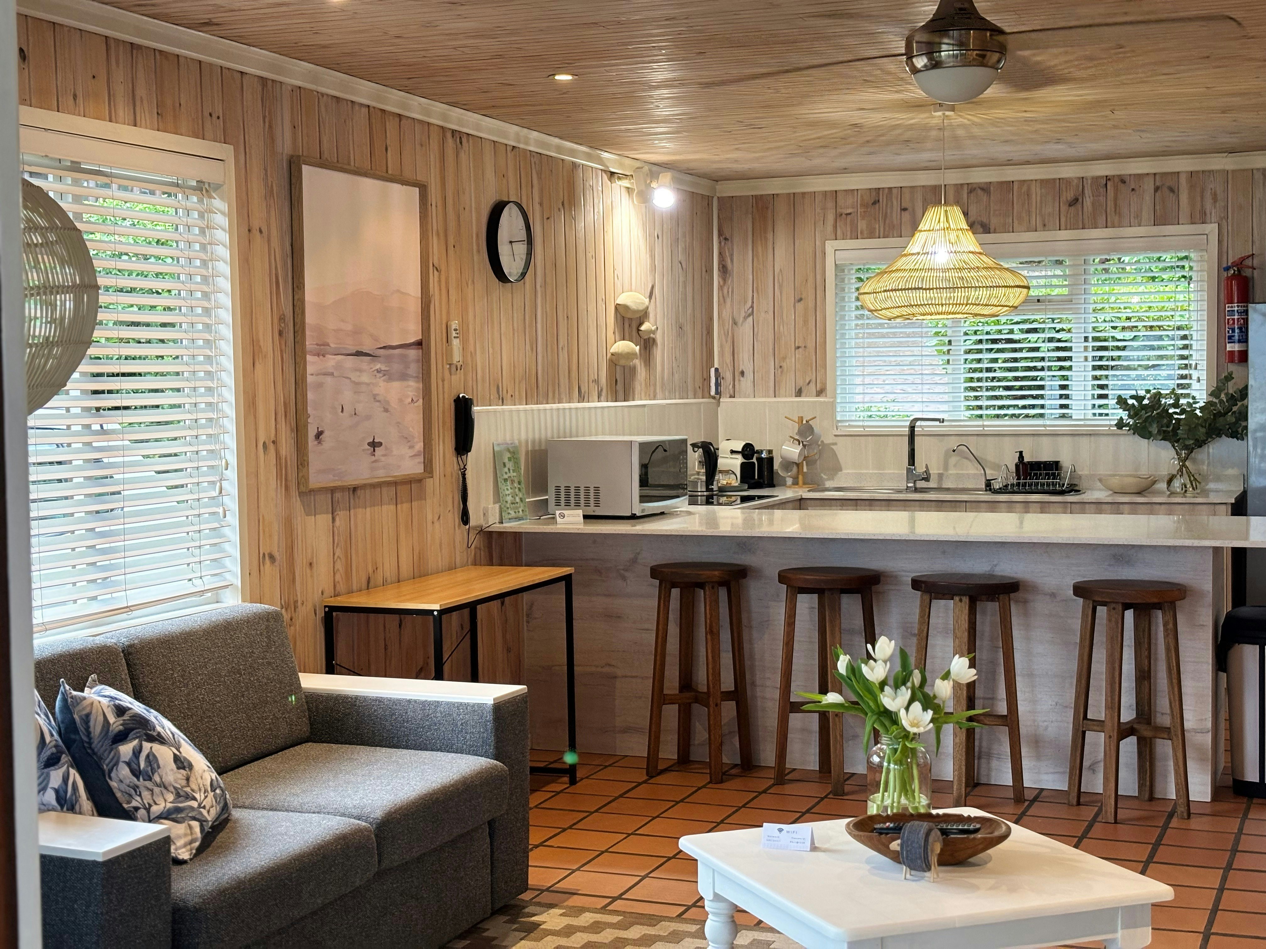 This spacious cottage can accommodate 4 guests and comprises 1 bedroom and a shared bathroom fitted with a shower, basin, and toilet. The bedroom is furnished with a queen-size bed, while a double sleeper couch is available in the living area. All linen and bath towels are provided.