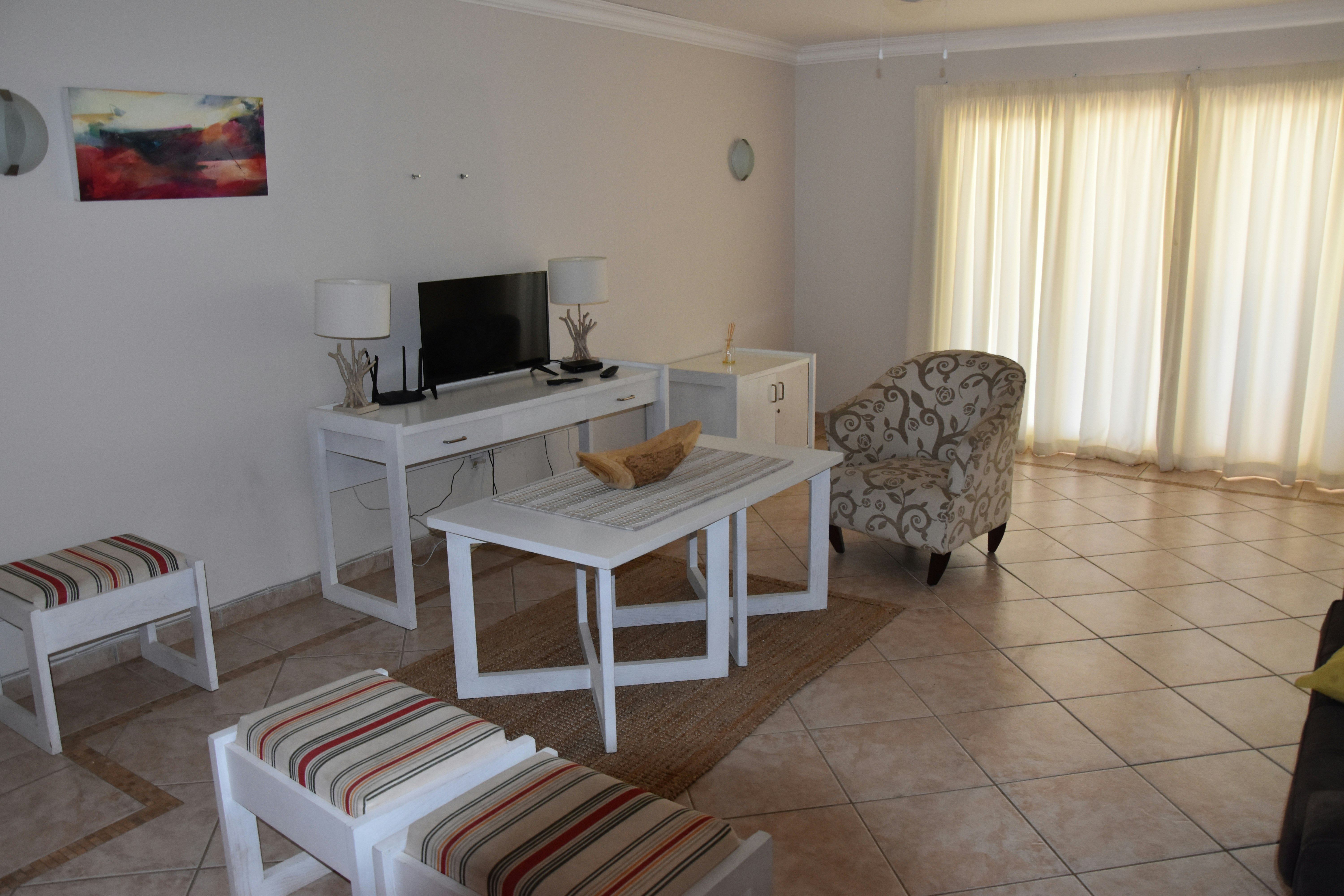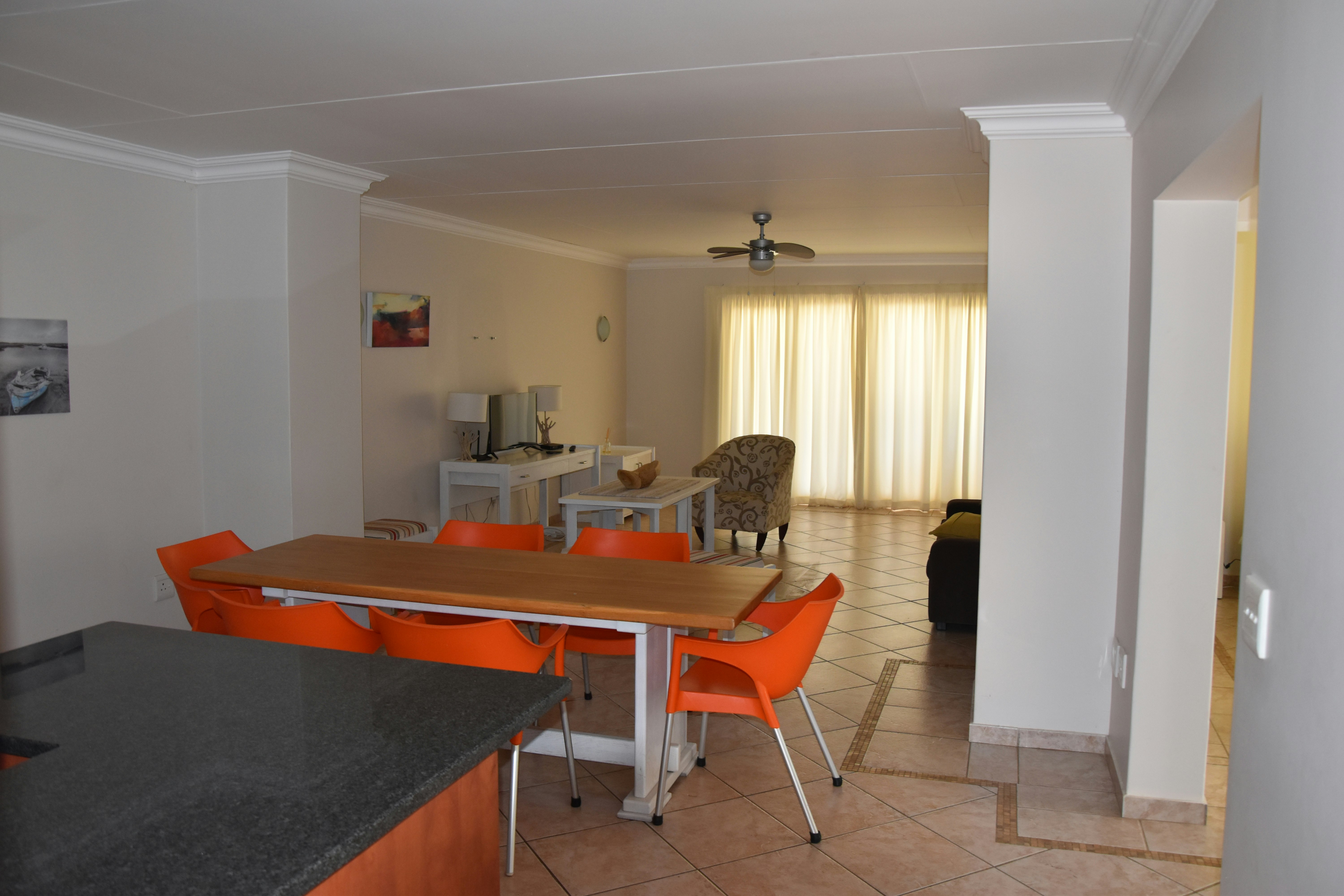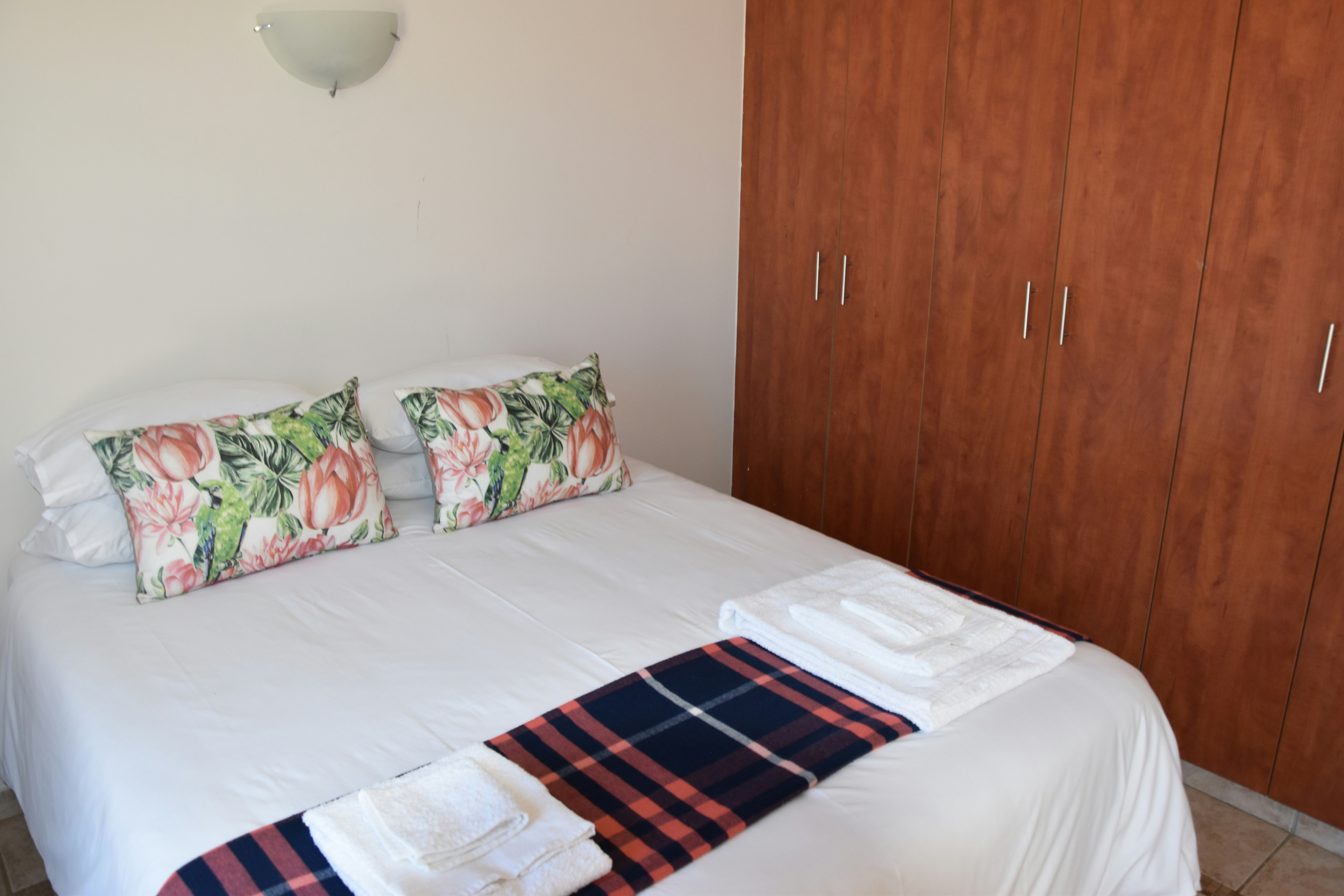 The kitchen is fully equipped for self-catering and contains a stove, oven, fridge-freezer, microwave, and cutlery and crockery. The dining area has seating space for 6 people, while the lounge has a comfy lounge suite and a flat-screen TV with selected DStv channels. The patio has a built-in braai.
