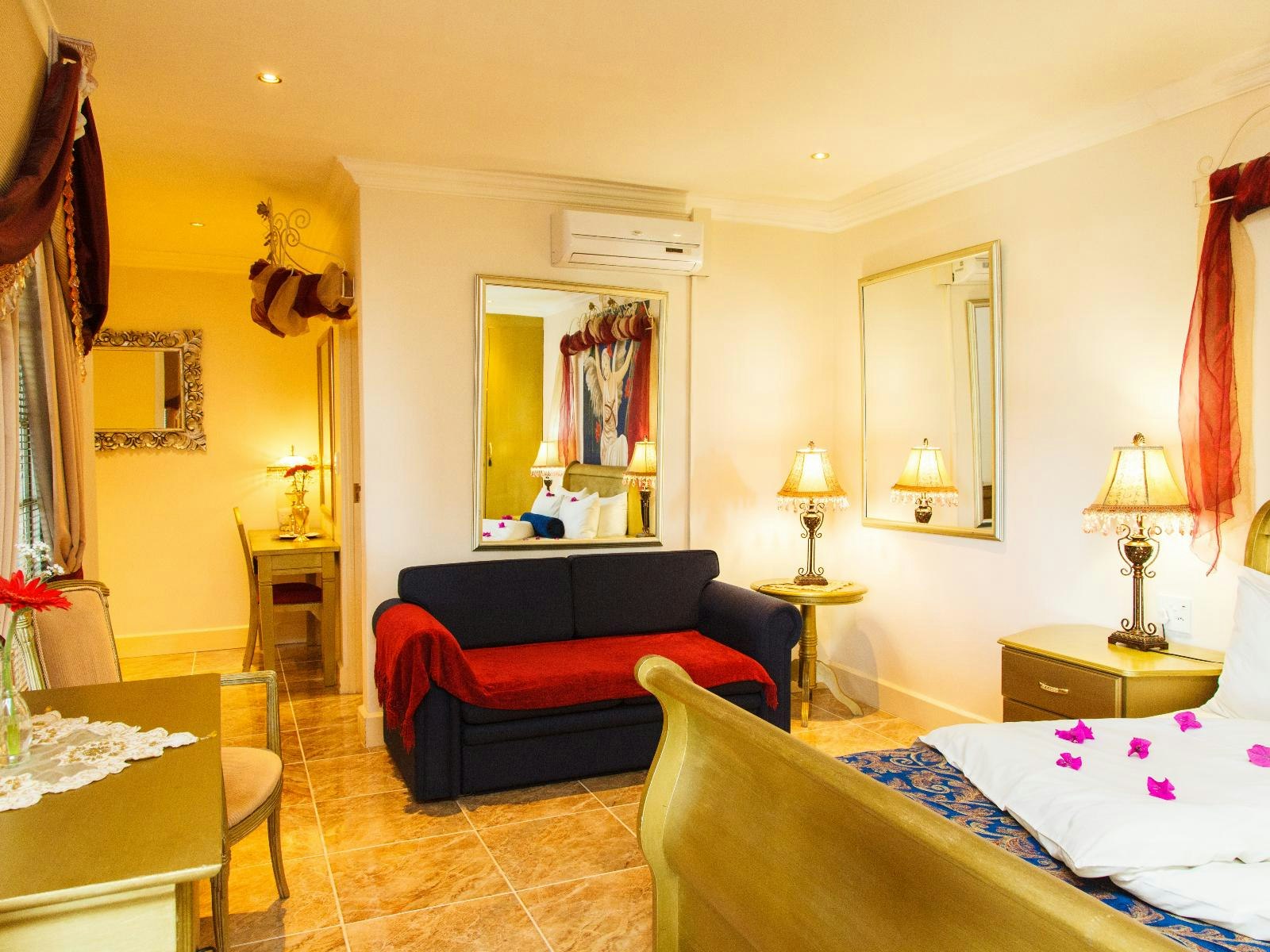 Hier is verskeie luukse beddens en kussings om van te kies om aan ons gaste 'n goeie nagrus te verseker. Net die beste linne, satelliet-TV, japon en pantoffels, fluweelsagte handdoeke, kruie- en organiese seep, sjampoe en lyfroom word in elke suite voorsien. Elke suite het lugversorging wat vir enige seisoen ingespan kan word en beskik oor versierings en tekstiele wat van regoor die wêreld afkomstig is. Vars blomme en vrugte word daagliks voorsien. Jy het ook 'n privaat 24 uur-butler tot jou beskikking.