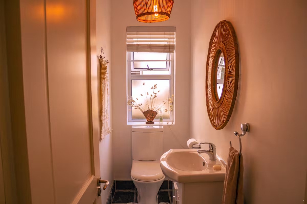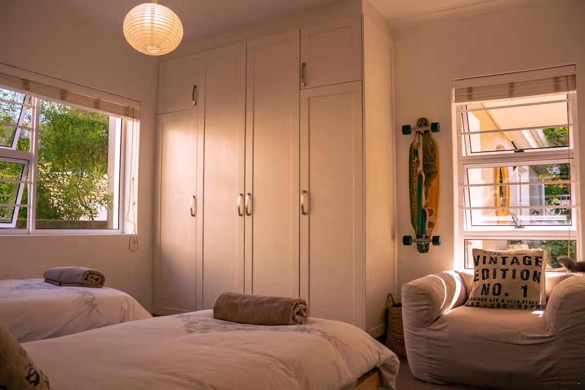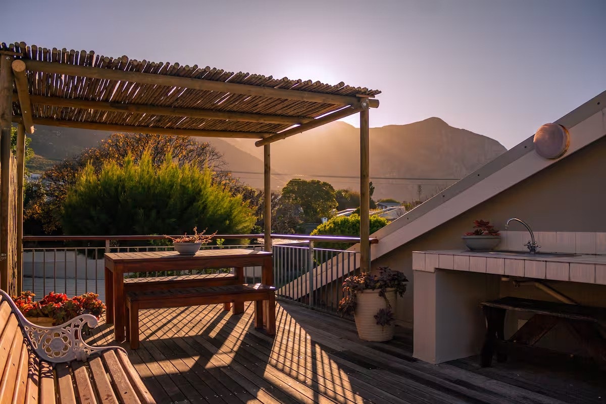 The cottage also includes a cosy TV lounge with comfortable couches and a smart TV with Netflix. Complimentary Wi-Fi is available throughout the property. Outside, guests can relax on the rooftop balcony, which is furnished with outdoor seating and braai facilities, and offers scenic views of the mountains and ocean. Secure parking is provided. The Bali Cottage is ideally located within easy reach of Hermanus’s top attractions, from coastal hiking trails to a wide variety of restaurants and world-class whale watching.