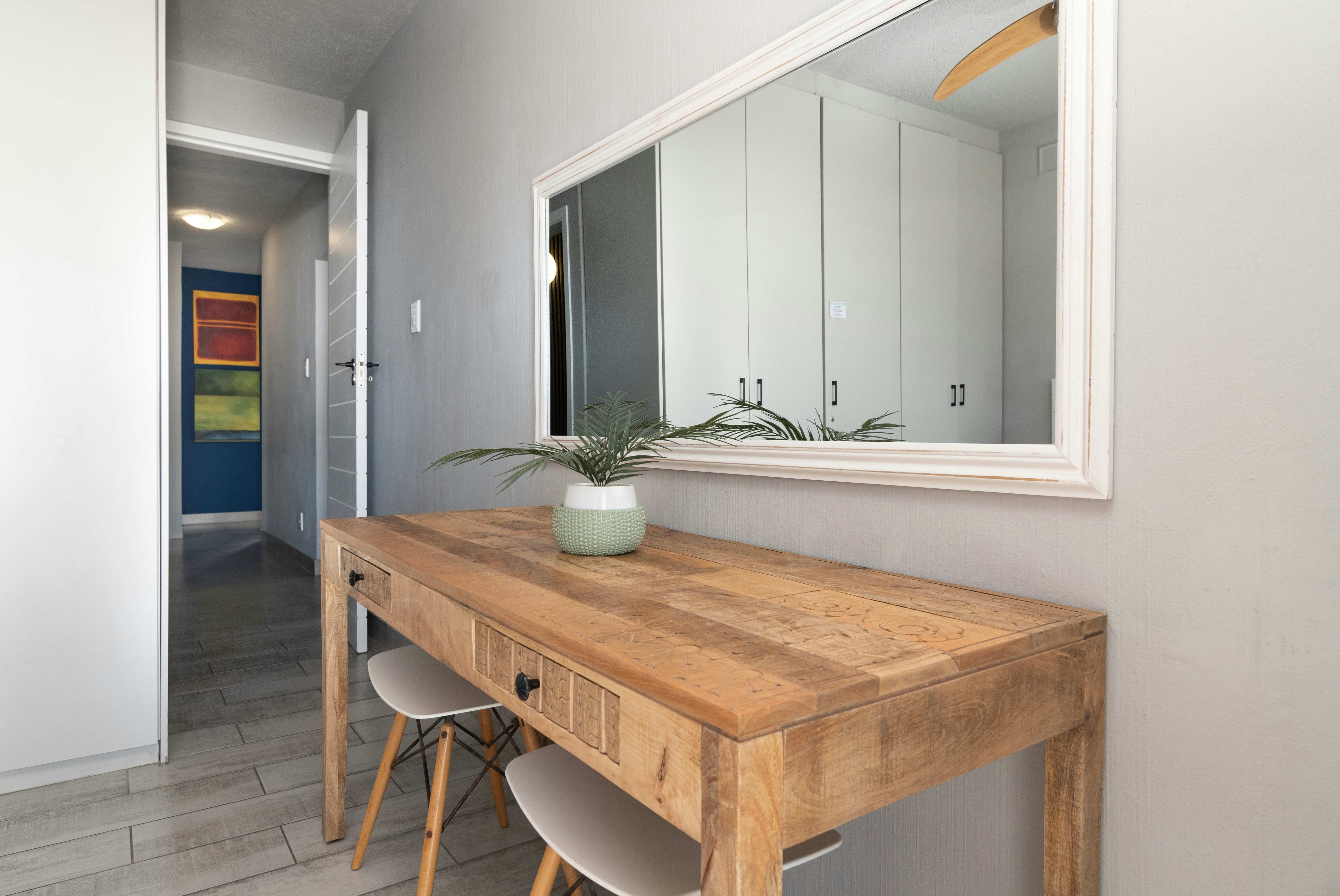 This self-catering apartment consists of 3 bedrooms and 2 bathrooms, which can comfortably accommodate up to 6 guests at a time. The main bedroom is furnished with a king-size bed and offers a sea-facing patio. It offers an en-suite bathroom fitted with a bath and shower. The second bedroom has a king-size bed, while the third bedroom has 2 single beds. A guest bathroom is fitted with a shower, basin, and toilet. All 3 bedrooms have ceiling fans.
