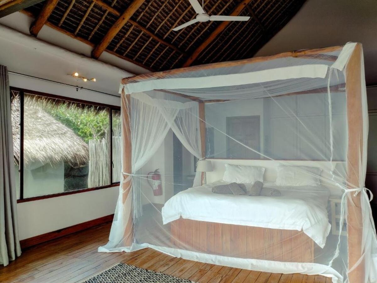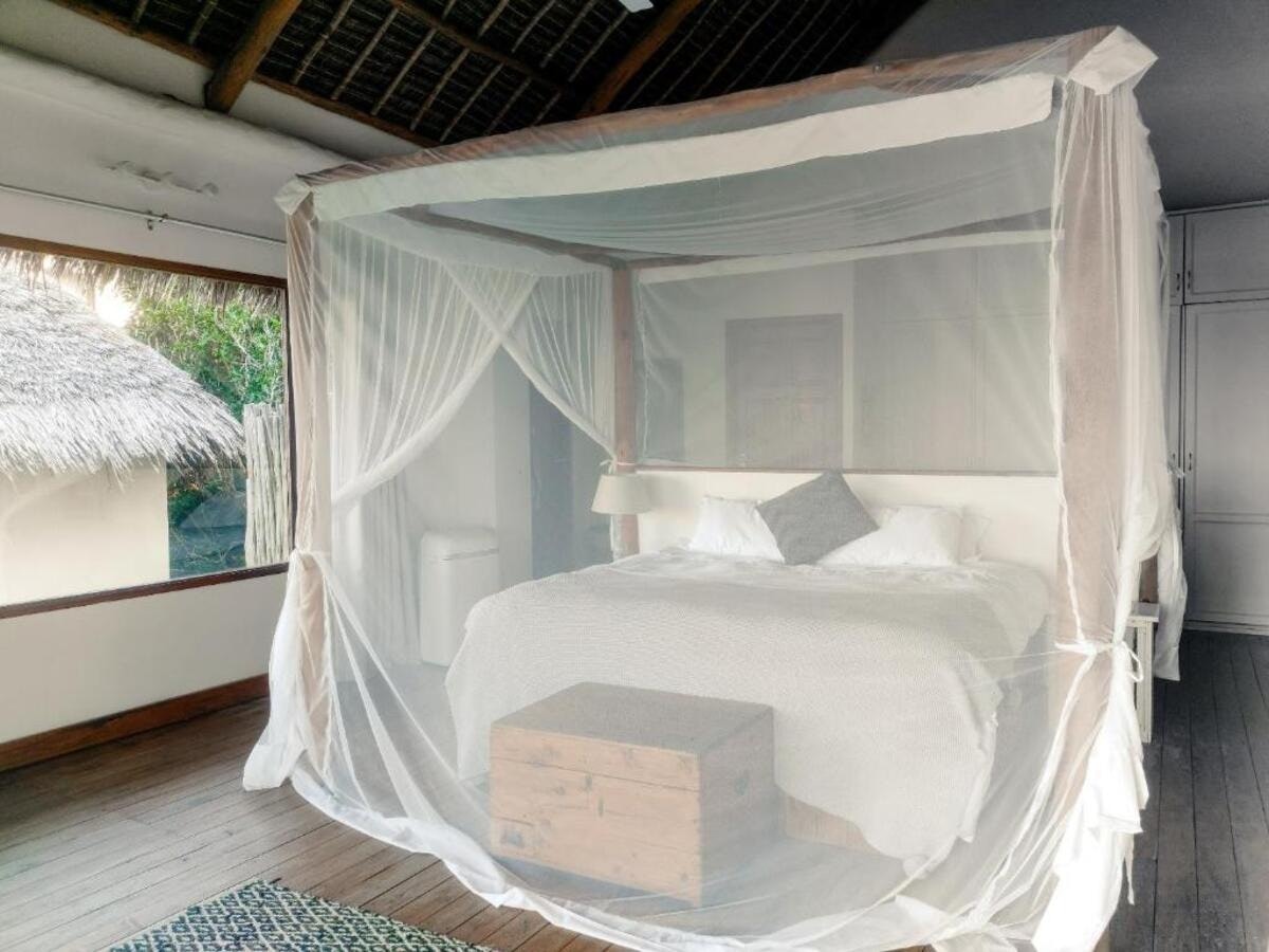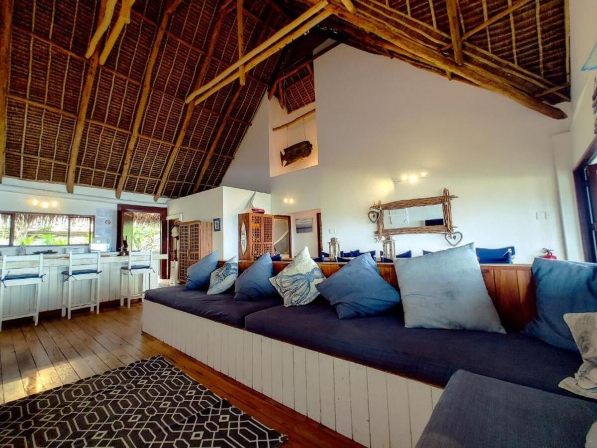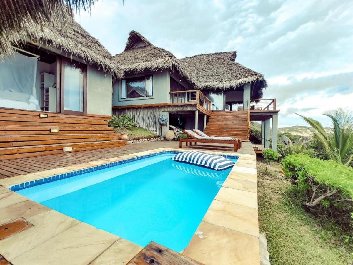The Beach House is a stunning beachfront property located near Inhambane and Tofo, offering direct access to a secluded bay with breathtaking sea views. The estate is situated along the southern coast of Mozambique, 18 km from both Inhambane and Tofo Beach, with the final 3 km accessible only by 4×4, ensuring privacy and exclusivity. Guests can relax by the swimming pool with a view or enjoy the sun terrace and outdoor seating areas.