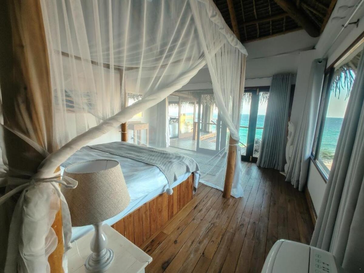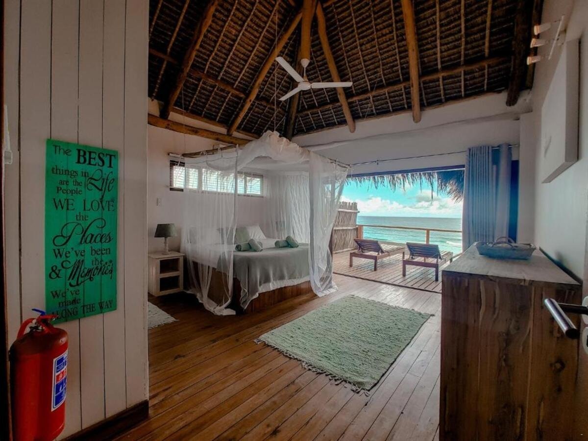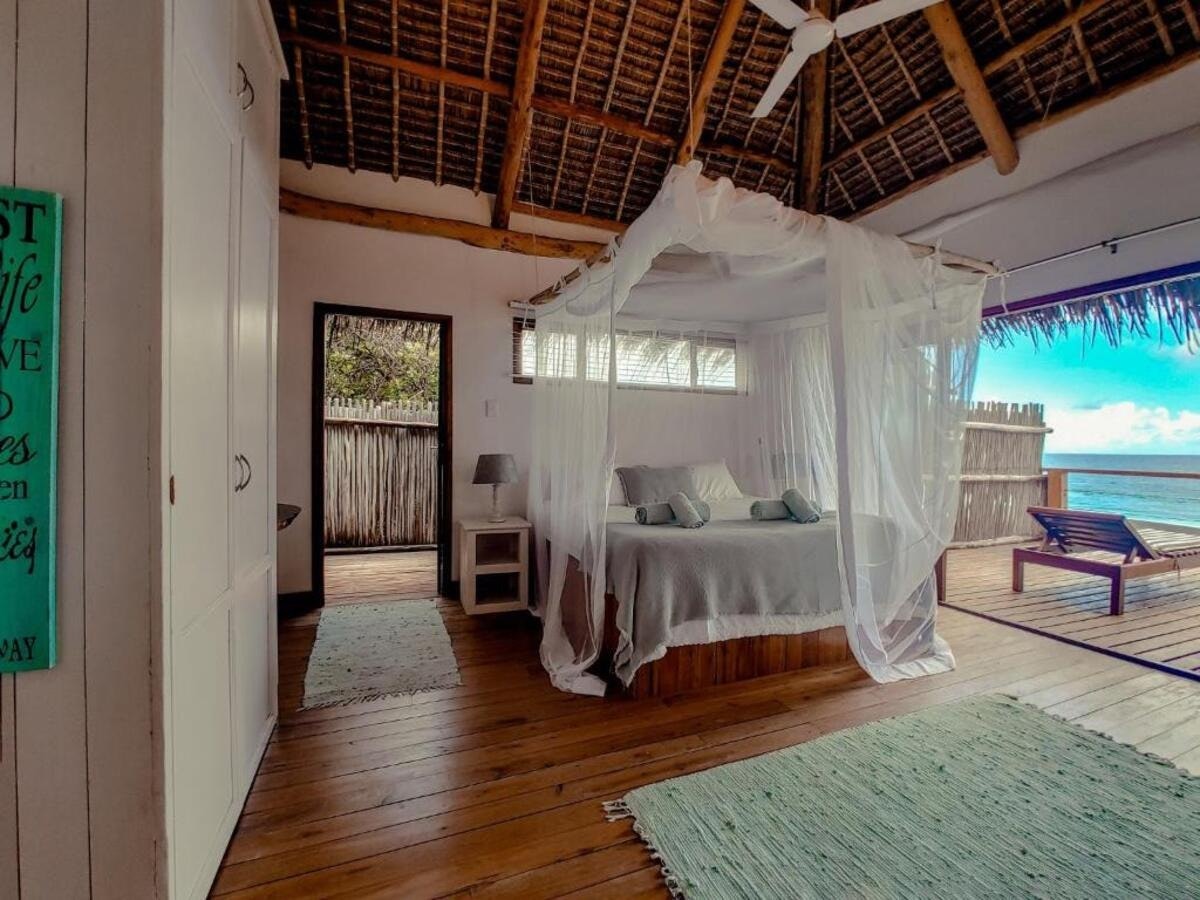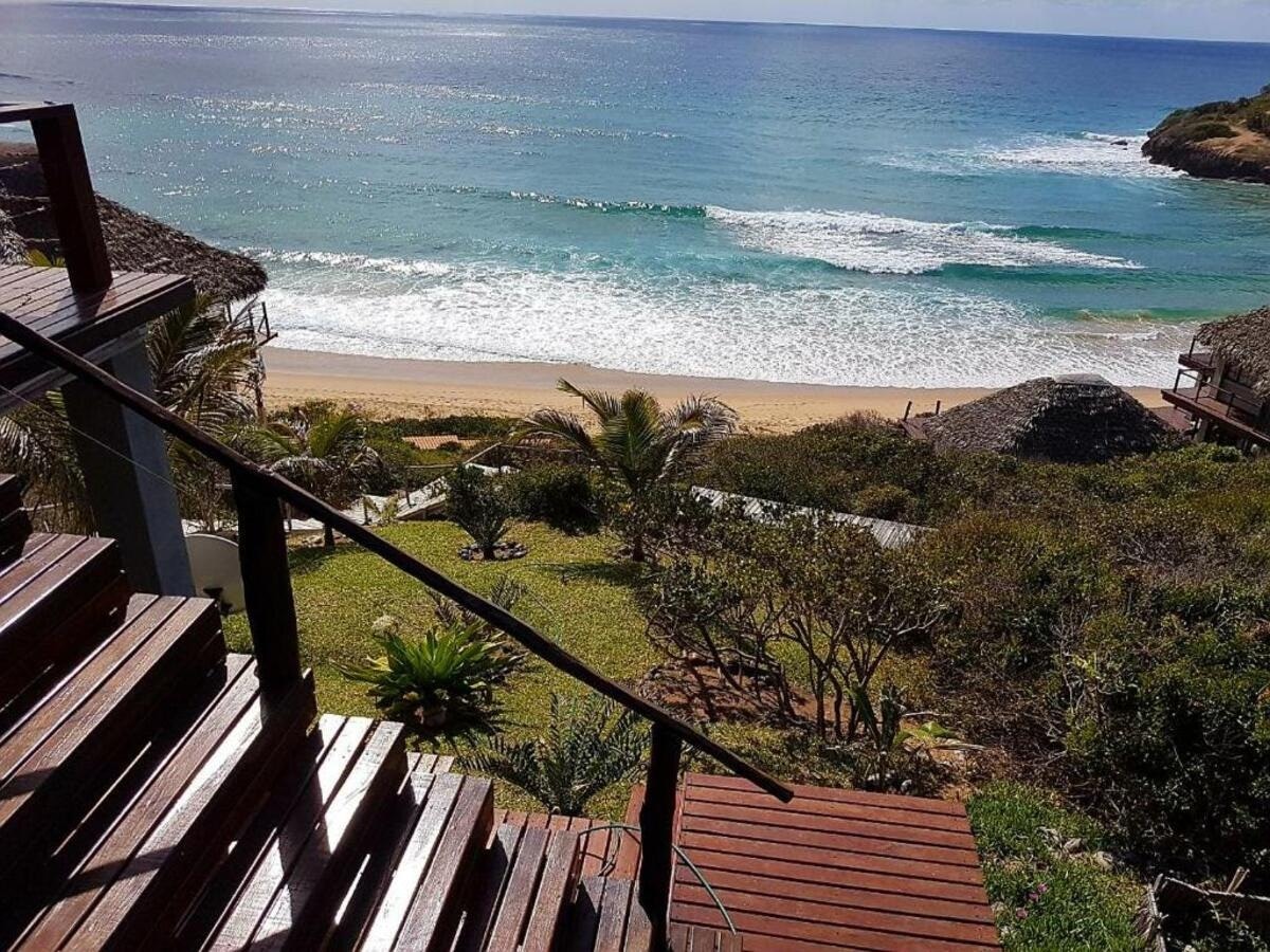The Beach House is a stunning beachfront property located near Inhambane and Tofo, offering direct access to a secluded bay with breathtaking sea views. The estate is situated along the southern coast of Mozambique, 18 km from both Inhambane and Tofo Beach, with the final 3 km accessible only by 4×4, ensuring privacy and exclusivity. Guests can relax by the swimming pool with a view or enjoy the sun terrace and outdoor seating areas.