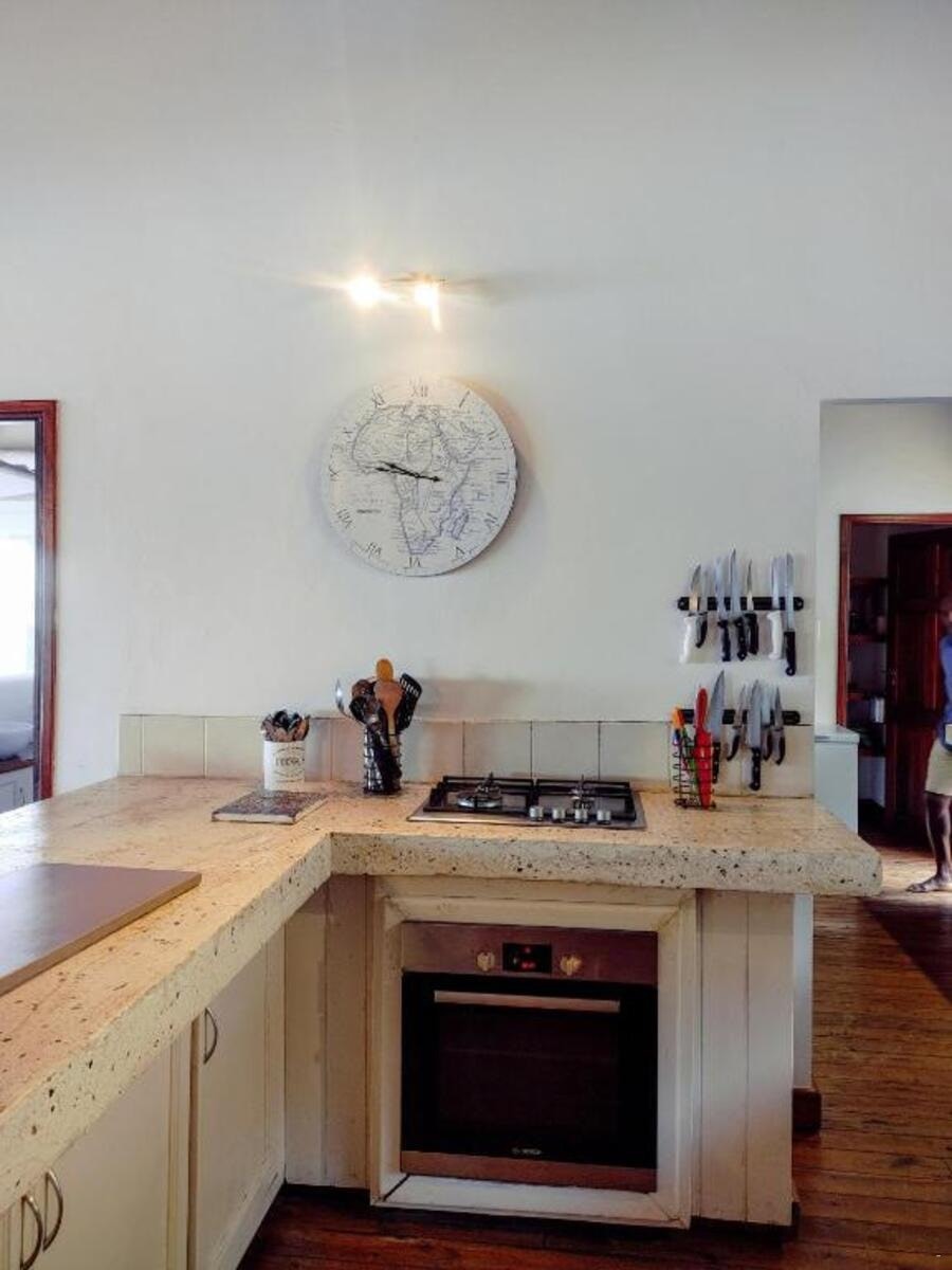 The fully equipped kitchen includes a stove, oven, microwave, kettle, toaster, fridge, chest freezer, cooking basics, and a dining table with seating for 10 or more guests. Open-plan living areas include a lounge with a TV and a selection of books and reading material. Air-conditioning and fans are provided throughout the property, and a washing machine is available for convenience.