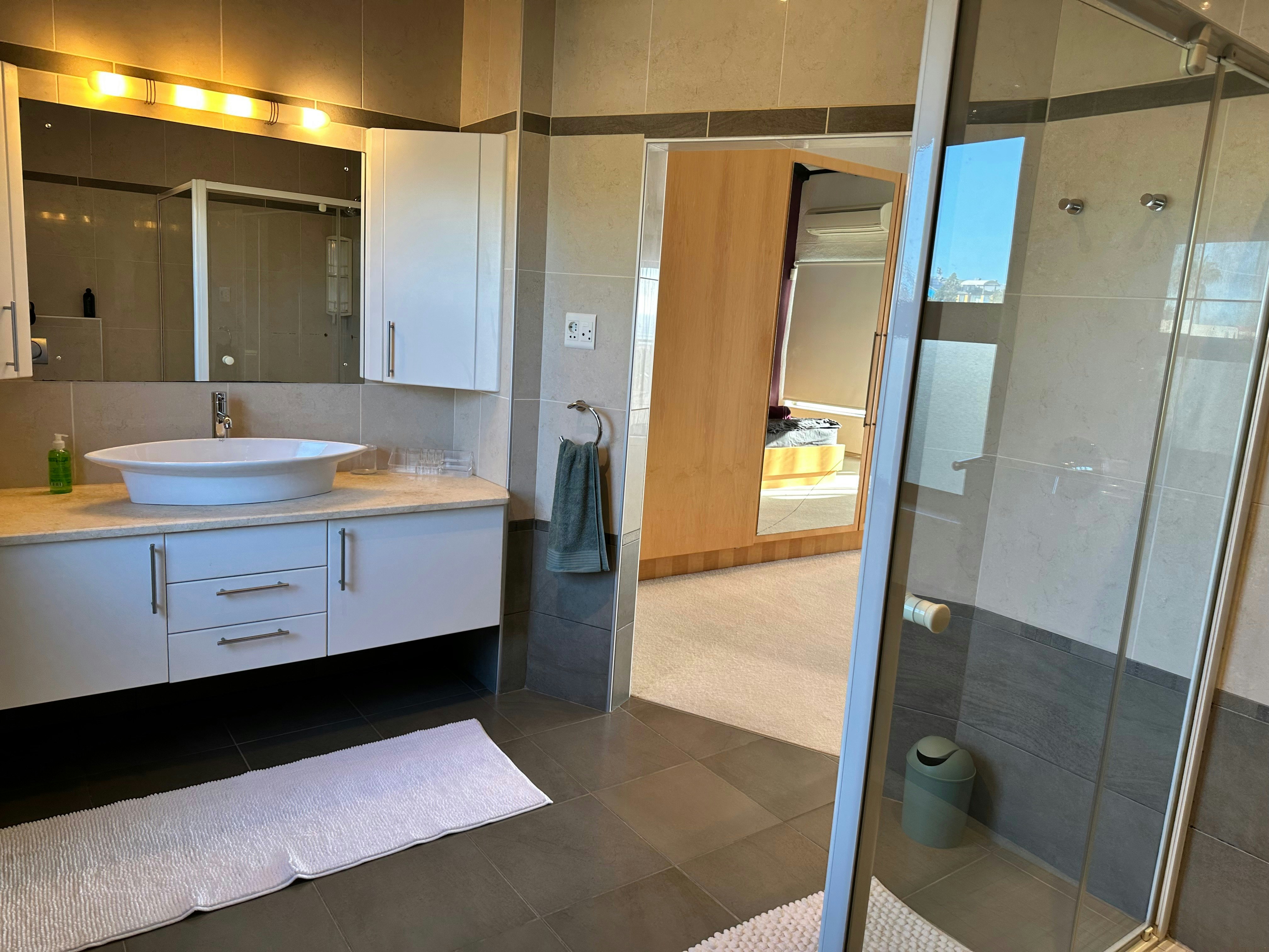 The house can accommodate up to 10 guests and comprises 5 bedrooms, 4 bathrooms, and a guest toilet. The main bedroom is furnished with a queen-size bed, and the en-suite bathroom is fitted with a bath, shower, washbasin, and toilet. The second bedroom contains 2 single beds and has an en-suite bathroom fitted with a bath, shower, washbasin, and toilet. The third bedroom is furnished with a king-size bed and has an en-suite bathroom fitted with a shower, washbasin, and toilet. The fourth bedroom also contains a king-size bed, while the fifth bedroom has a double bed. These two rooms share a bathroom fitted with a bath, shower, washbasin, and toilet. Quality linen and towels are provided.