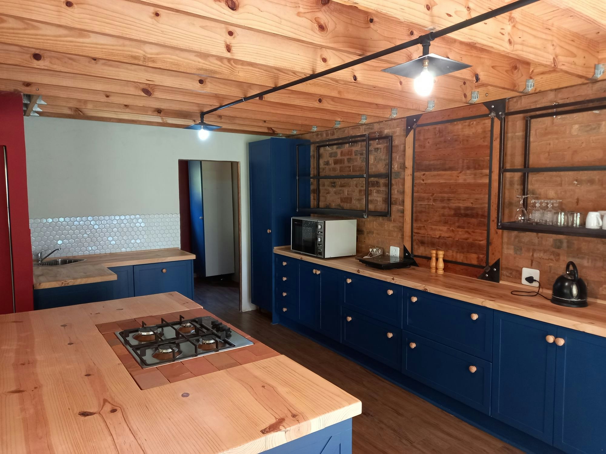 Die kombuis is met 'n yskas, gasstoof, oond, mikrogolfoond en ketel toegerus. Daar is