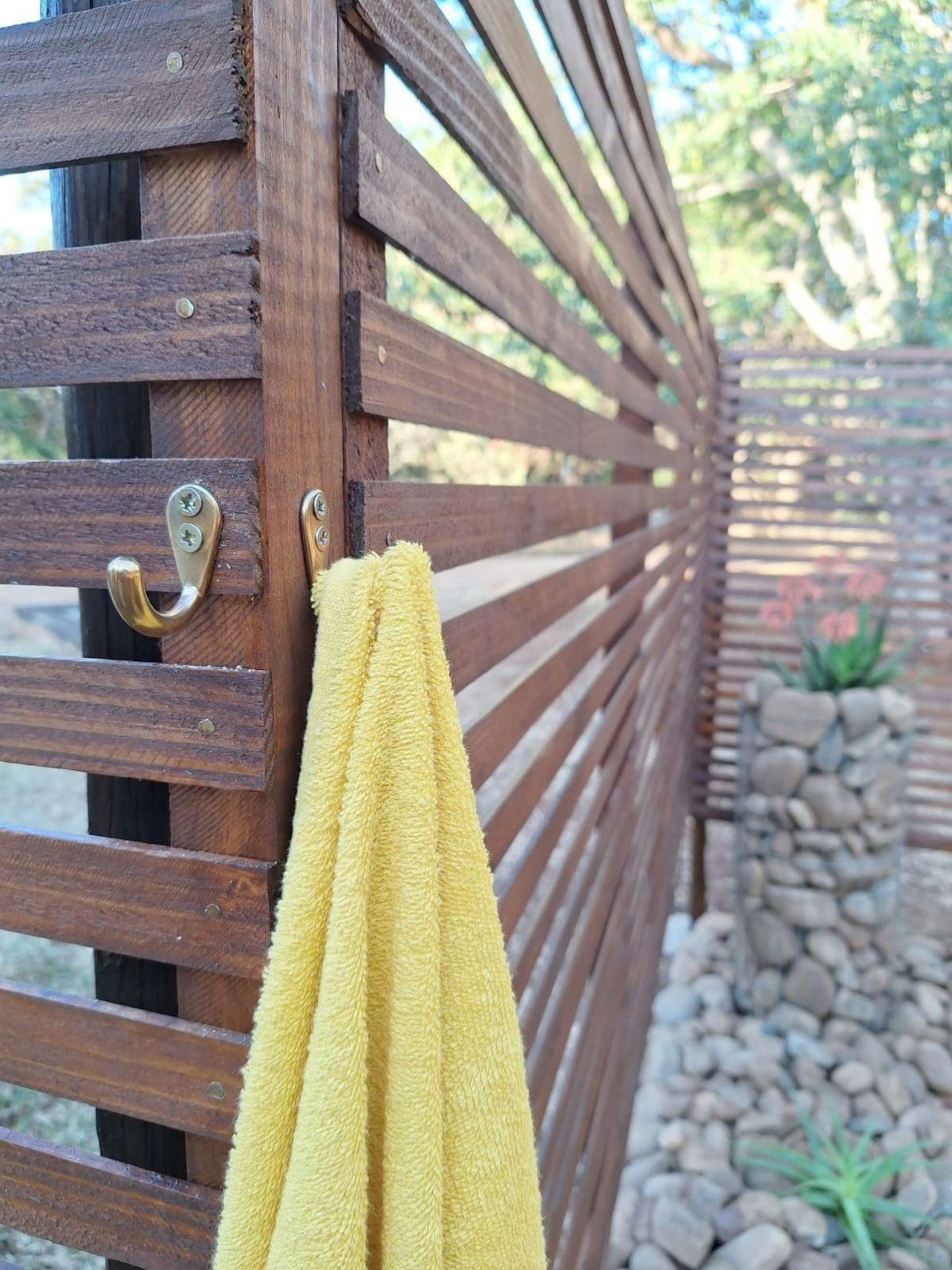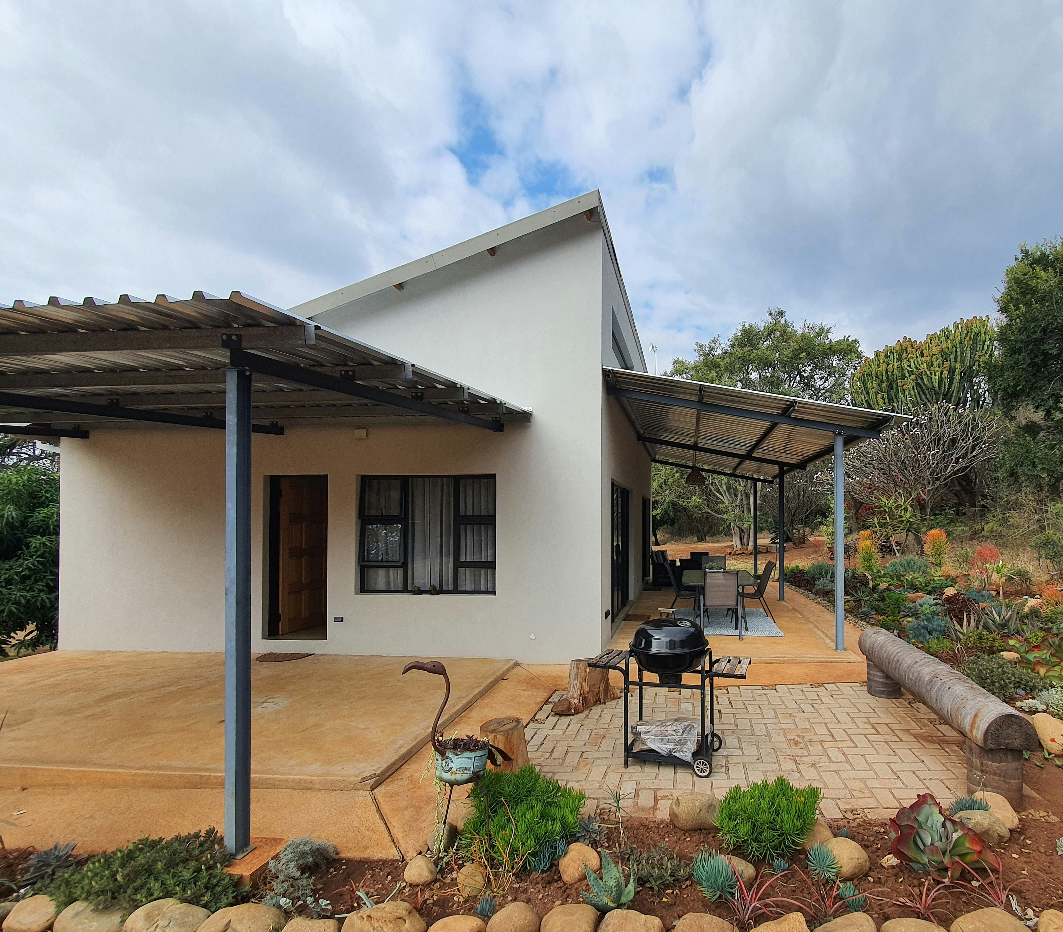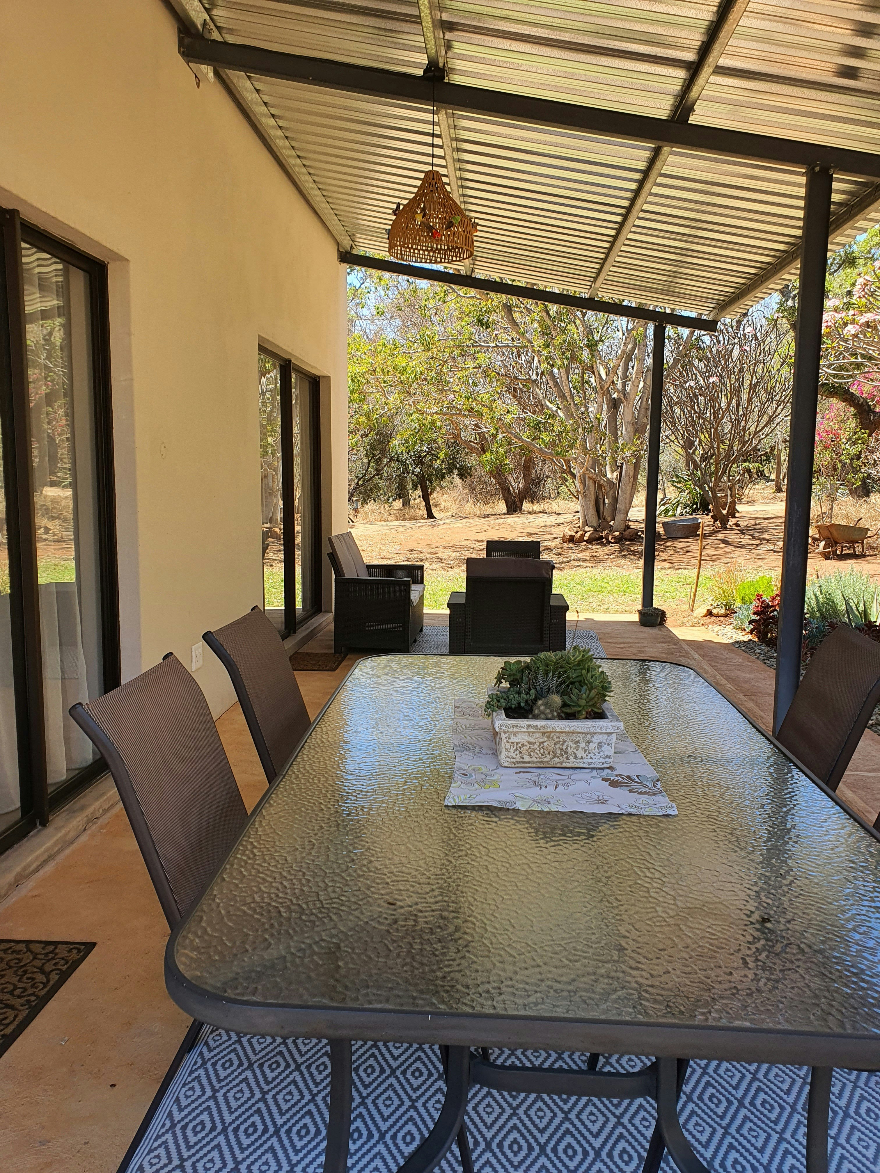 The house runs on gas and solar power, so guests will not be affected by load shedding. There is a spacious veranda, the ideal place to relax and experience nature. Besides the mountain view, guests may be lucky enough to see small game that freely enter and leave the property. Enjoy the rich bird life, bush babies screeching, listening to lions roaring nearby, or maybe a hyena laughing while sitting on the porch.