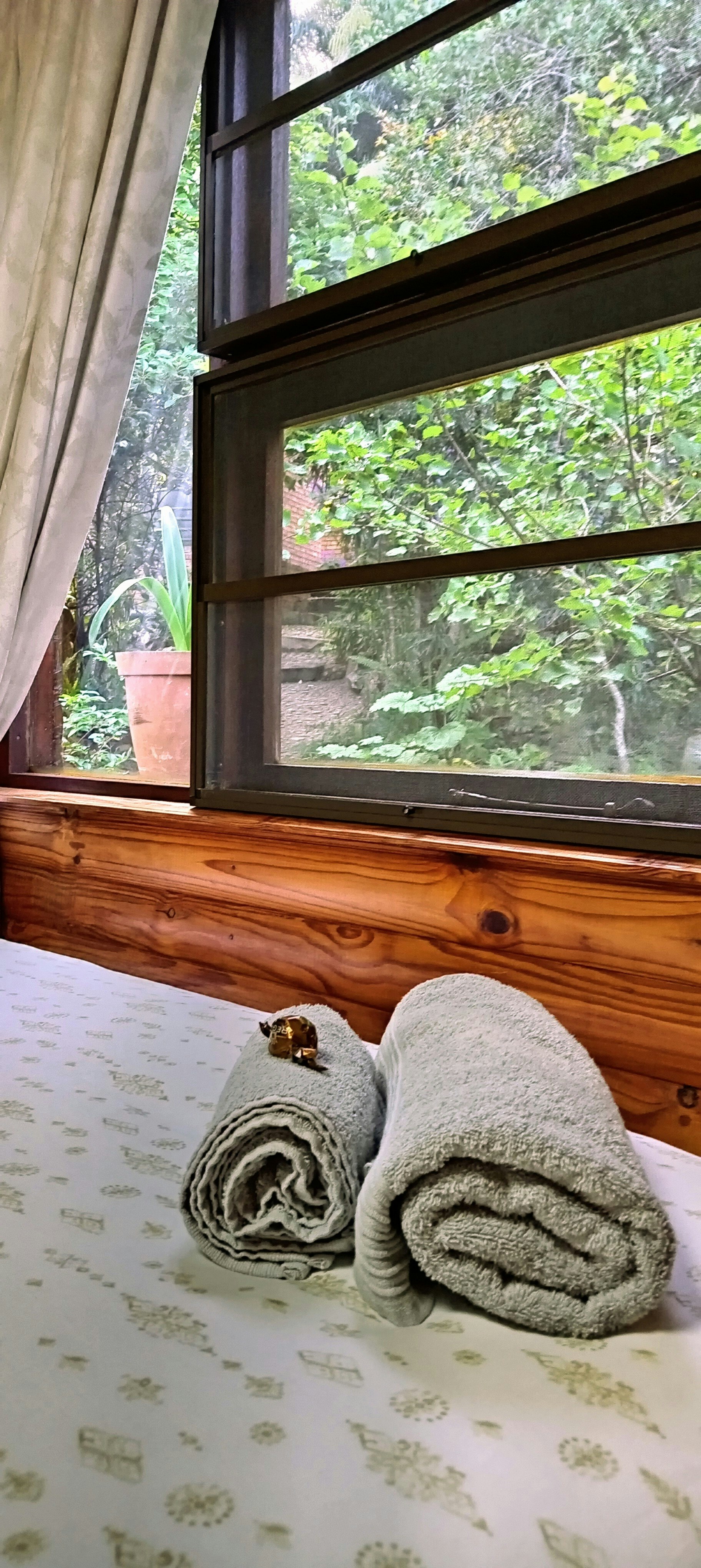 'The Ocean Bush Cabin' is a completely private wooden cabin nestled among indigenous trees and vegetation in the tranquil Blue Horizon Bay oceanside, nature conservation village. Guests are immersed in the surrounding flora and fauna, while the soothing sounds of the ocean enhance a sense of serenity. This beautiful setting provides a perfect escape for those seeking a quiet and restorative holiday.