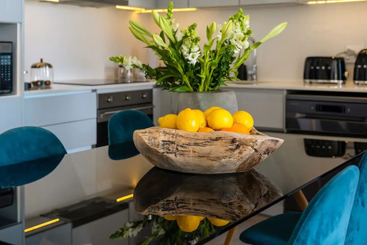 The apartment can accommodate up to 4 guests in 2 bedrooms and 2 bathrooms. The first bedroom is furnished with a king-size bed and has an en-suite bathroom that is fitted with a shower, washbasin and toilet. The second bedroom is furnished with a queen-size bed and makes use of a bathroom that is fitted with a bath, washbasin and toilet. Linen and towels are provided.