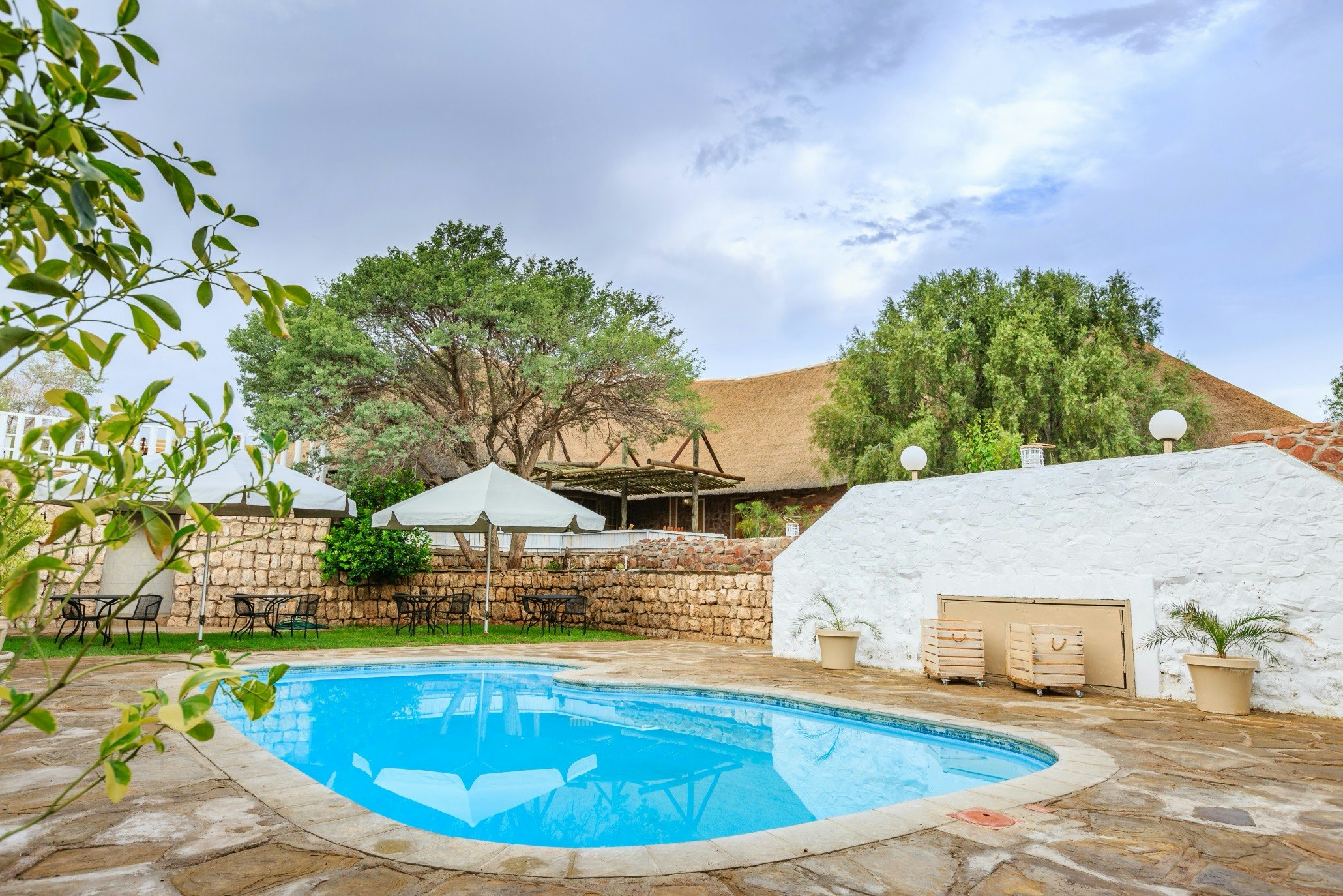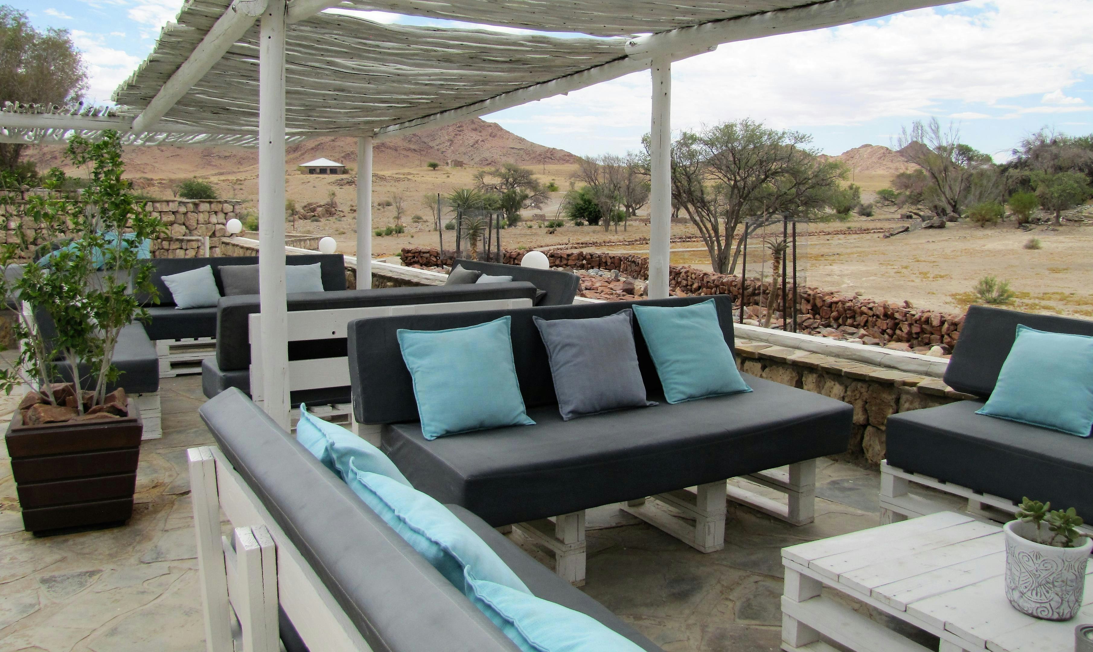 In the afternoon you can unwind in the contemporary lounge, breath in the serenity of the lush garden or sunbathe at the sparkling pool. Take a drink at our pool bar and recline to marvel at the sun-drenched desert plains. You might also opt for the scenic drive with spectacular views overlooking the vast gravel plains contrasted with the Tsaris and Naukluft mountain massifs of the Namib Desert.