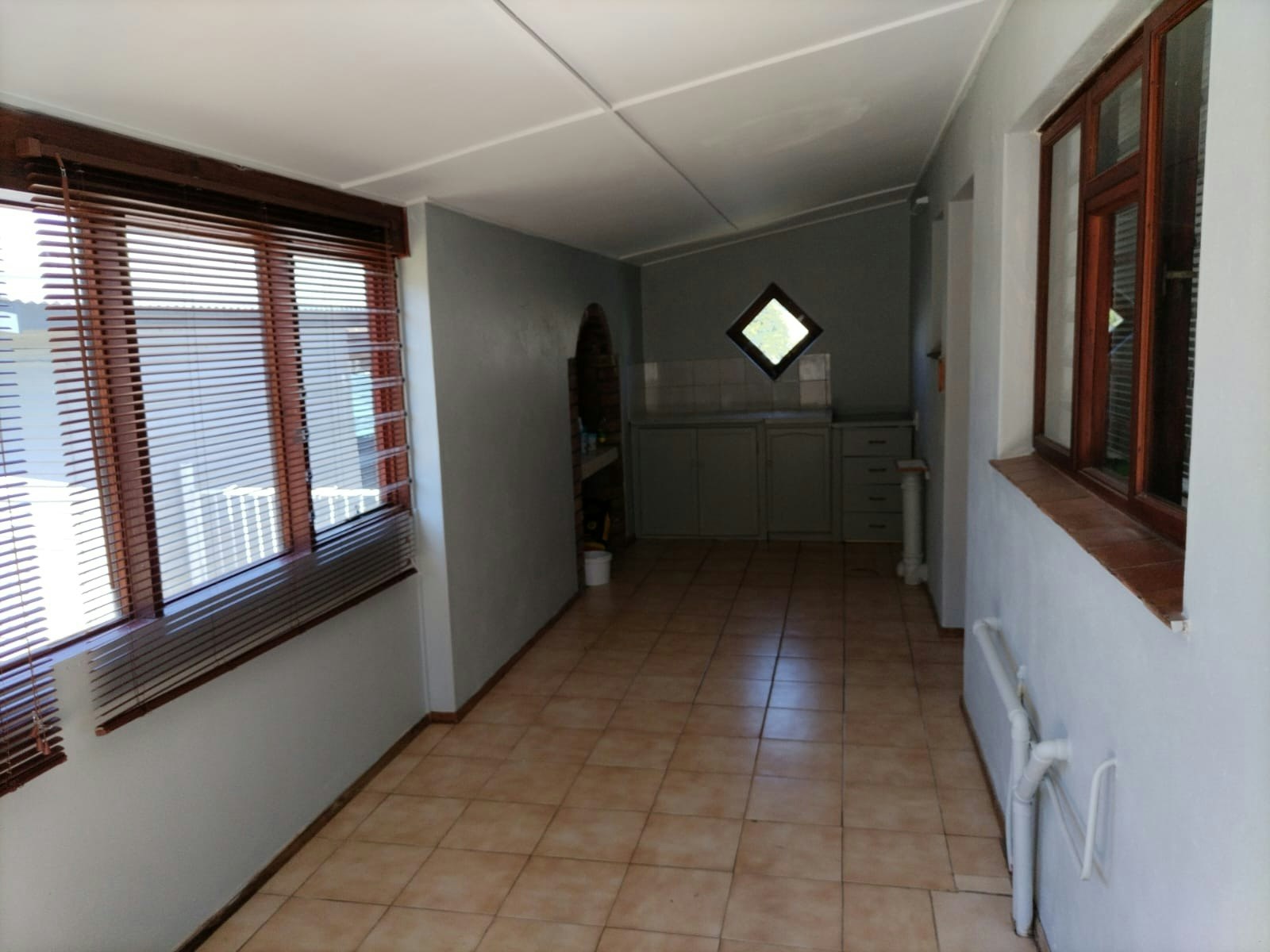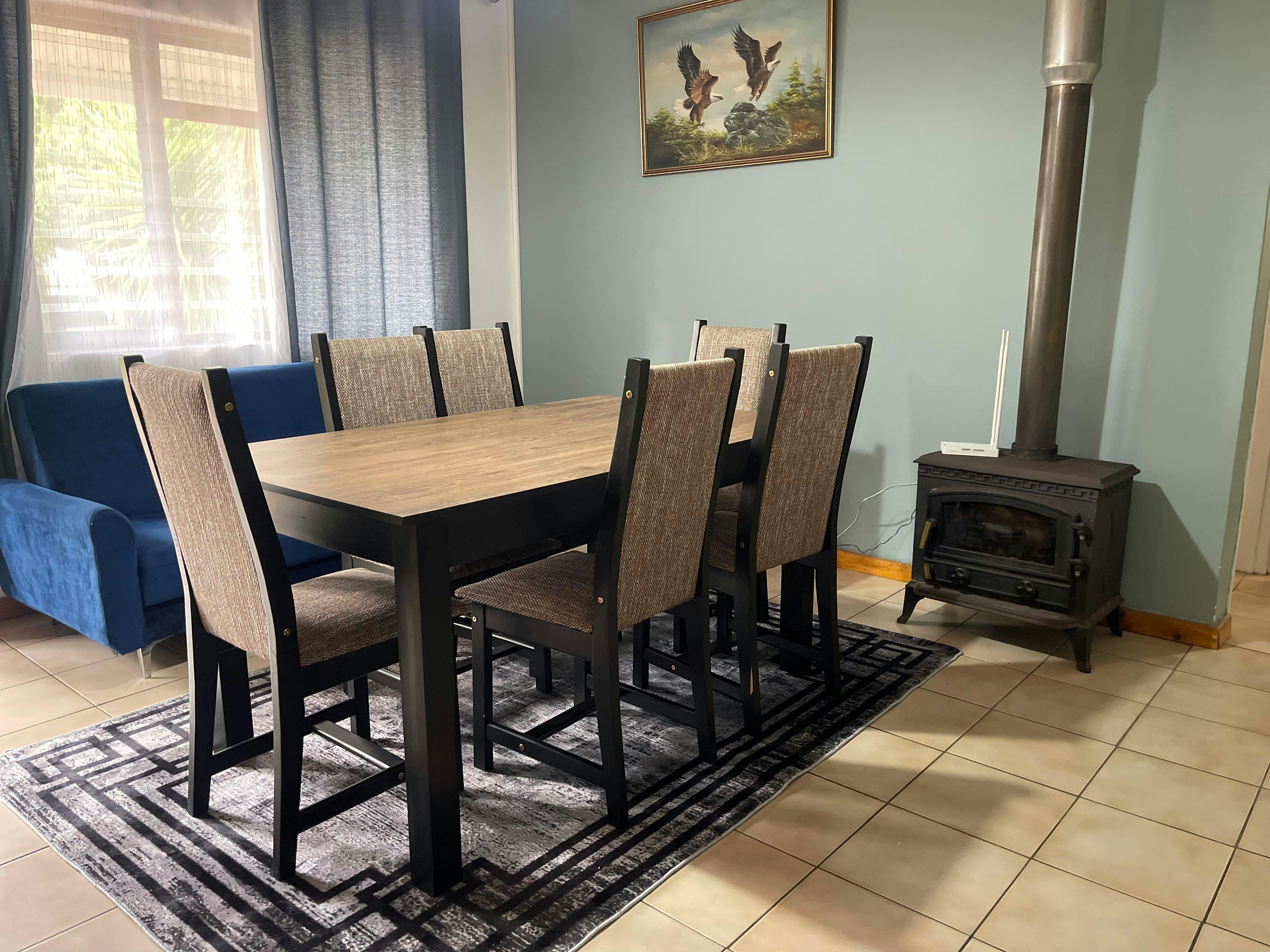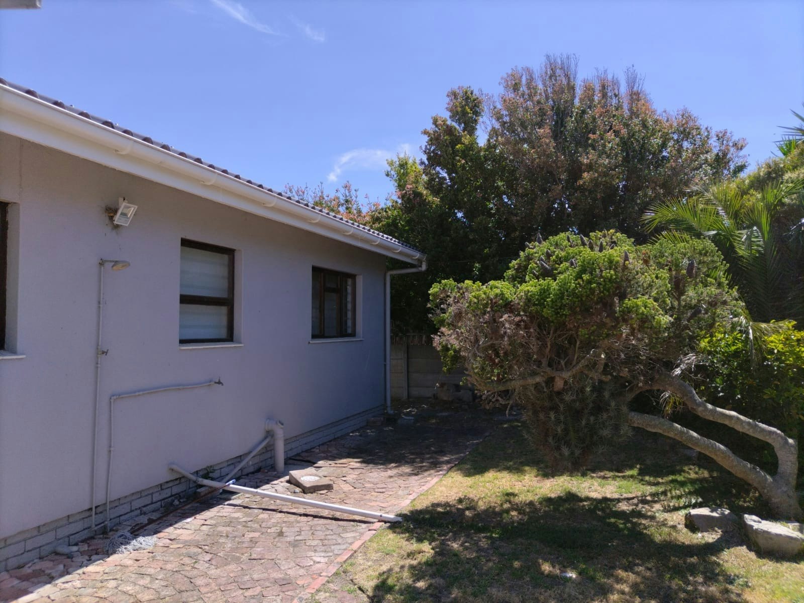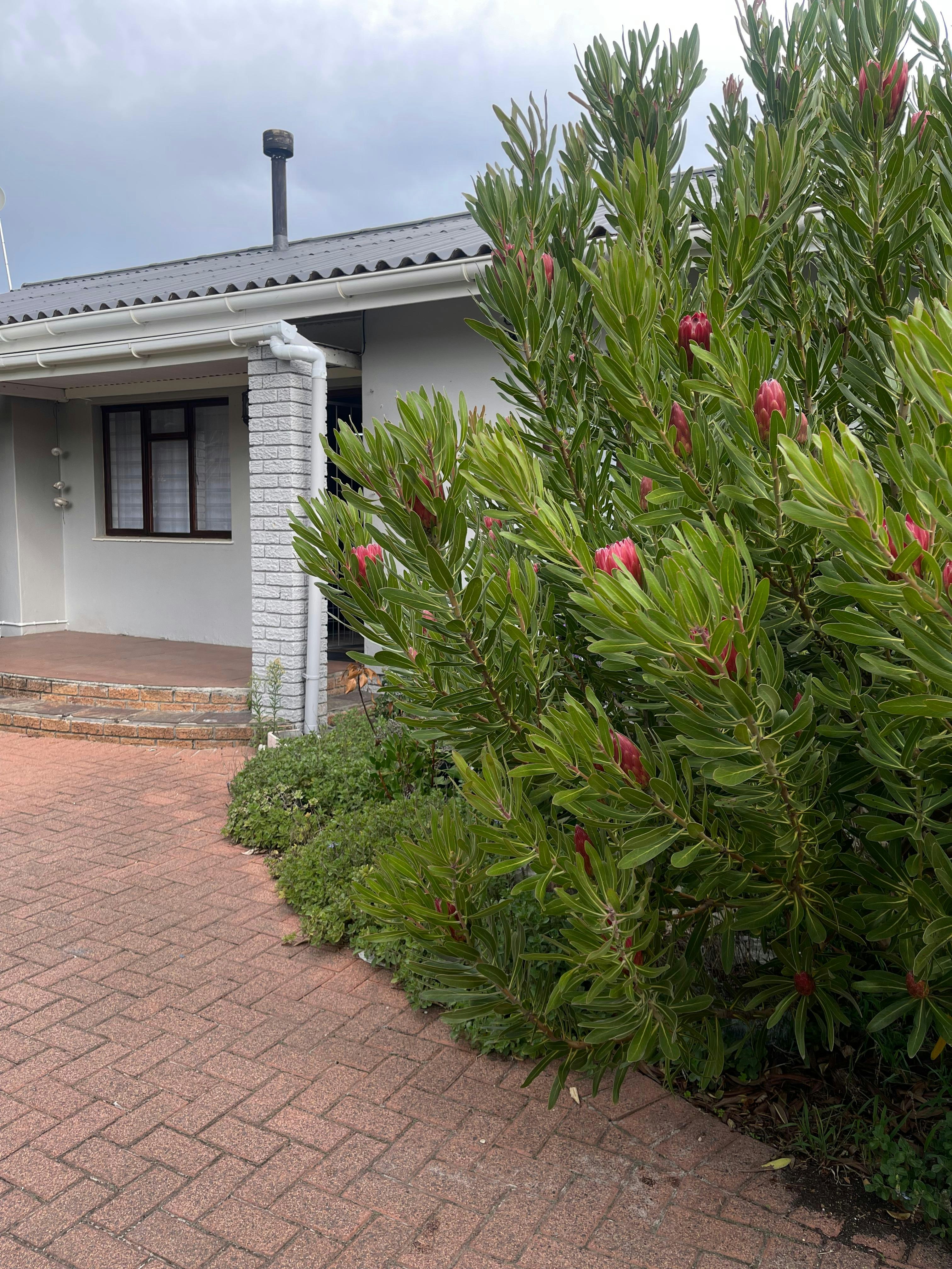 Outdoor spaces include a private patio and a well-maintained garden with outdoor furniture. Secure parking is available in a garage. Sandbaai Beach is less than 1 km away, making it ideal for leisurely seaside walks, and Whale Coast Mall is nearby for easy access to shops and essentials.