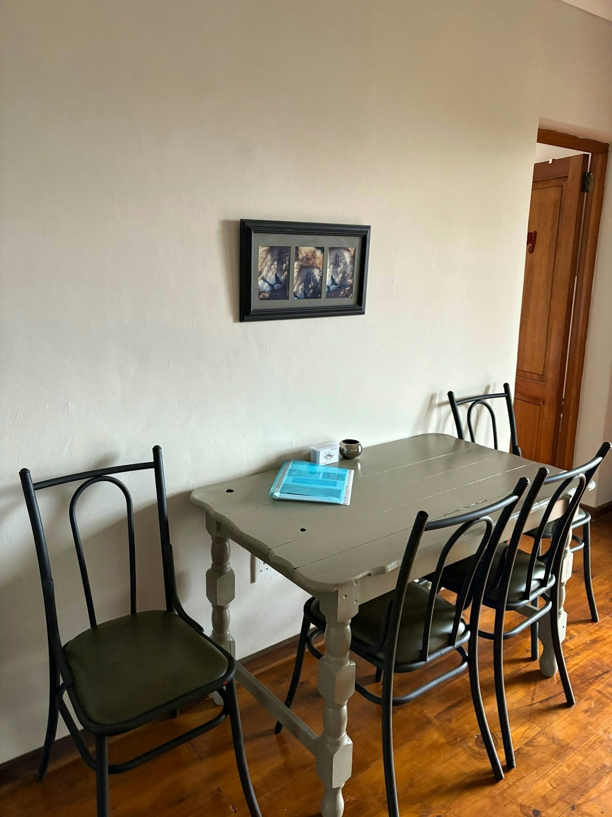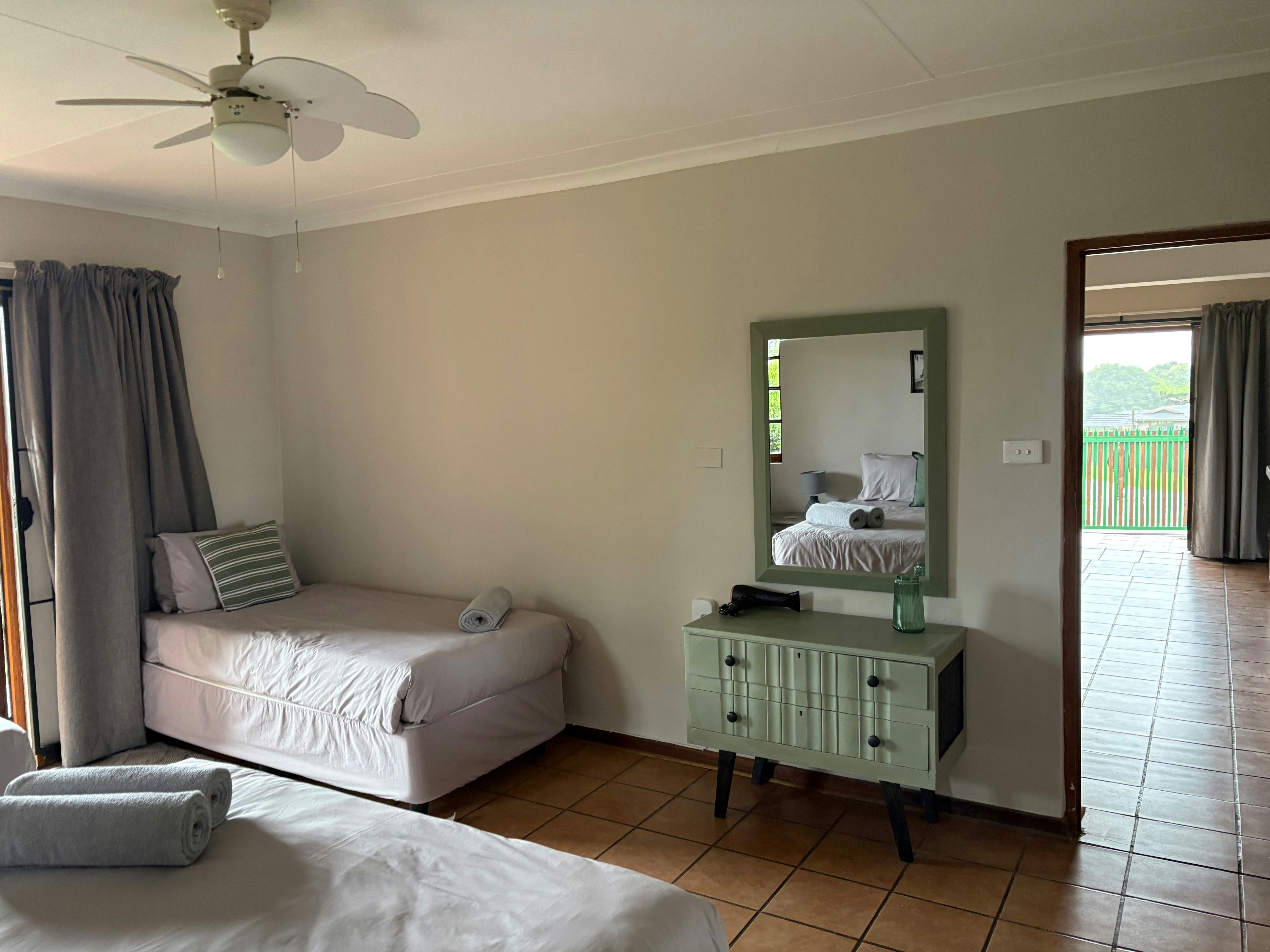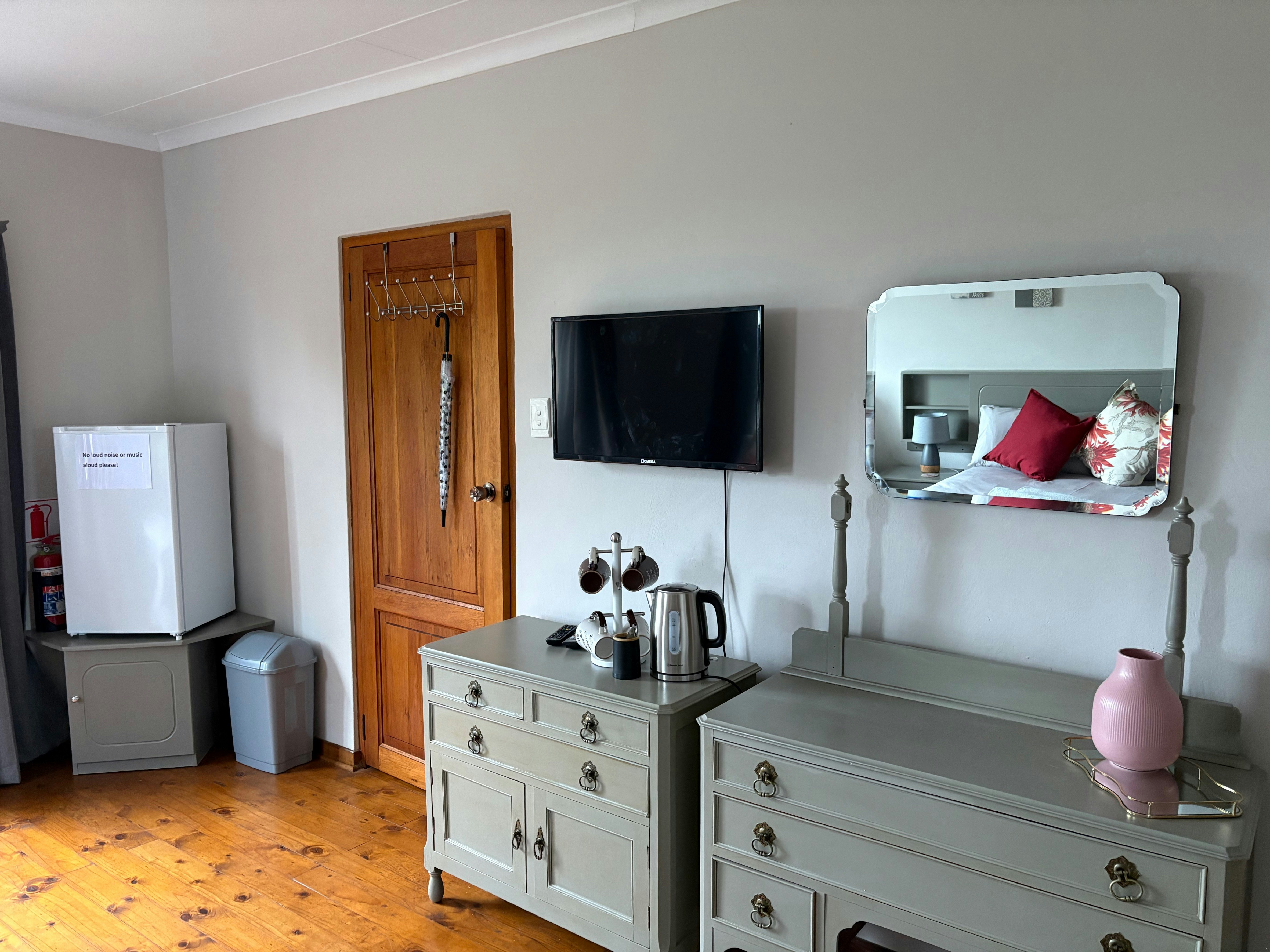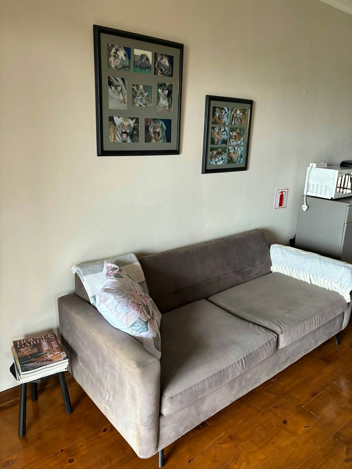 Emerald is a comfortable ground-floor apartment with a private entrance. It accommodates 4 guests and has a king-size bed and 2 single beds. The en-suite bathroom is fitted with a shower, toilet, and basin. The bedroom has direct access to the patio. The open-plan living area features a kitchen with a separate scullery, fully equipped with a fridge-freezer, stove, oven, microwave, kettle, toaster, and dining table with seating for 6 guests. The lounge area includes comfortable seating, a smart TV and books. The living area leads to a covered patio with a private braai and an outdoor dining area.