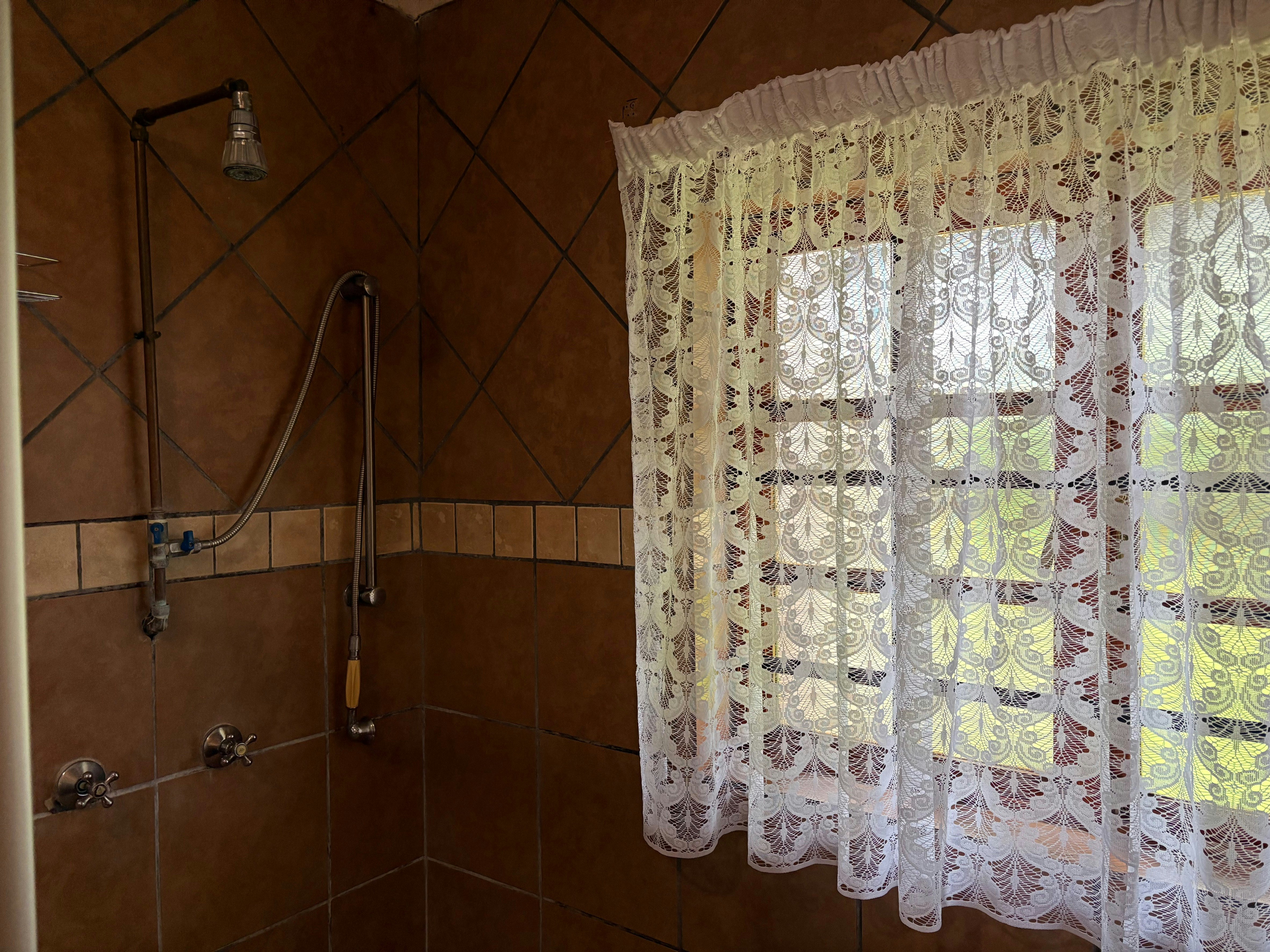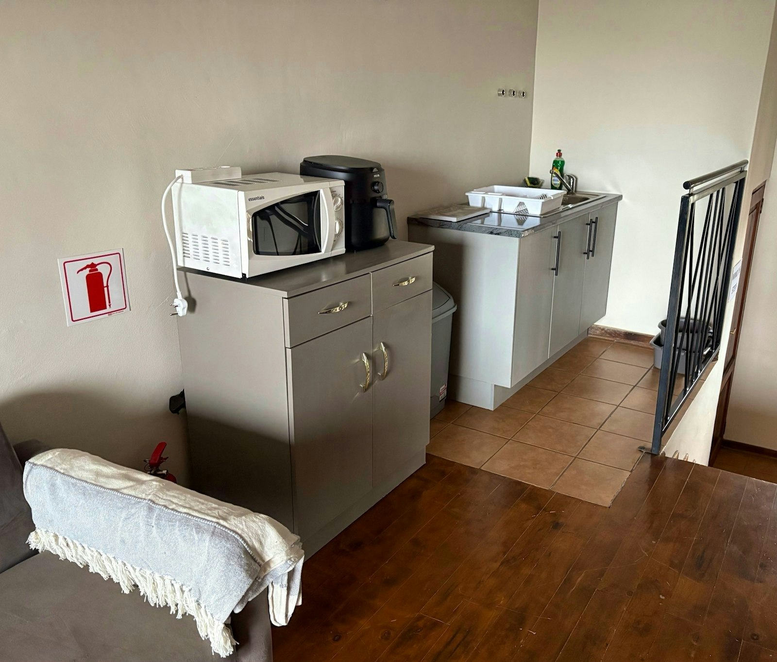 Amber is a comfortable unit on the upper level that is ideal for 3 guests. The unit is furnished with a king-size bed and a single bed and features an en-suite bathroom fitted with a bath, shower, toilet, and basin. Linens and bath towels are provided. The room is equipped with a ceiling fan, a small fridge, a kettle, and mugs, while a wardrobe offers storage space for clothes. Additional amenities include a TV and a hairdryer. Amber shares access to a common kitchenette and living area, which is equipped with an air fryer, microwave, toaster, plates, cutlery, and glasses. The shared living area has a ceiling fan for added comfort. This area leads to a balcony with outdoor seating.