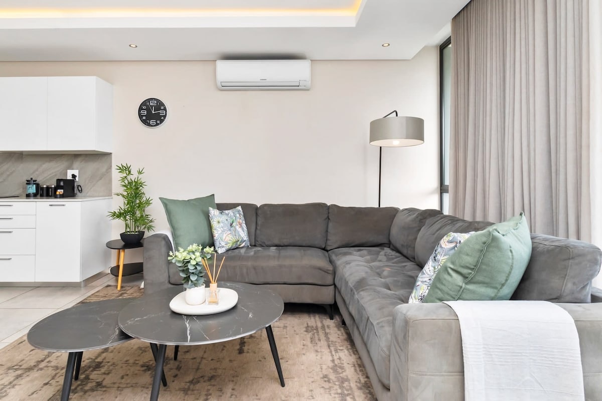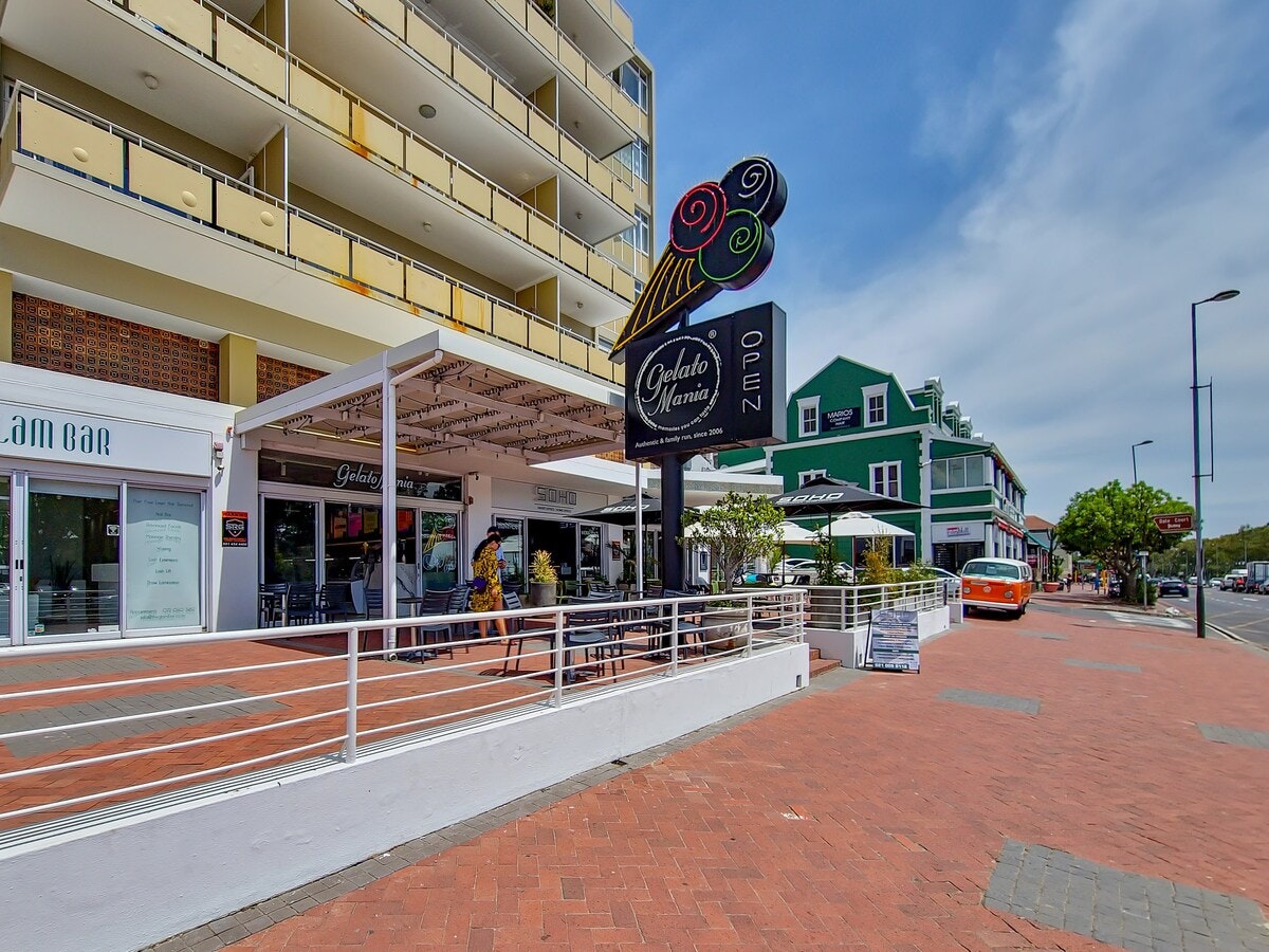Through the sliding doors, guests can enjoy a morning coffee on the furnished balcony. For those wanting to explore the area, Rocklands Beach is 2.2 km away and Sea Point Promenade is 2.3 km away.