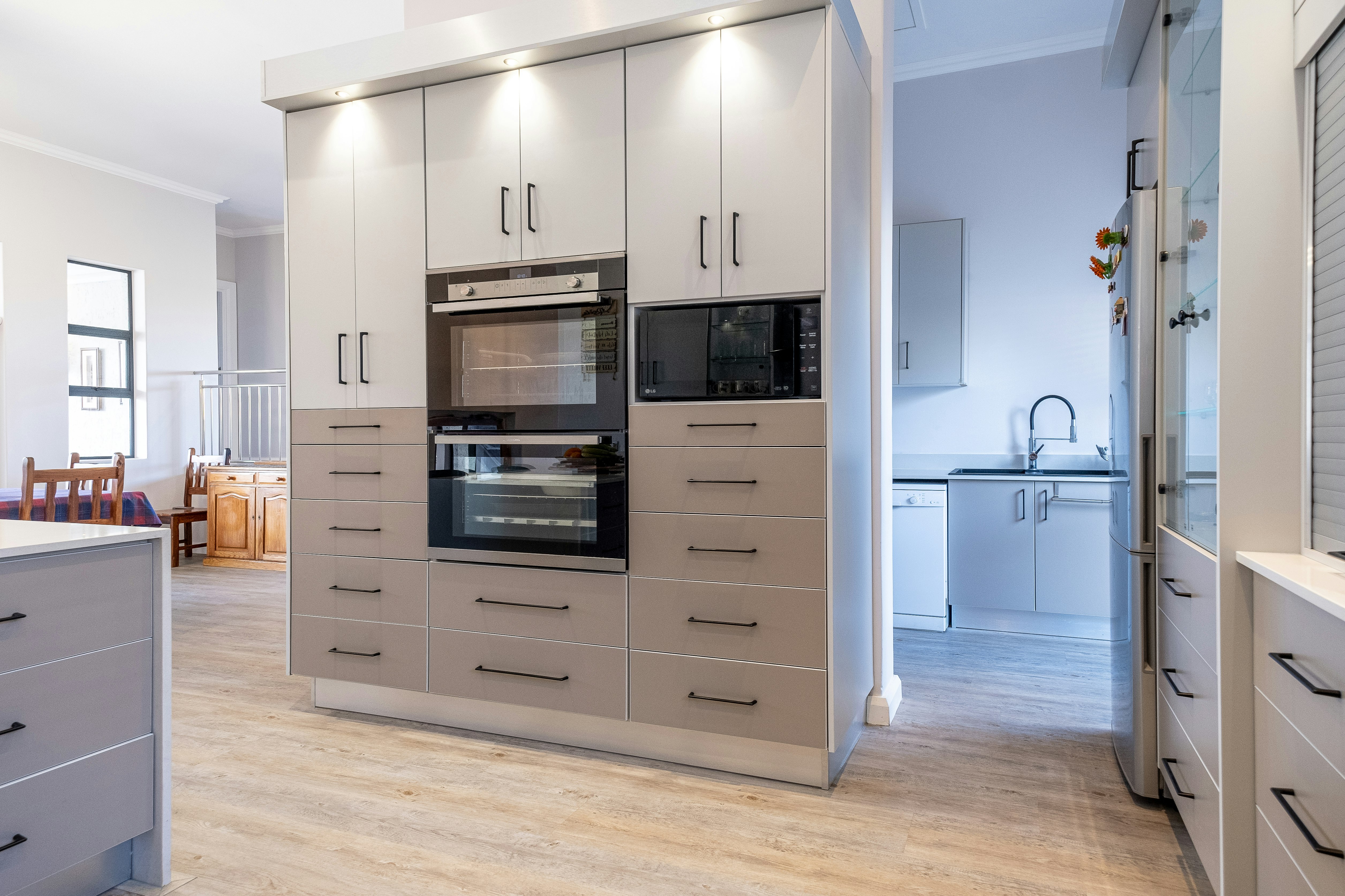 The kitchen is equipped with a fridge-freezer, microwave, oven, gas stove, cutlery, crockery, and tea-and-coffee-making facilities. Additionally, the guest house has a dining area, living area, and outdoor patio with braai facilities and seating.
