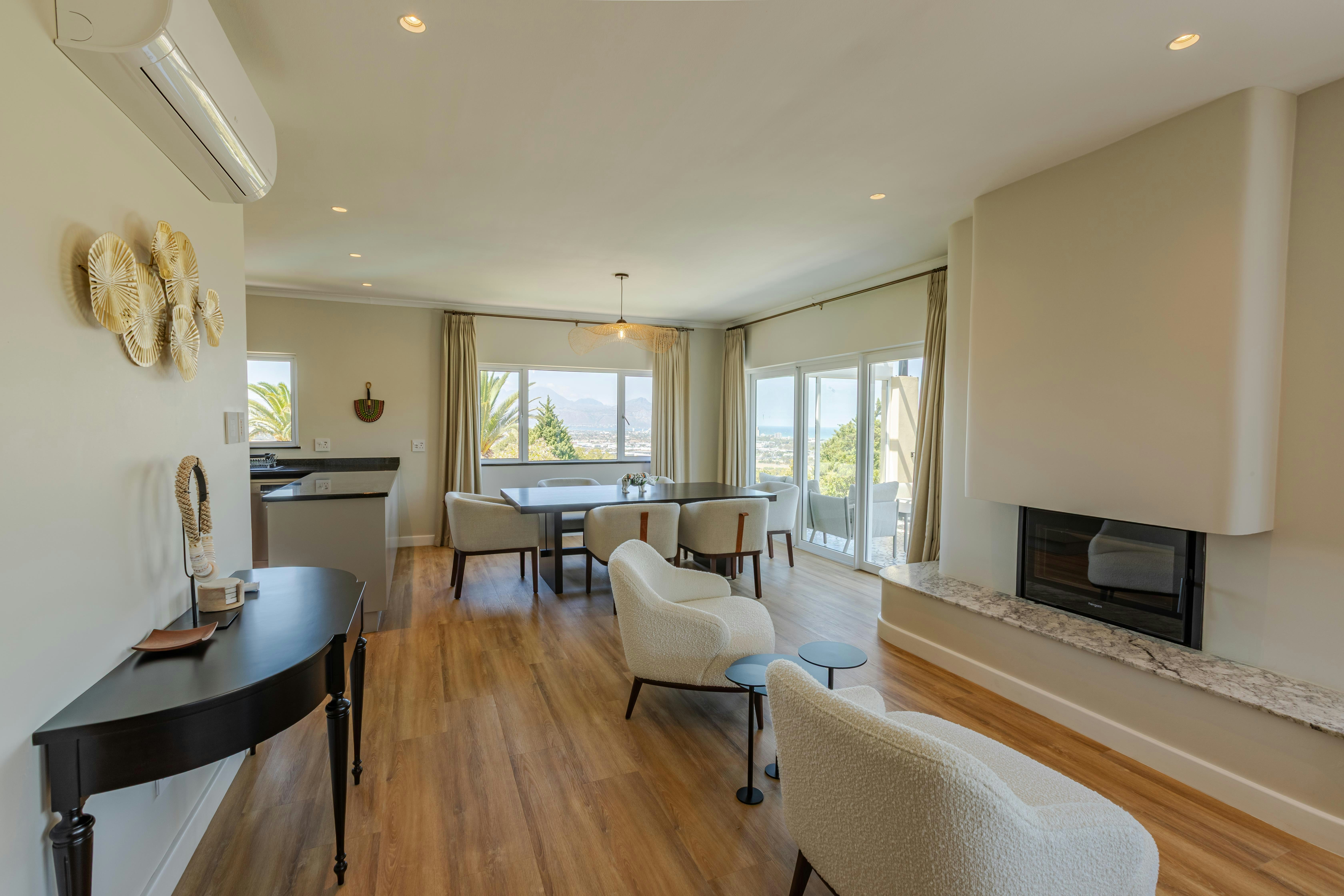 The property is conveniently located approximately 29 km from Cape Town International Airport and within proximity to Helderberg Village Golf Club, Stellenbosch University, and Kirstenbosch National Botanical Garden. Helderview Luxury Suites offers a peaceful and comfortable base for guests seeking a relaxed stay in Somerset West.