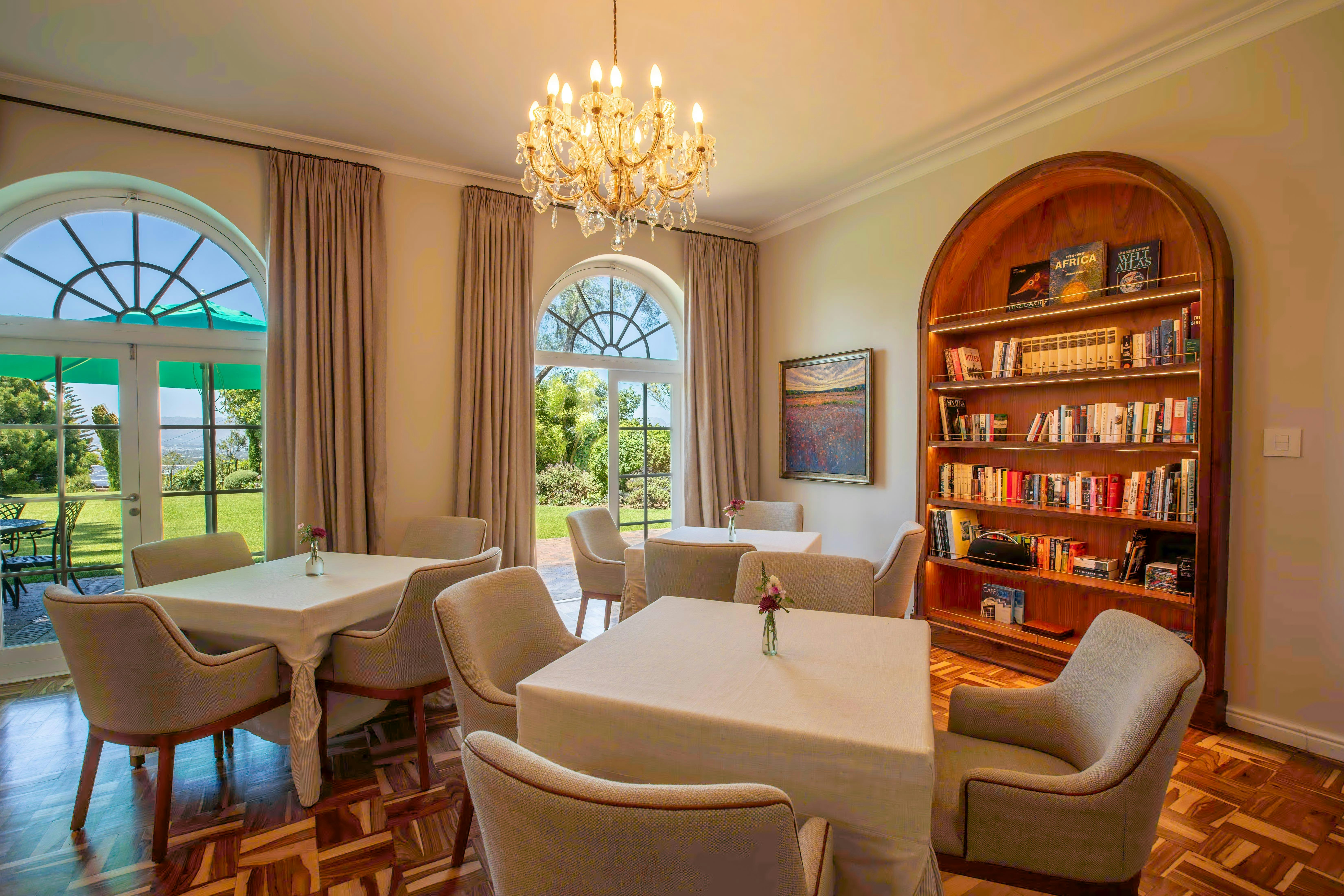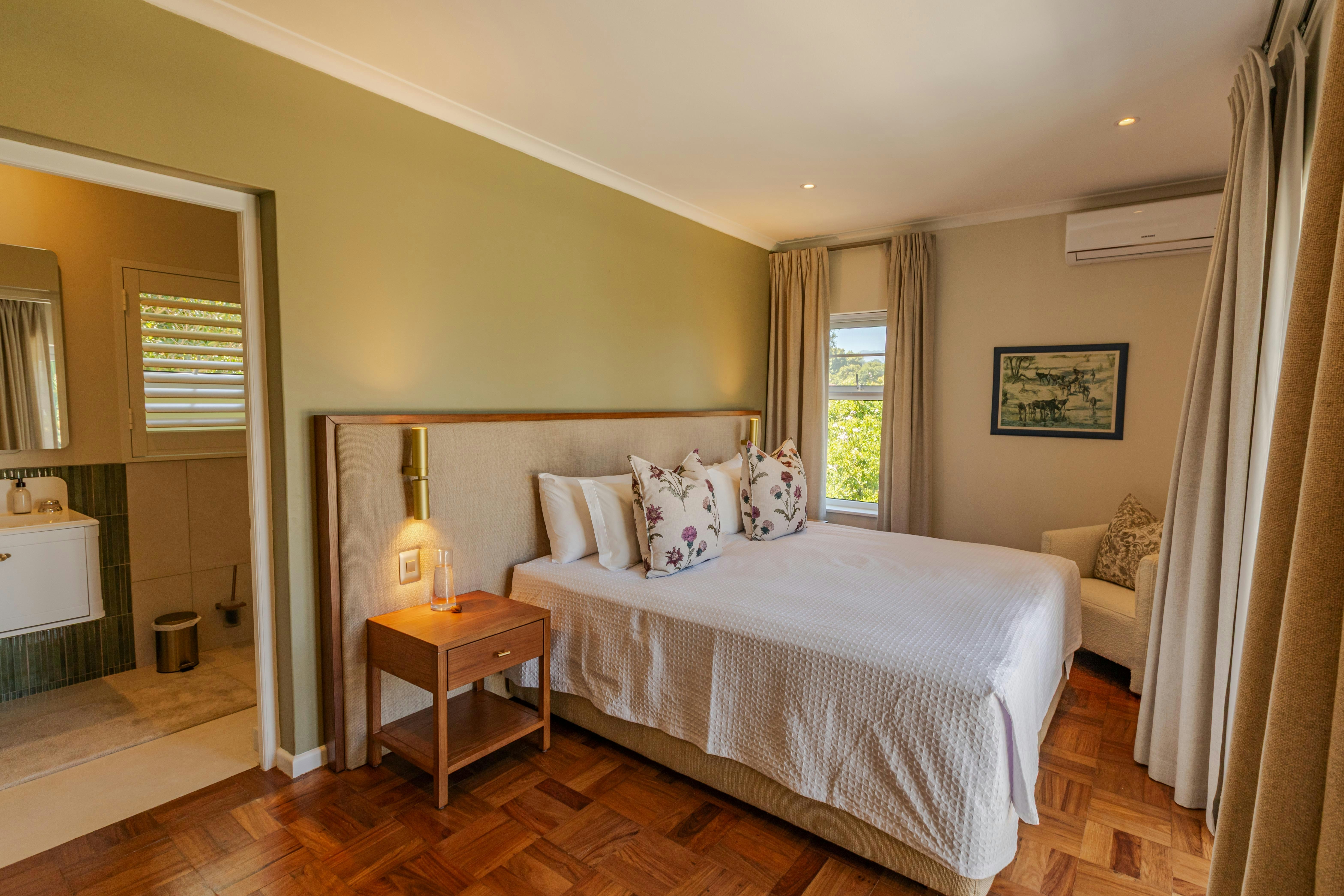 Helderview Luxury Suites is situated in Somerset West and offers elegant, adults-only accommodation within a tranquil setting. The property enjoys scenic surroundings with views of the sea, a lush garden, and a peaceful inner courtyard, providing a relaxing retreat within easy reach of the area’s attractions, wine estates, and golf courses.