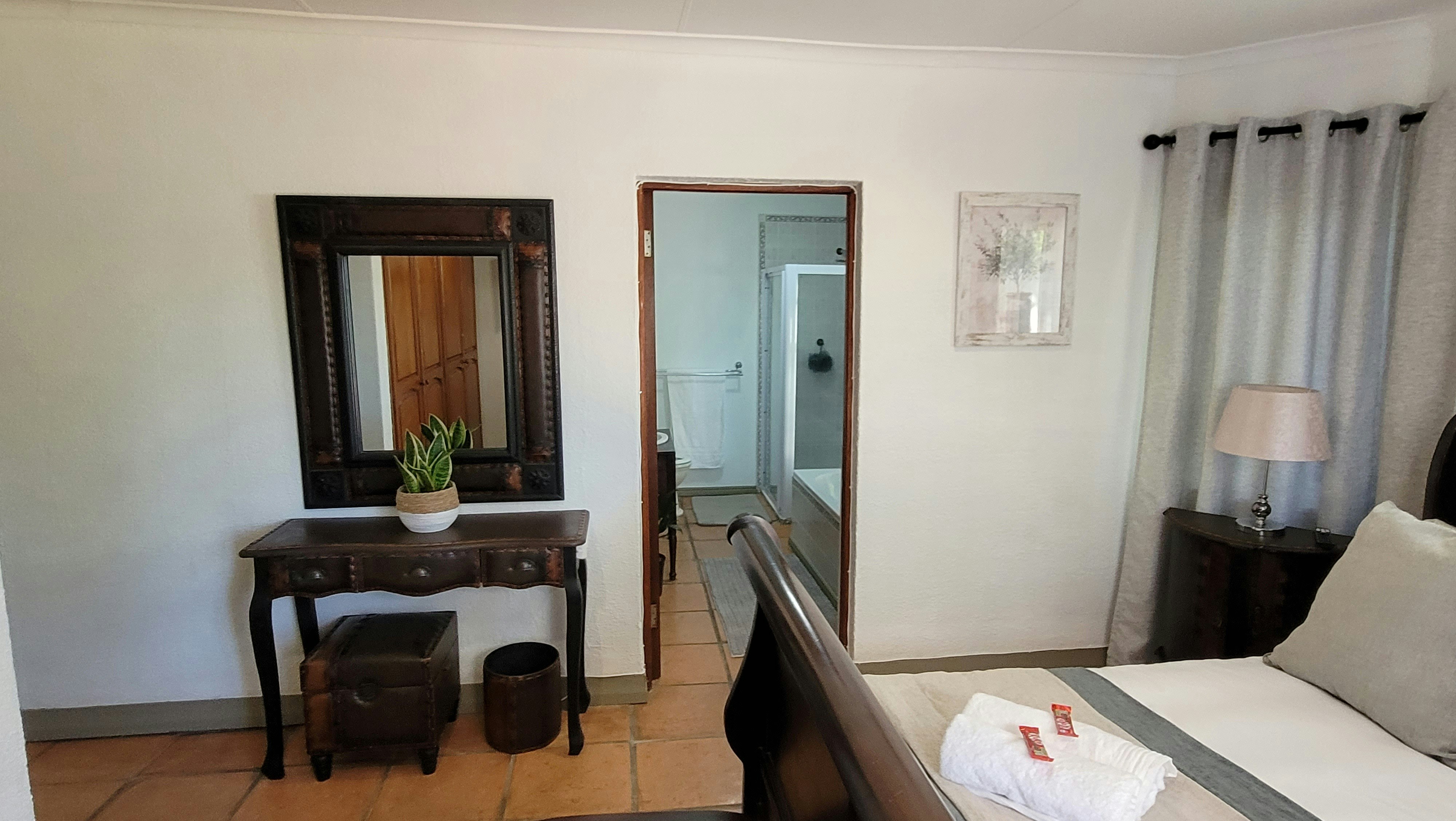 This guesthouse offers a choice of 2 beautifully appointed rooms, both with en-suite bathrooms. The rooms feature comfortable beds, soft duvets, crisp linen, and private entrances. A self-catering unit is also available, featuring a fully equipped kitchen and a lounge area. All units offer additional amenities such as tea- and coffee-making facilities, TVs, and access to free Wi-Fi.