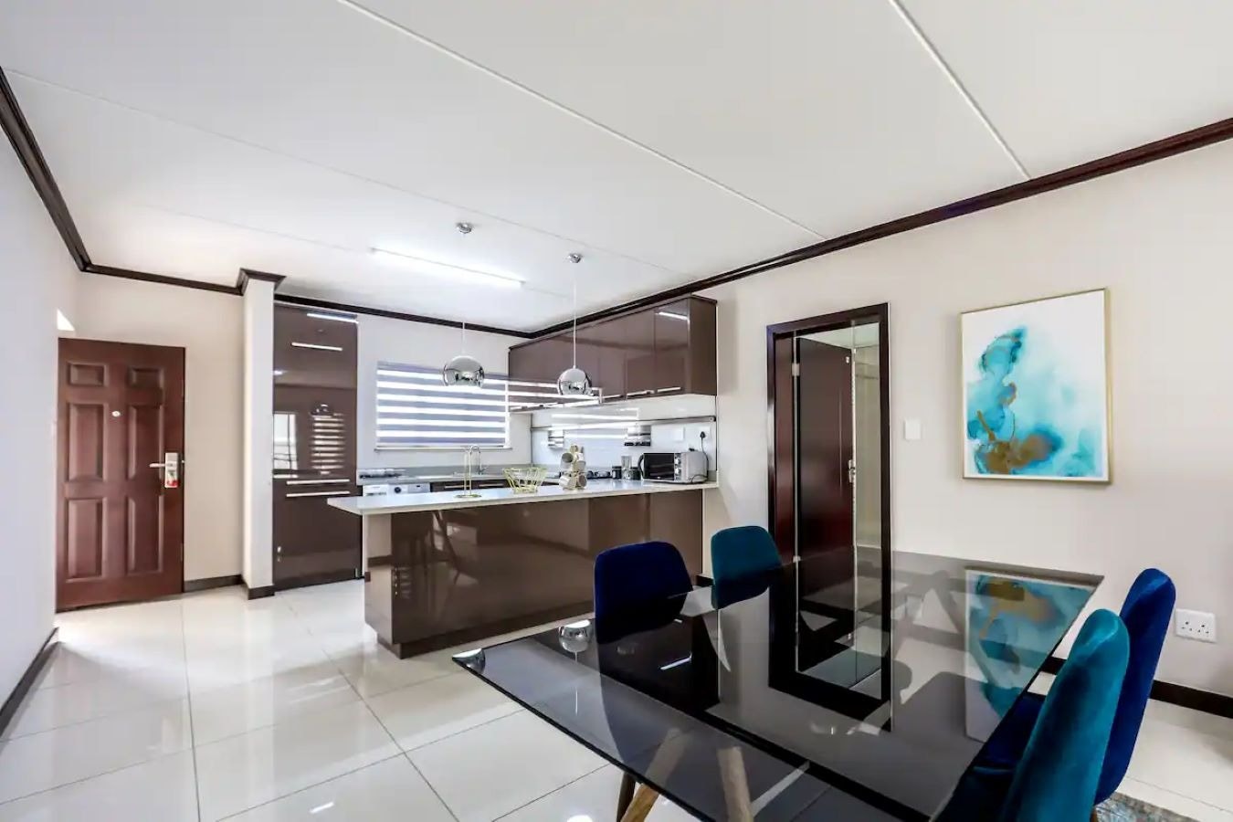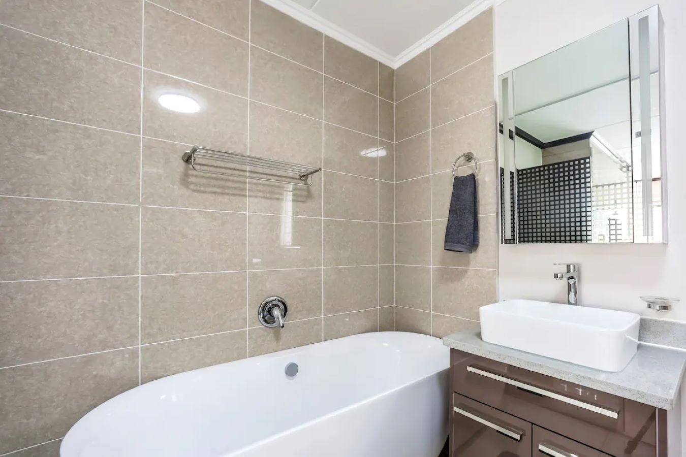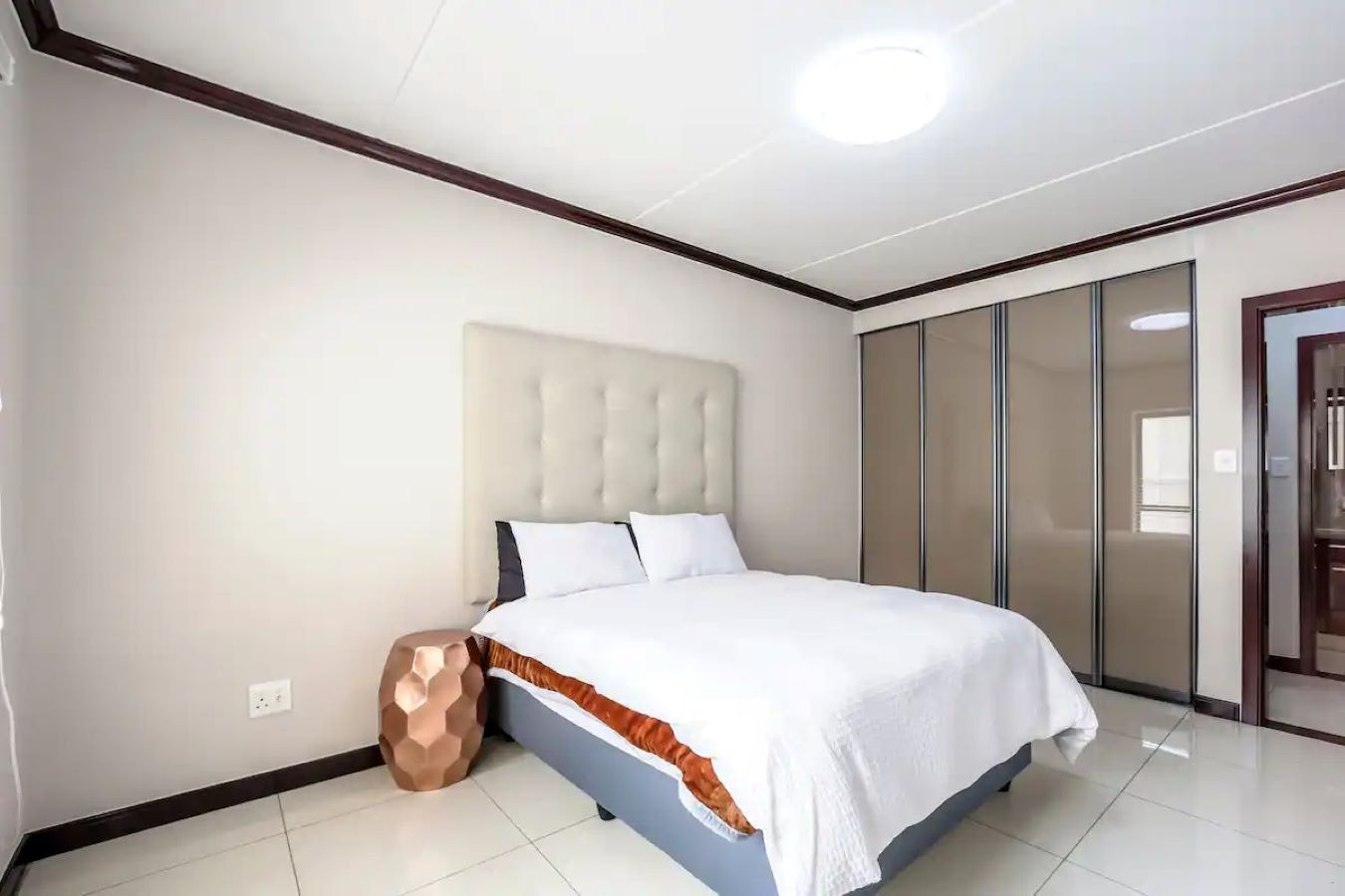 Die woonstel beskik oor 2 slaapkamers en 2 badkamers en bied slaapplek aan 4 gaste. Die hoofslaapkamer het 'n koningingrootte-bed en 'n en suite-badkamer met 'n bad, stort, toilet en 'n wasbak. Die tweede slaapkamer het 'n koningingrootte-bed en gaste gebruik die gastebadkamer met 'n stort, toilet en 'n wasbak.