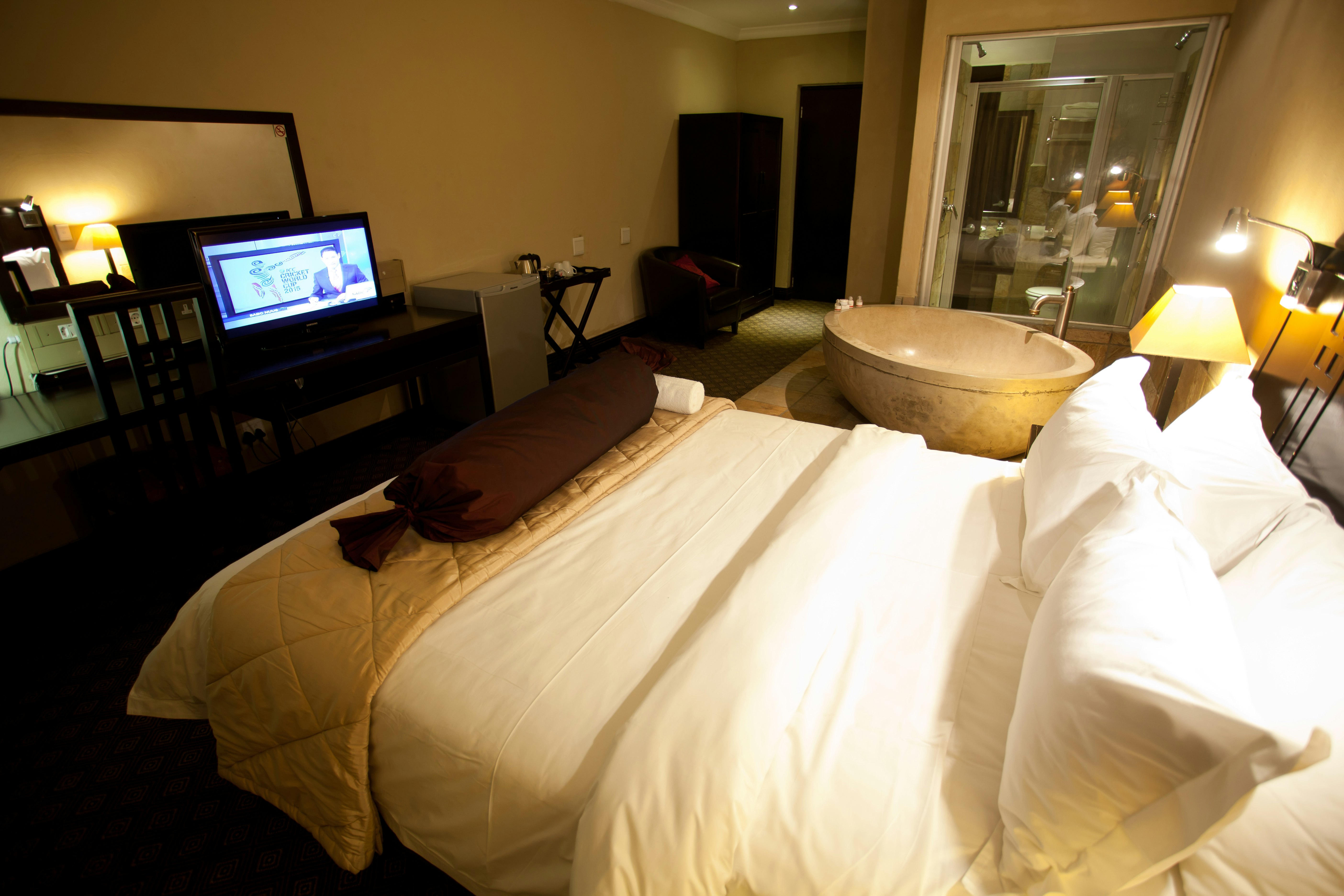 Comfortable accommodation is offered in 59 double en-suite rooms with large workspaces, complimentary internet, and a variety of local and international plug points. Each room is equipped with a TV with selected DStv channels, a mini-bar fridge, air-conditioning, a laptop safe, a hairdryer, and tea- and coffee-making facilities. Guests are provided with 1 GB of complimentary Wi-Fi per day, backed by a fibre line with 100% international usage allowing for business travellers to communicate internationally with ease.