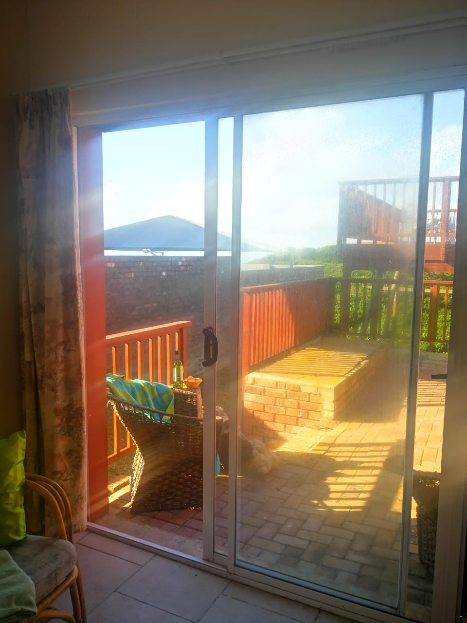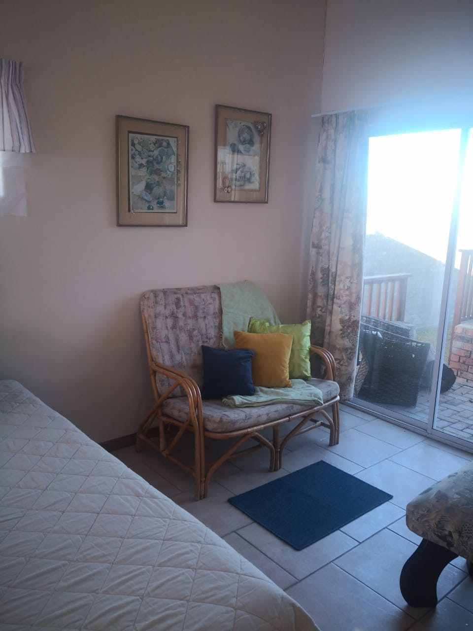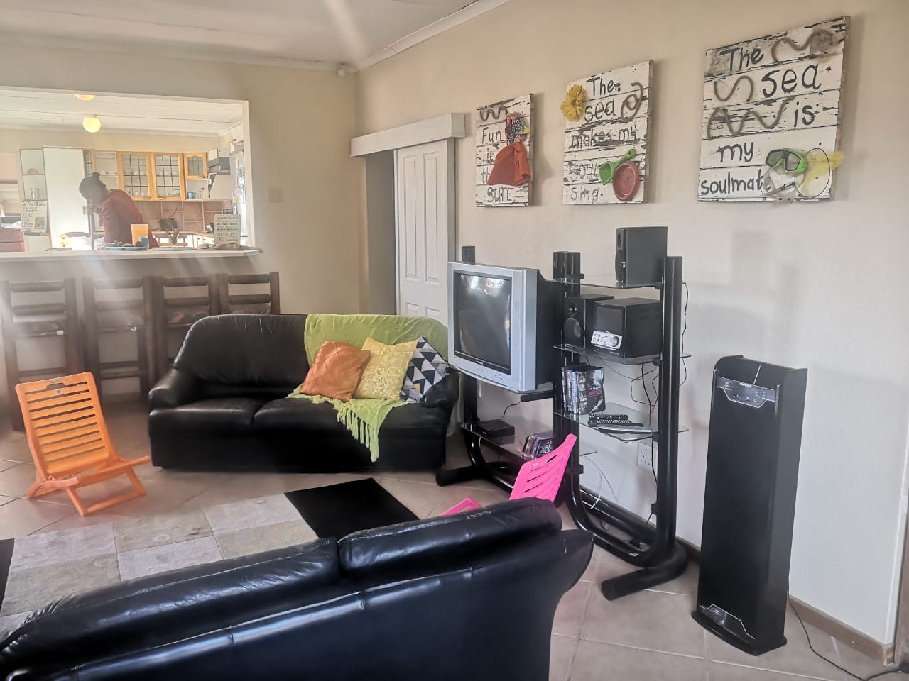 The kitchen is fully equipped for self-catering with a fridge, stove and oven, a microwave, and a breakfast bar with stools. The lounge contains comfortable seating and a TV. There is also an indoor braai facility. Outside, there is a large deck outside to view the ocean and enjoy the sun.