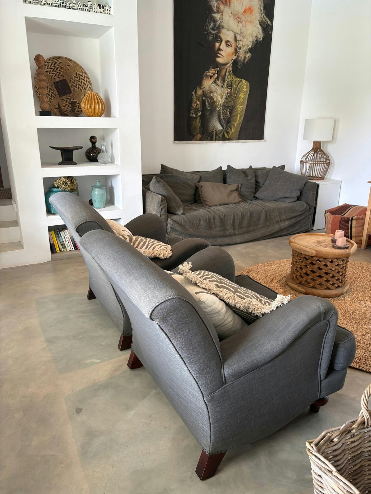 This property can comfortably accommodate a total of 6 guests at a time and comprises 3 bedrooms and 3 bathrooms. The main bedroom is furnished with a king-size bed and features an en-suite bathroom fitted with a shower. The second bedroom contains a queen-size bed and also has an en-suite bathroom with a shower. Another queen-size bed is available in the third bedroom and the third bathroom has a bath and a shower.