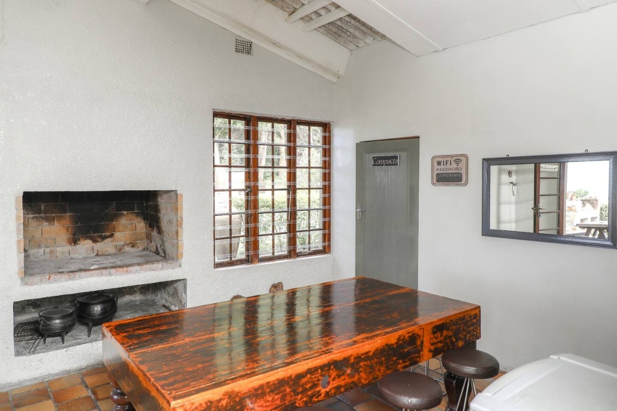 Die oopplan-leefarea bied gemaklike sitplek en 'n eetkamertafel waar gaste saam maaltye kan geniet. Die kombuis is goed toegerus met 'n stoof, oond, yskassie, mikrogolfoond en koffie- en teemaakgeriewe. 'n TV is in die kombuis beskikbaar vir vermaak, en gaste kan ook binnenshuise braaigeriewe geniet vir gesellige aande. Buite kan gaste op die patio ontspan of in die houtvuur-warmbad week terwyl hulle die rustige omgewing inneem.