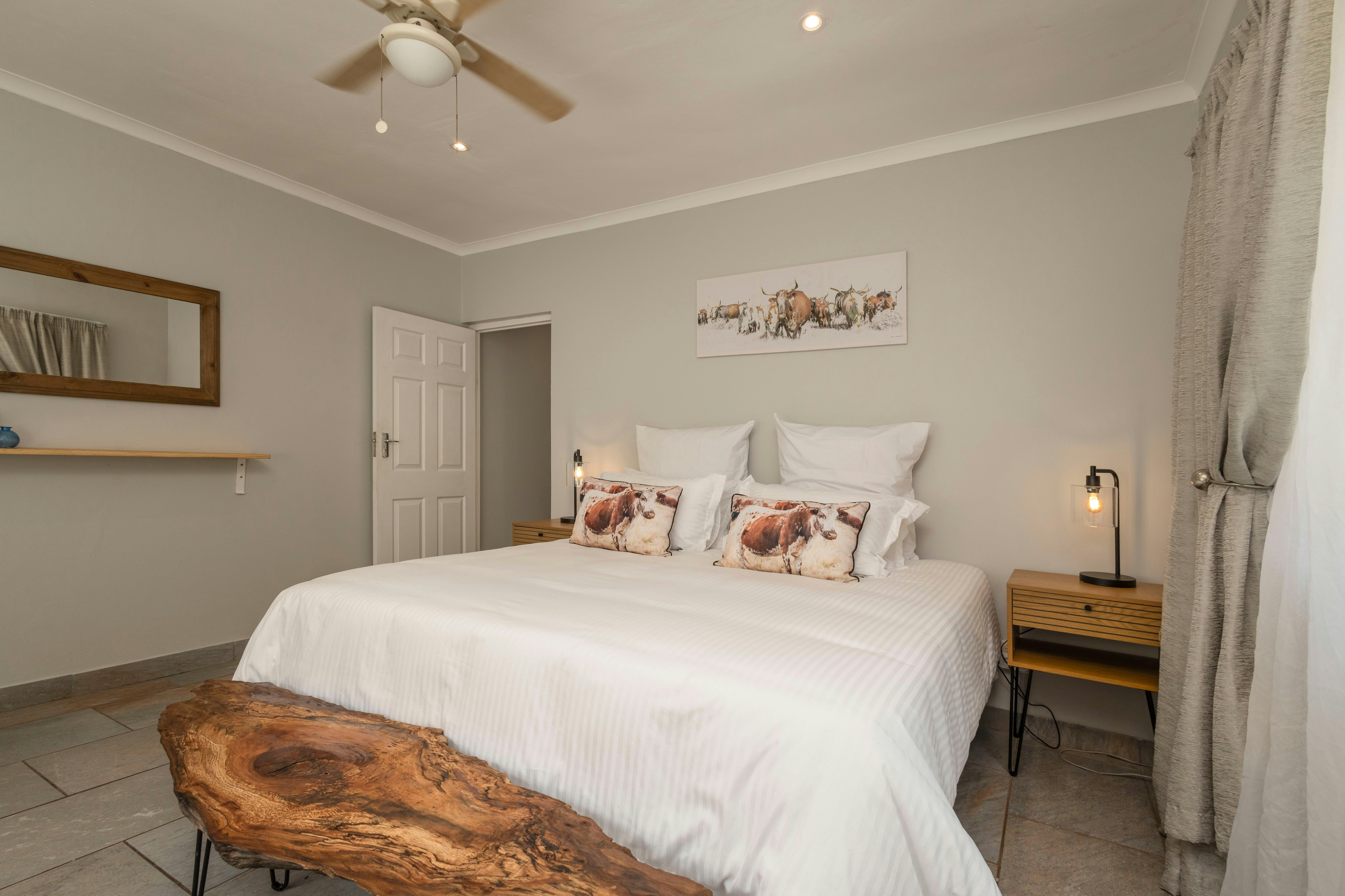 Accommodation is offered in a choice of 2 cottages: Nguni Cottage and Boma Cottage. Each cottage can accommodate 2 adults and a child and features a comfortable bed and an en-suite bathroom. Each cottage comes equipped with a kitchenette, as well as a patio with outdoor seating. Linen and bath towels are provided.