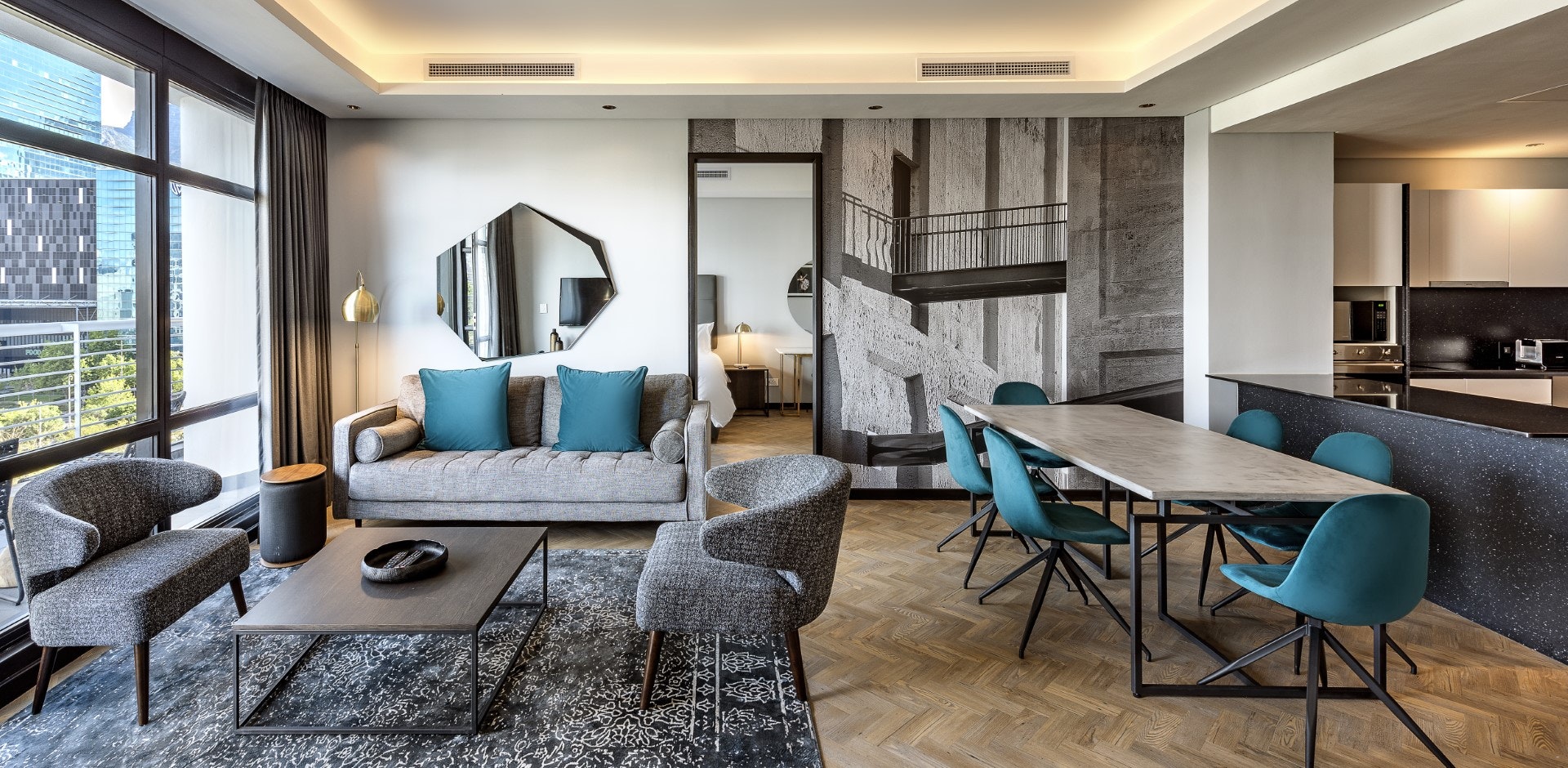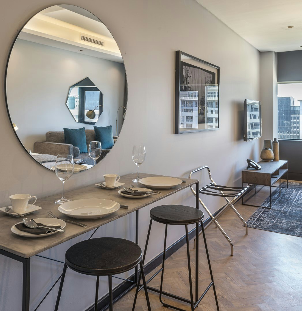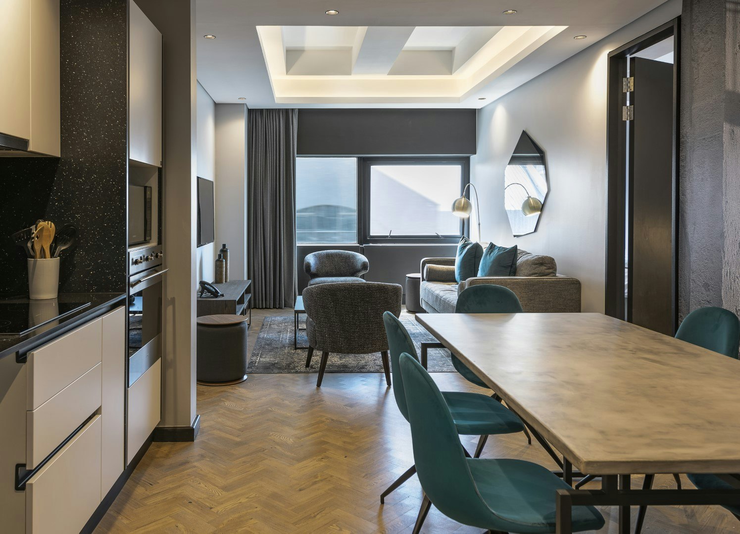Gerieflike verblyf word in ’n reeks woonstelle gebied, wat studios, eenslaapkamer-woonstelle en tweeslaapkamer-woonstelle insluit. Die hotelkamer in ’n woonstel-styl bied pragtige uitsigte oor Kaapstad en Tafelberg. Elke woonstel het ’n privaat kombuisie met moderne toebehore en dit het pragtige afwerkings en dekor.