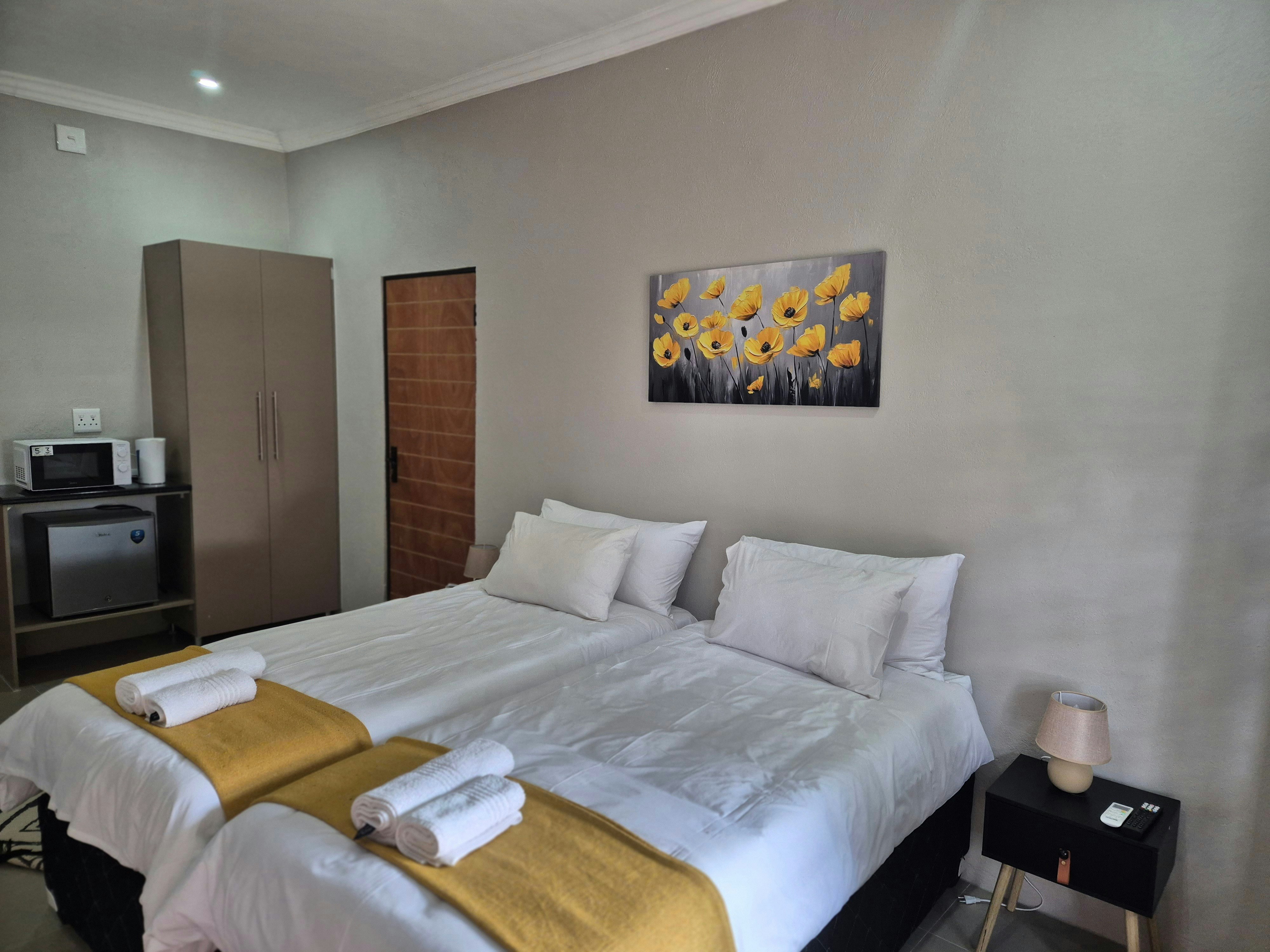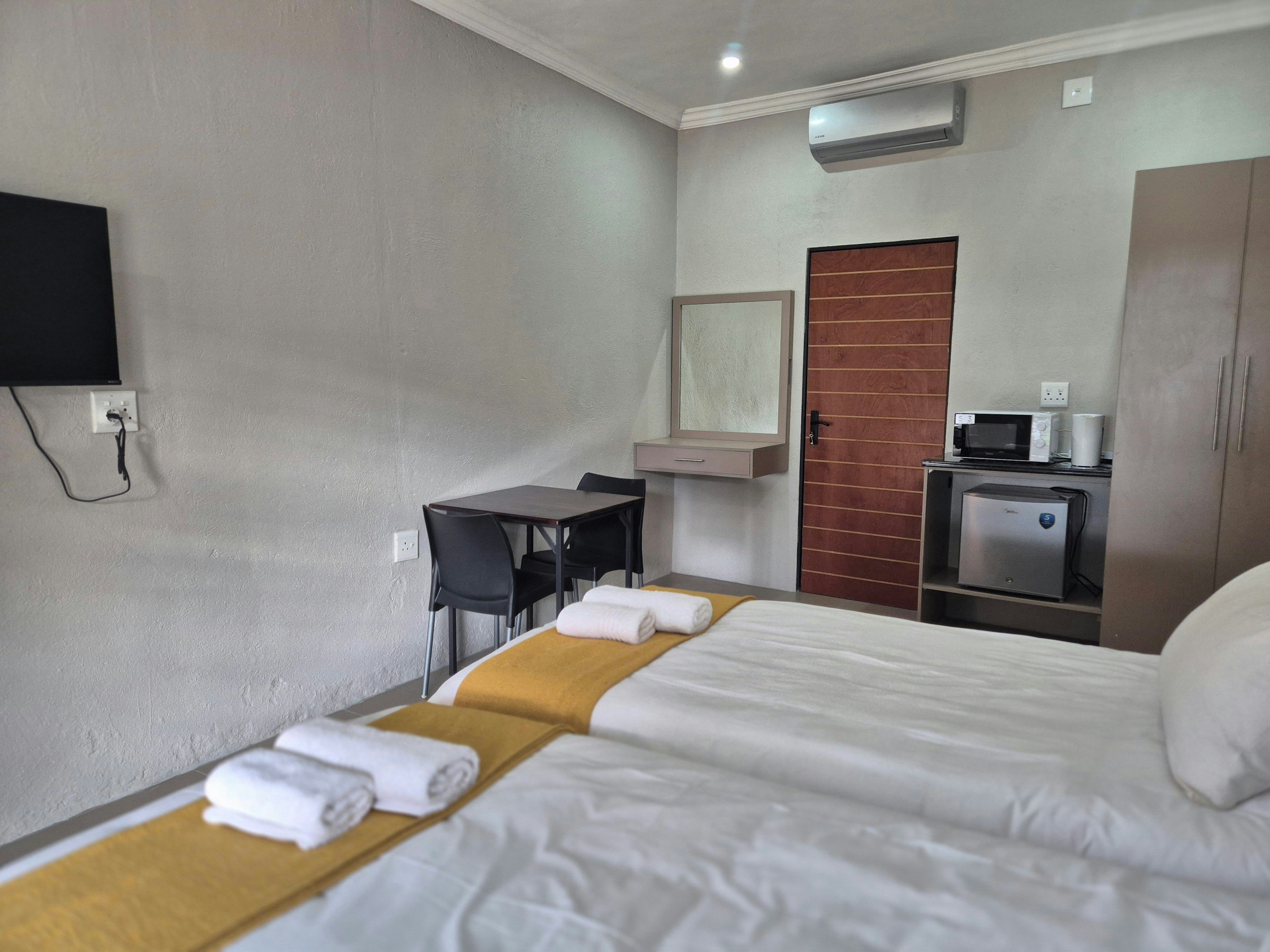 The guest house also boasts excellent communal facilities, including a fully equipped kitchen, a cosy lounge, a welcoming dining area, a refreshing swimming pool, and a braai area. Secure parking is available, with dedicated space for caravans and trailers.