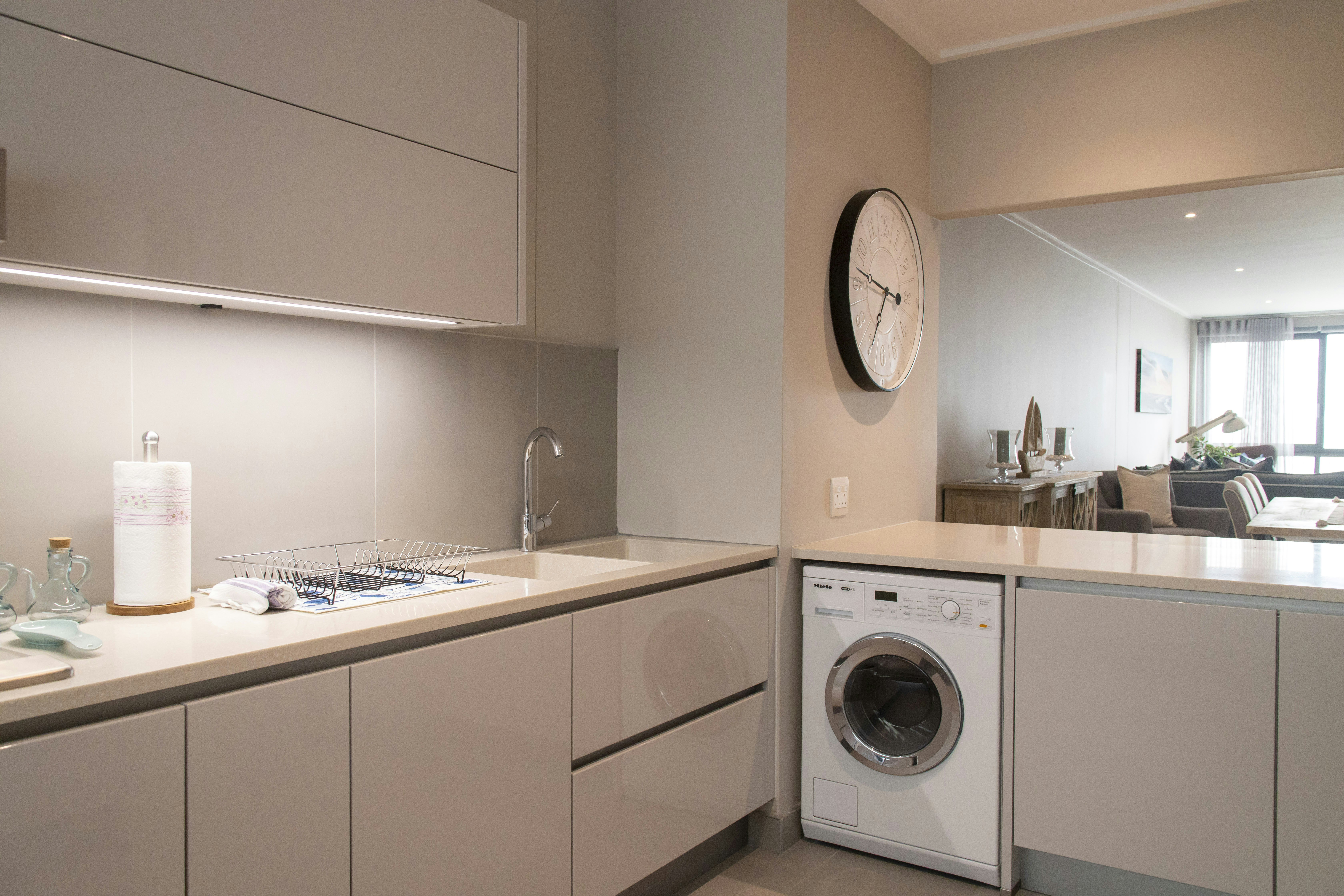 The kitchen is fully equipped for self-catering and contains a stove, oven, fridge-freezer, microwave, cutlery and crockery as well as a washing machine. The dining area has seating space for 6 people, while the lounge has a comfy lounge suite and a wall-mounted flat-screen TV and an indoor gas braai.