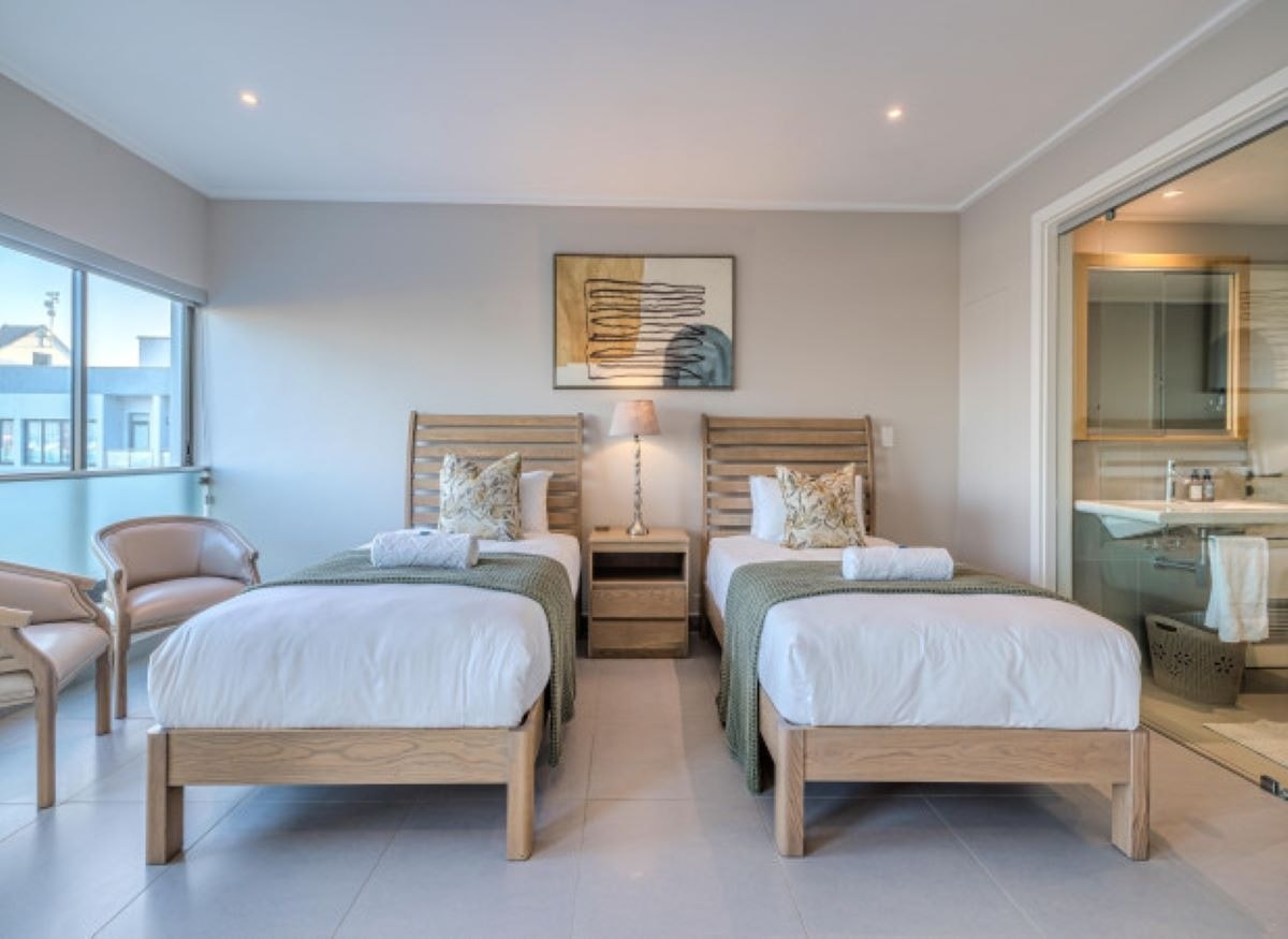 This beautiful apartment can accommodate 4 guests and comprises 2 charming bedrooms, each furnished with a cosy double bed and an en-suite bathroom featuring a shower, washbasin, and toilet. Step out onto the private balconies from either bedroom, where you can relax on the furnished decks and soak in the stunning ocean views. Linen and bath towels are thoughtfully provided to ensure a hassle-free stay.