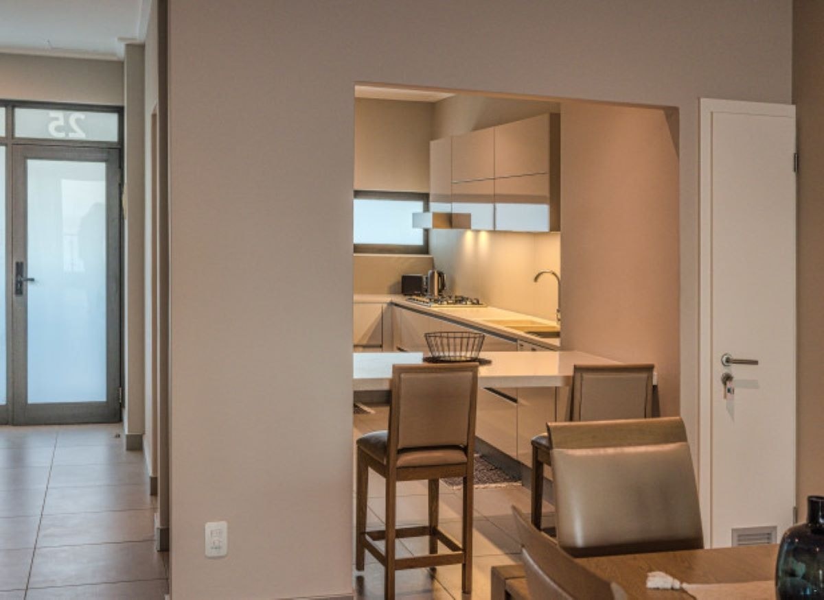 The inviting living area includes a fully equipped kitchen, boasting a microwave, stove, oven, and coffee and tea making facilities, along with a coffee maker for that perfect morning brew. You'll also find a dishwasher, washing machine, tumble dryer, cutlery, and crockery, making it easy to whip up a delicious meal. Gather around the 6-seater dining table for memorable shared meals. The cosy lounge area, complete with an L-shaped couch and indoor braai, flows effortlessly onto the balcony with outdoor furniture – an idyllic spot for sundowners as you take in the breathtaking scenery. For your convenience, secure parking is provided throughout your stay.