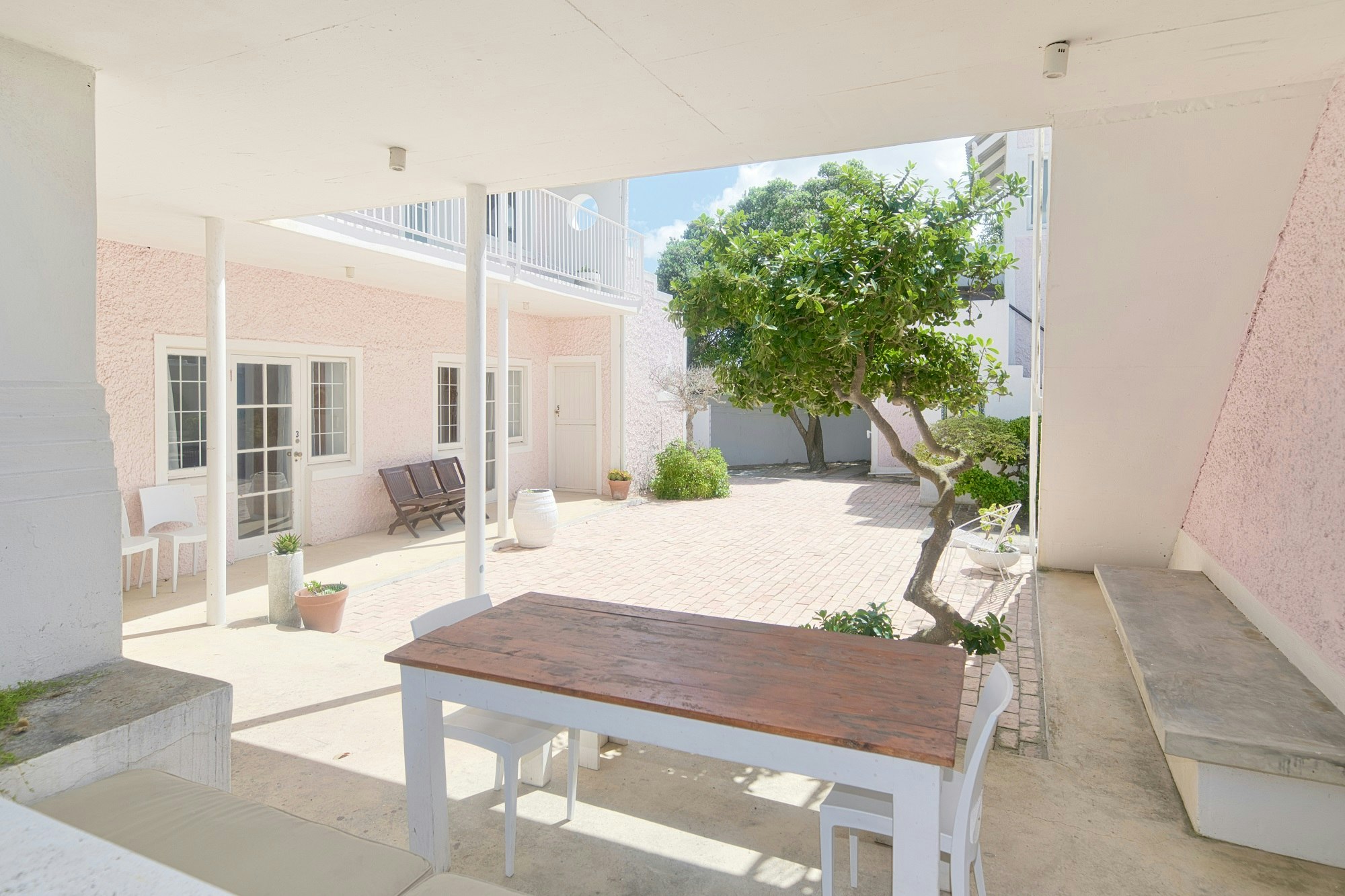 Dié dubbelverdiepinghuis het 5 slaapkamers met privaat ingange en elke kamer lei na die binnehof. Twee van die en suite-kamers is bo, met 'n koninggrootte-bed in die een en 2 enkelbeddens in die ander. Elkeen van dié kamers het 'n en suite-badkamer met 'n stort. Onder is nog 2 slaapkamers waarvan 1 'n dubbelbed, 'n enkelbed en 'n en suite-badkamer, en die ander 2 enkelbeddens het. Net buite hierdie slaapkamer is 'n badkamer met 'n stort en 'n toilet. Daar is ook 'n ekstra kamer met 'n dubbelbed en 'n badkamer met 'n bad beskikbaar. Linne word voorsien, maar gaste moet asb. hulle eie handdoeke saambring.