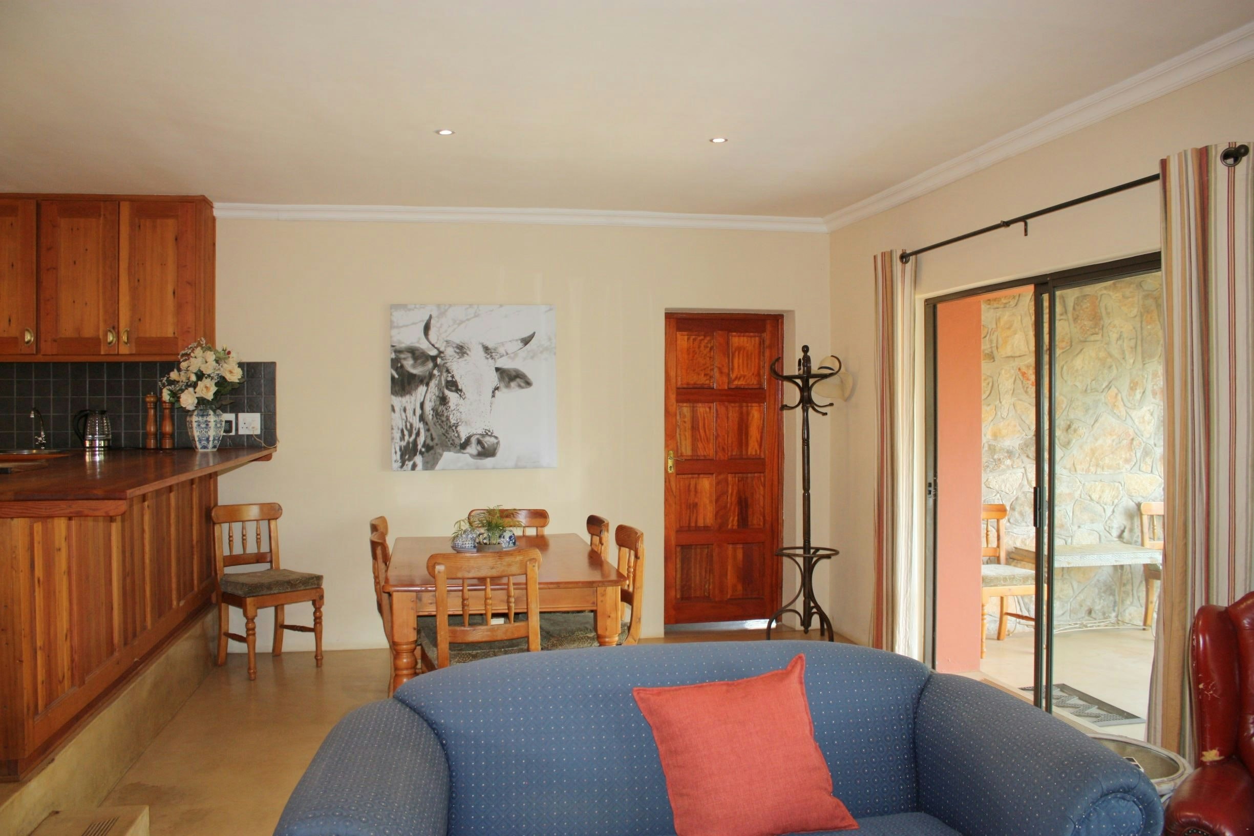 Die oopplan-kombuis, vergesel deur 'n etenstafel met sitplek vir 6, is volledig gemeubileer met 'n stoof, oond, mikrogolf, broodrooster, ketel, yskas-vrieskas, breekware en eetgerei. Die sitkamer is ingerig met gemaklike sitplek, 'n TV met satellietkanale, asook 'n kaggel vir kouer nagte.