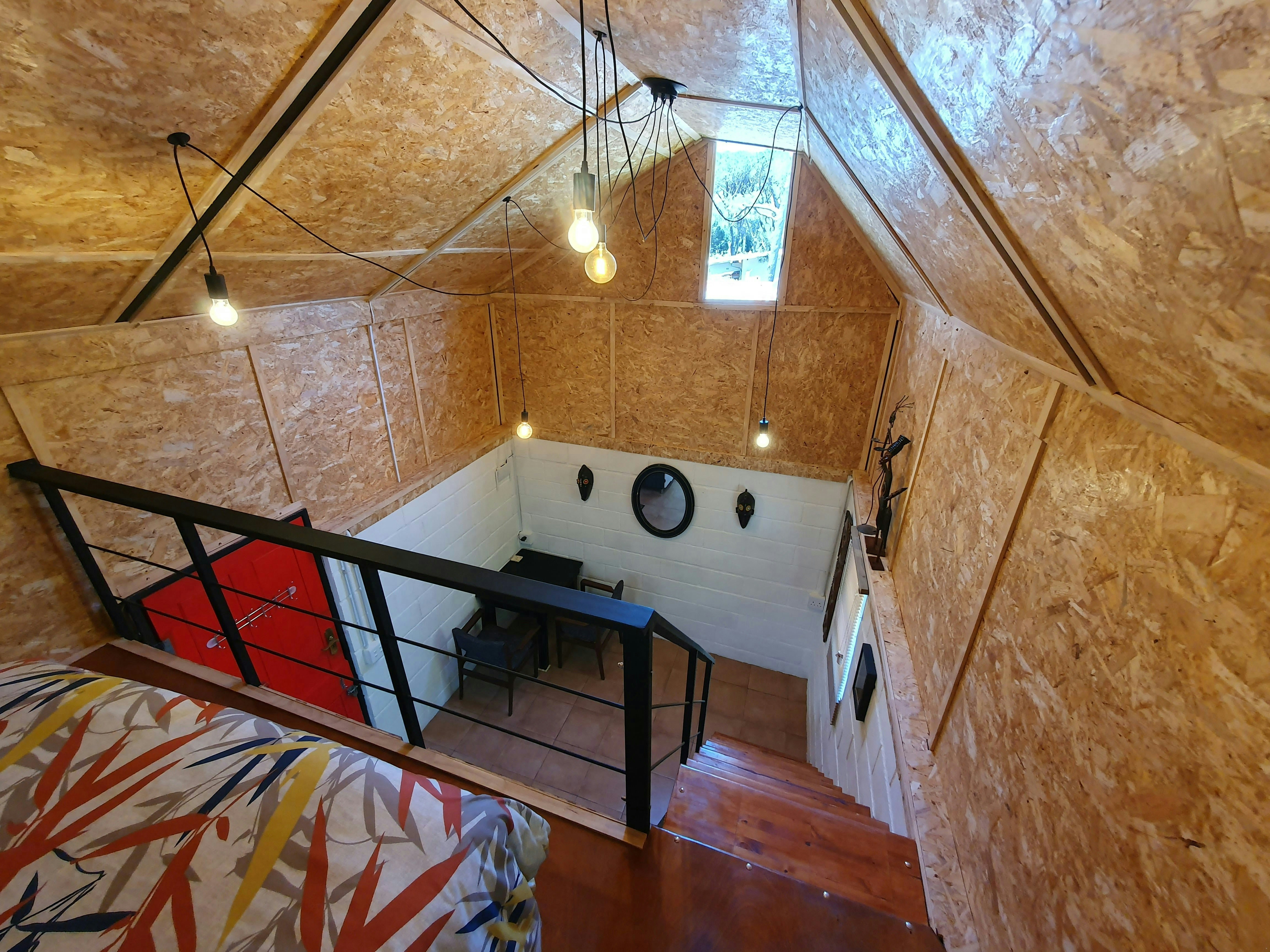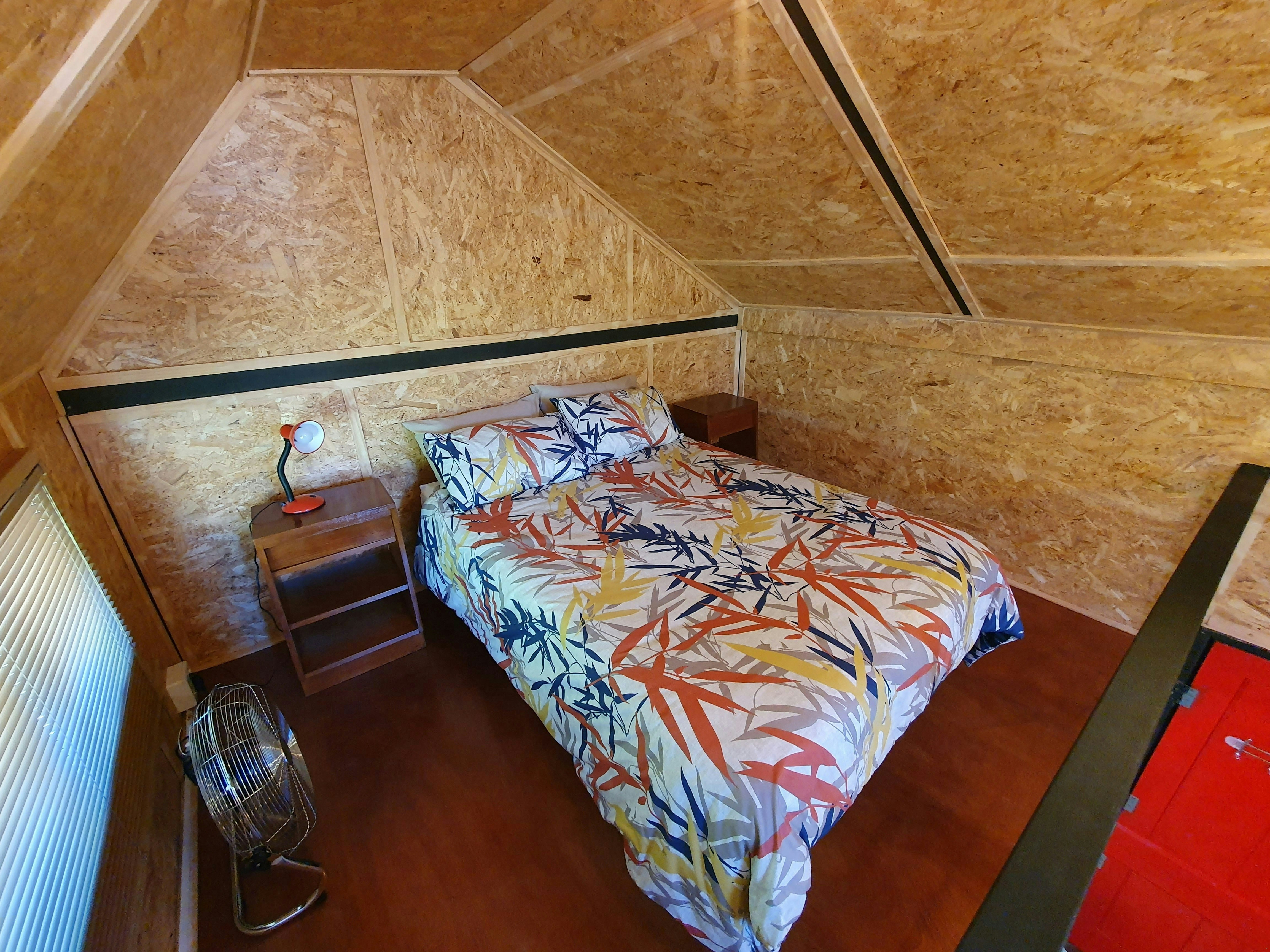 The barn-style units each sleep 2 guests in a mezzanine room accessed by a flight of stairs. The sleeping areas are furnished with a double bed, while the bathrooms are fitted with a shower.