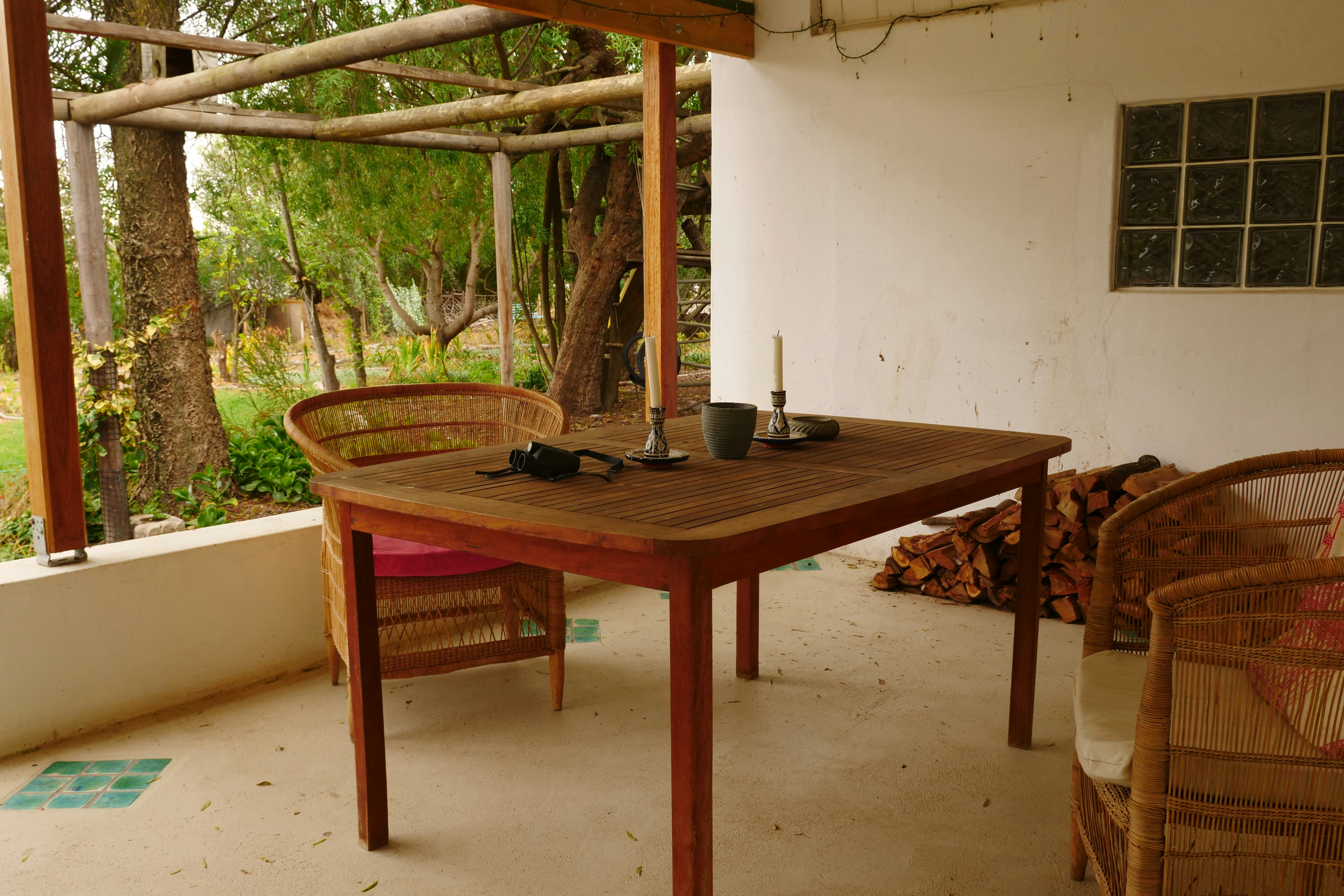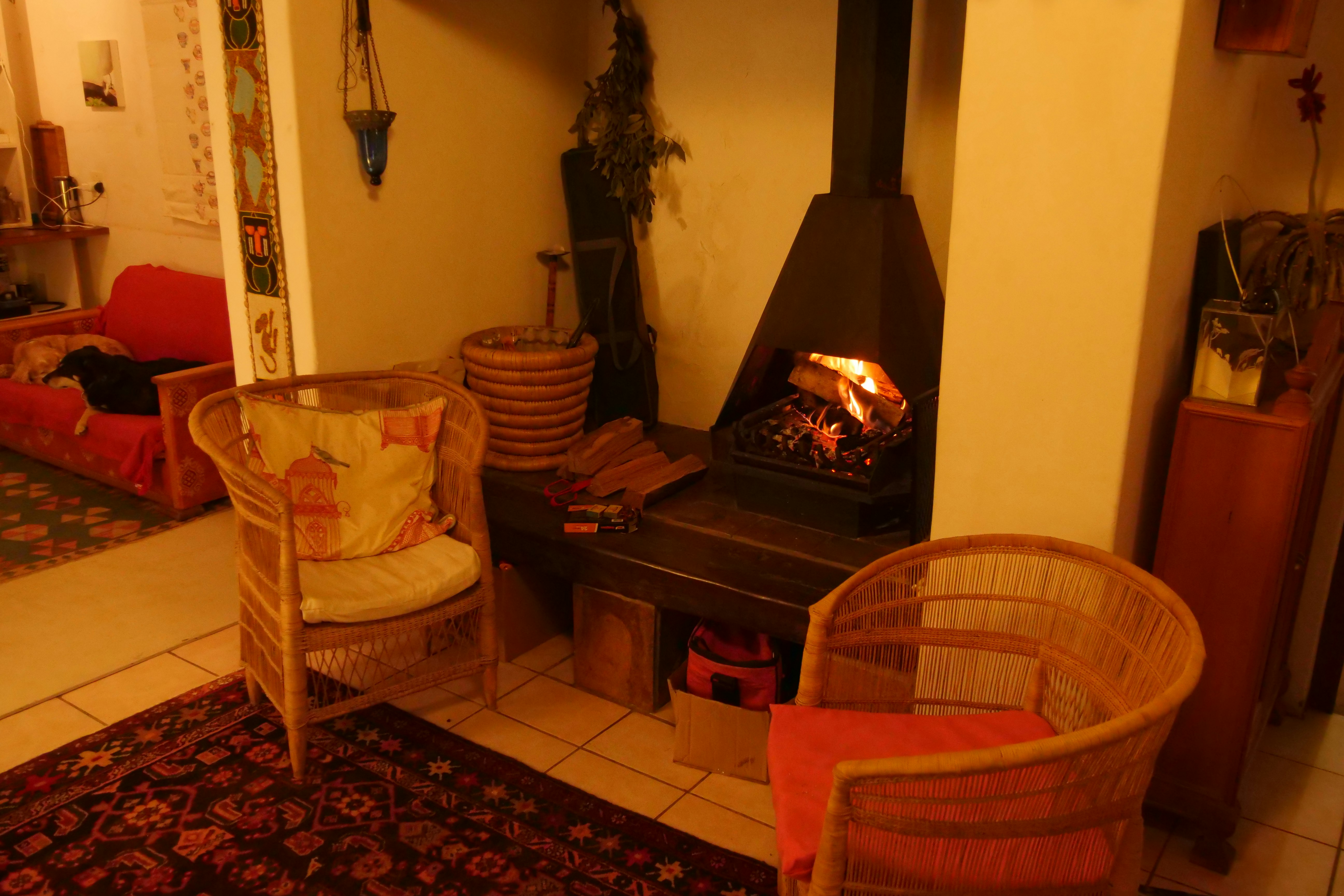 In winter, it is cosy to sit in front of the fireplace in the living area. In summer, relax on the verandah listening to the birds, cool off in the swimming pool, or read a book or snooze in a hammock slung between the trees. Sundowners on the verandah while watching the sunset is the ideal way to spend the evening. The pool is not fenced off, but it does have a safety cover; children need to be supervised at all times.