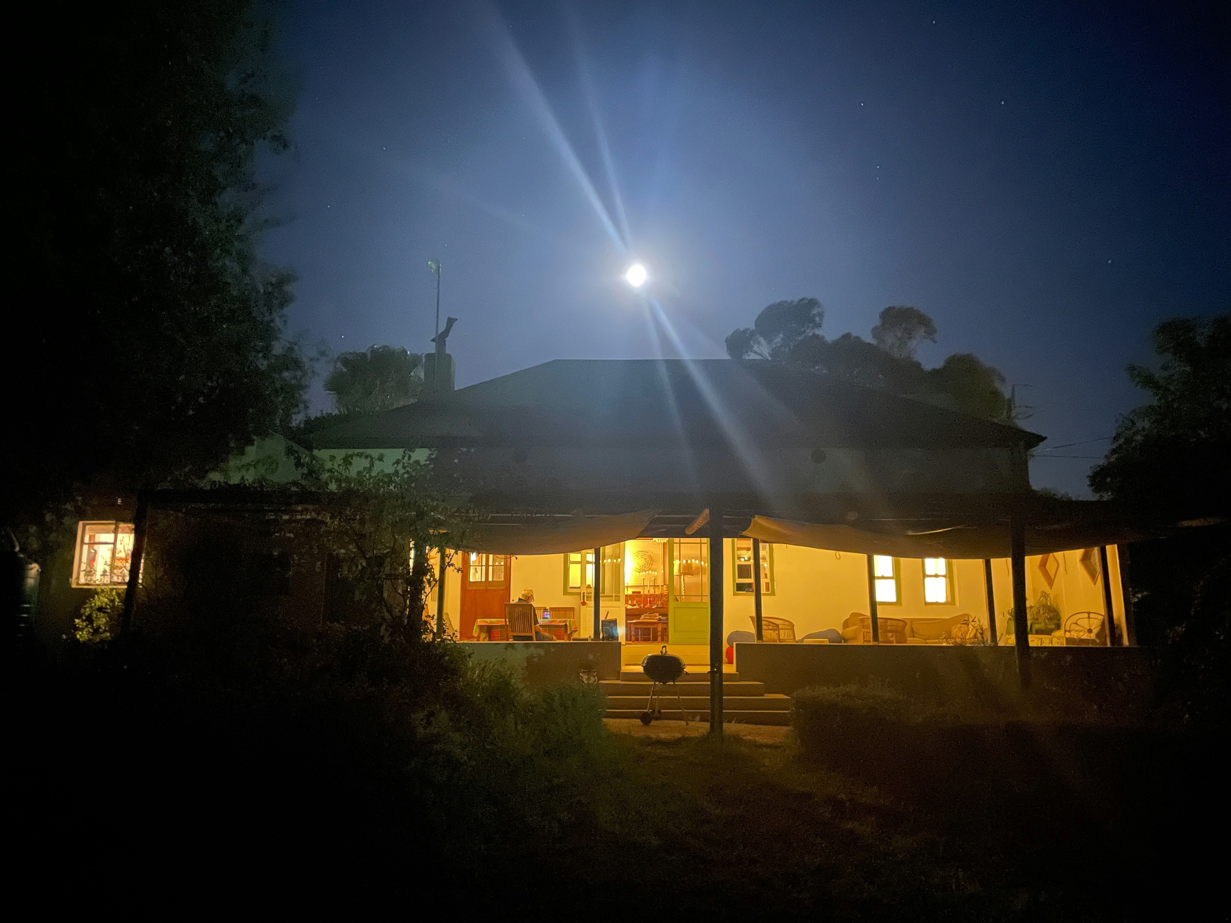 The Retreat is situated in the quiet village of Aurora, 35 km inland on the West Coast, nestled below the Piketberg mountains. The Retreat is one of Aurora's old homesteads, built in 1928; it has thick walls, wooden floors and high wooden ceilings. The property has beautiful trees and a developing garden, and there are several areas within and around the home and garden for sitting and relaxing.