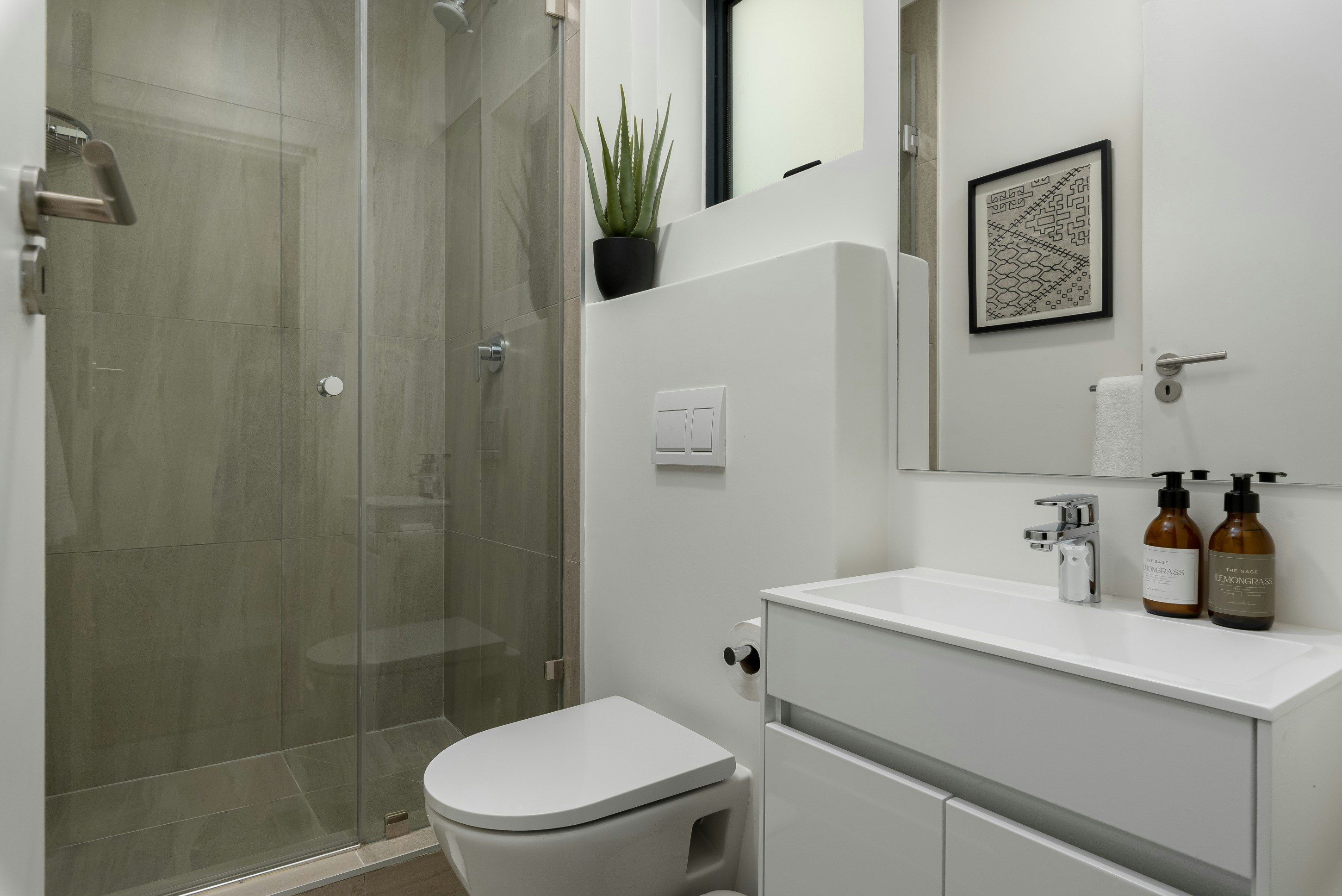 This apartment accommodates up to 2 guests and comprises 1 bedroom and 1 bathroom. The bedroom is furnished with a queen-size bed and features an en-suite bathroom fitted with a shower, washbasin, and toilet.