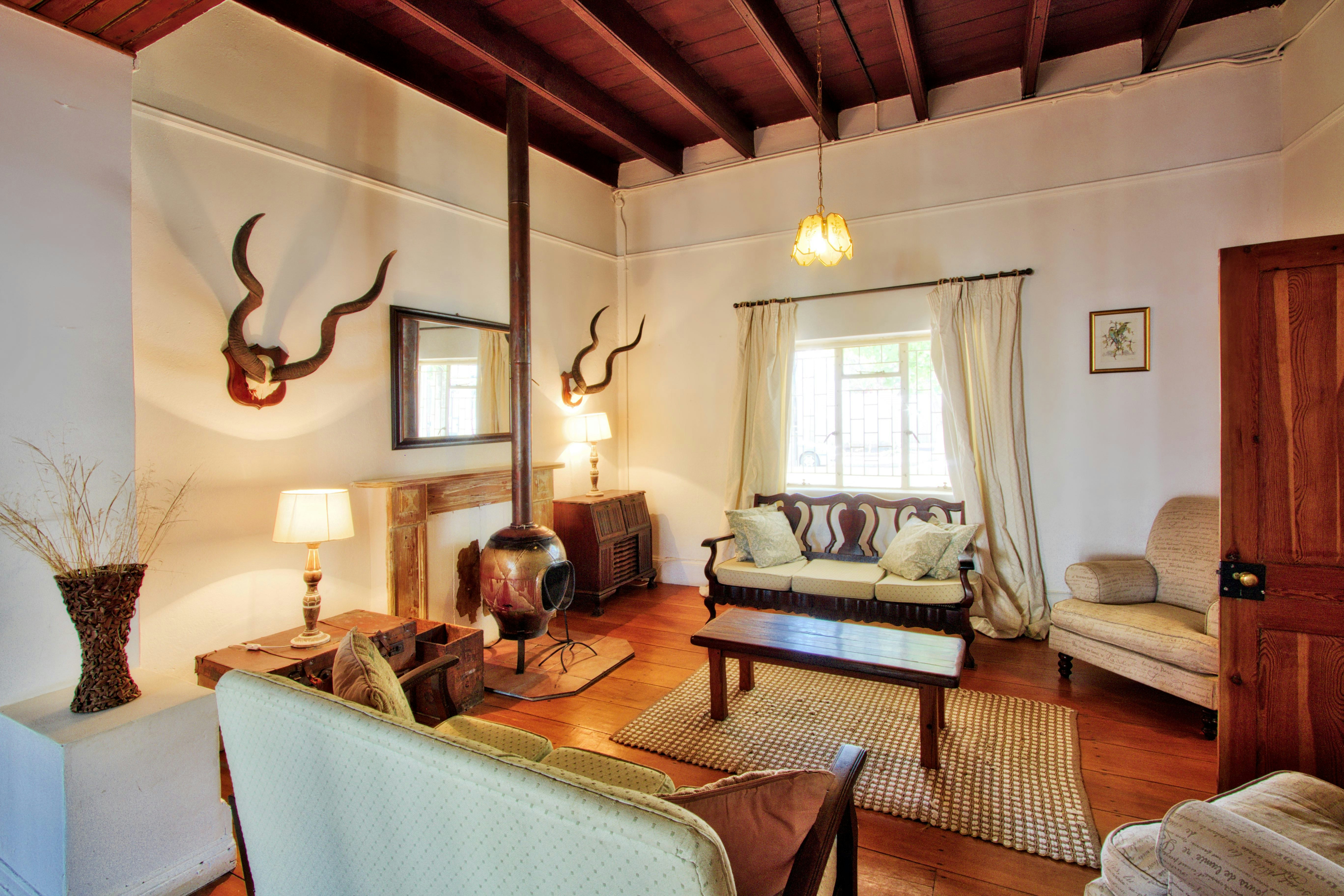 Accommodation comprises 4 bedrooms suited to accommodate 6 adults, and 2 children in a bunk room. The first bedroom is furnished with a double bed, while the second bedroom contains a king-size bed. The third bedroom and bathroom is in a separately restored outbuilding accessed through French doors from the mainhouse via the courtyard. The fourth bedroom leads from the king room, and has a bunk bed suited for 2 children. The kitchen is equipped with everything guests will need for self-catering purposes, including a fridge-freezer combination, stove, oven as well as tea- and coffee-making facilities. The sitting room features comfortable seating, as well as a fireplace for those cold winter nights.