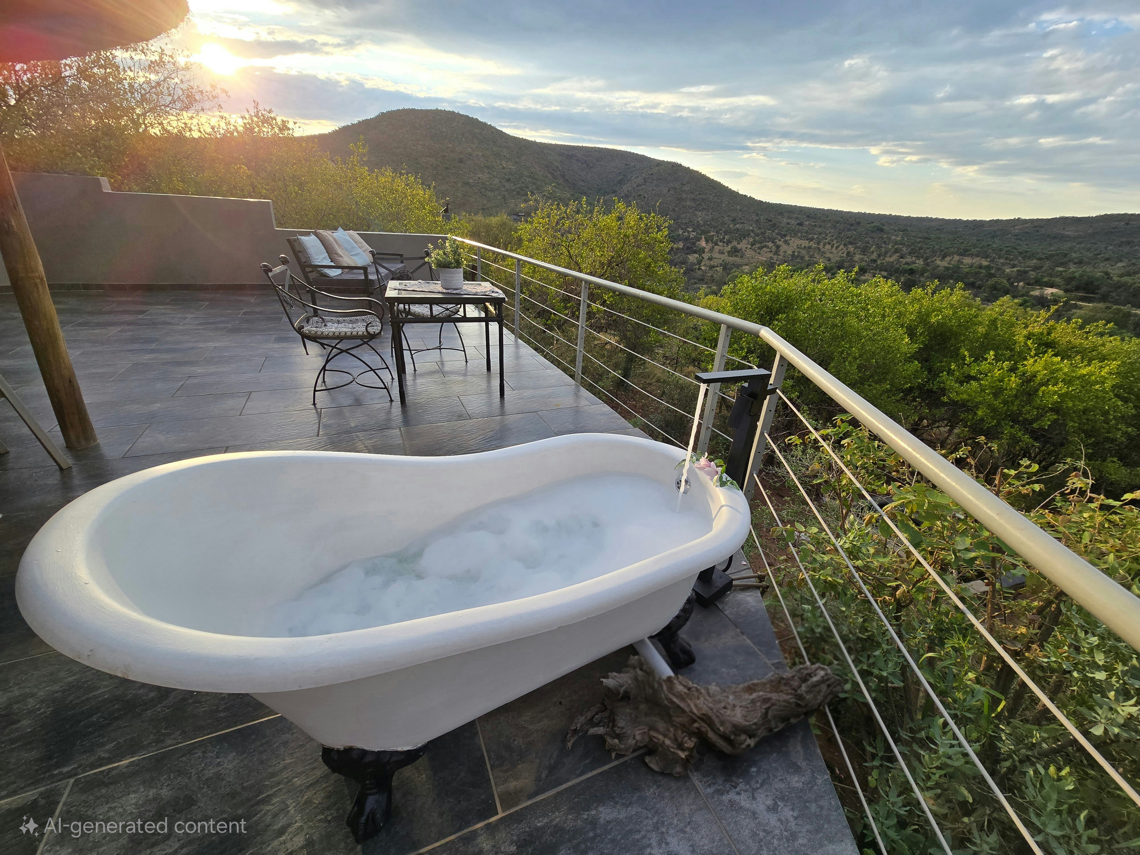 Die View-lodge bied verblyf op 'n heuwel in die Groot 5 Mabalingwe-wildreservaat, 'n malariavrye gebied net 130 km vanaf Pretoria. Hierdie selfsorghuis spog met ongelooflike uitsigte oor die dam en die berge en is perfek vir natuurliefhebbende gesinne of paartjies wat op soek is na 'n romantiese wegbreek. Sien die seekoeie vanaf die stoep en luister na die leeu se vroeë oggendgebrul en die visarend se roep.