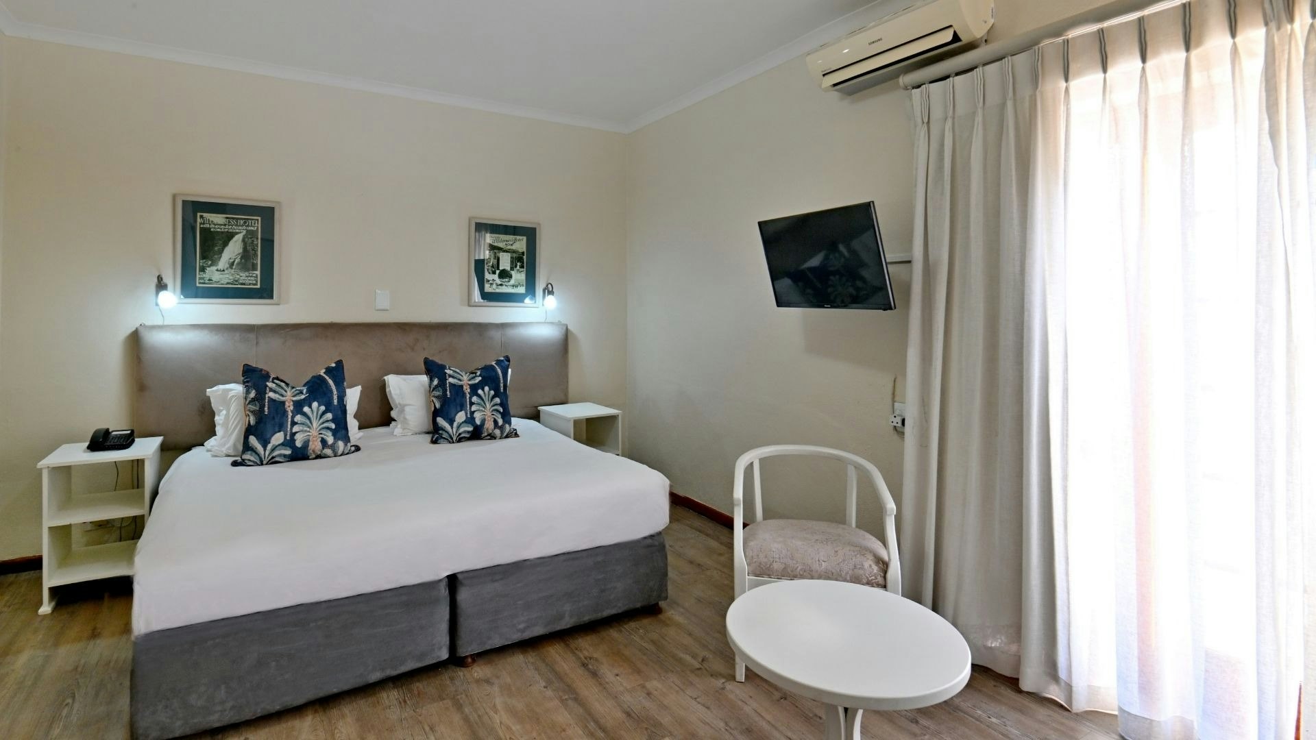 The hotel comprises various rooms, all beautifully and comfortably decorated. All rooms are equipped with tea- and coffee-making facilities, a flat-screen TV with selected DStv channels and air-conditioning.