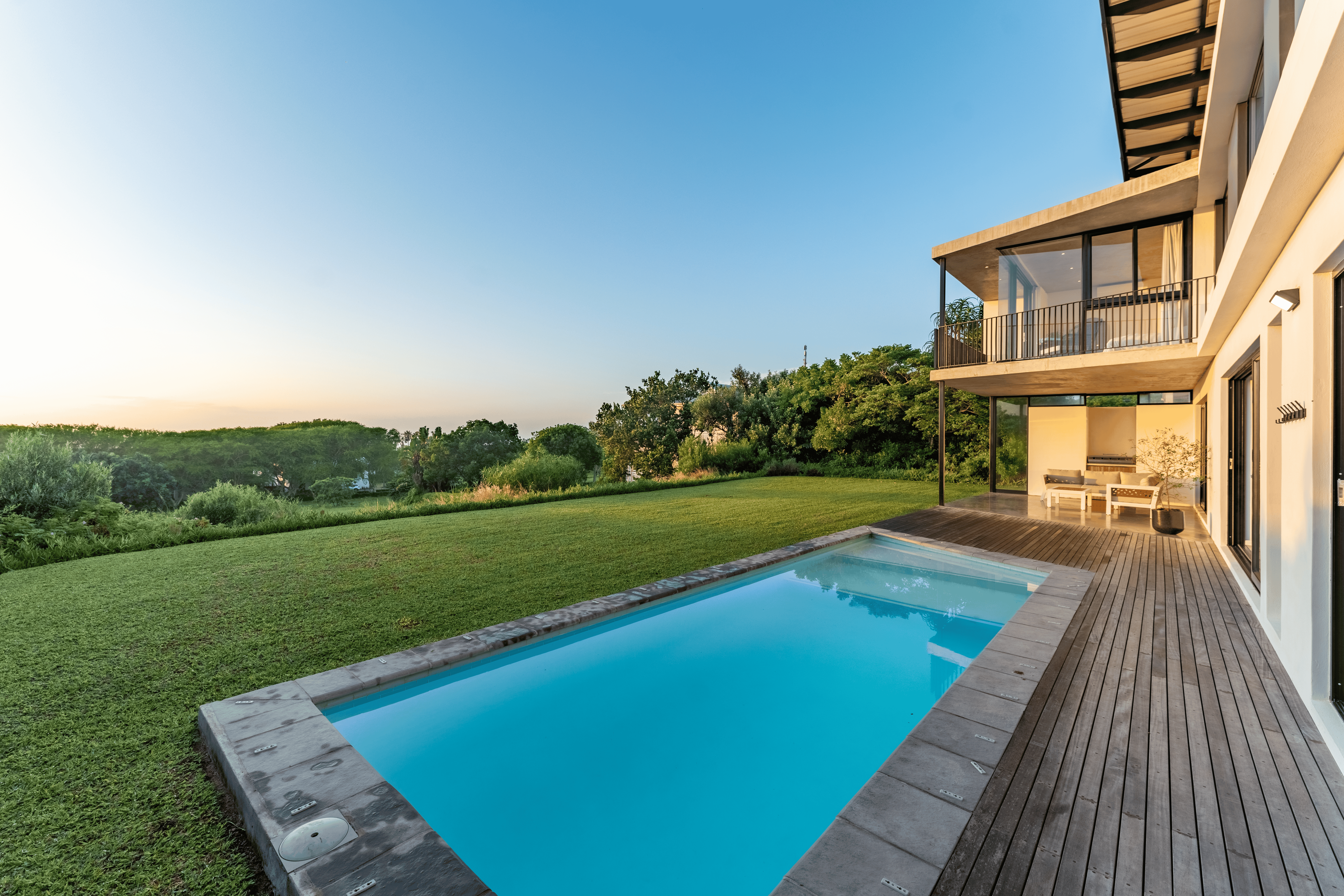 Gaste kan 'n buite-patio met sitplek wat oor die swembad en die tuin uitkyk, en 'n binnehof met 'n onderdakstoep met sitplek, tafeltennis en 'n kroegarea geniet. Braaigeriewe, sonkrag en veilige parkeerplek is op die perseel beskikbaar. Hierdie eiendom is ongeveer 1,4 km van Zinkwazi-strand af, met plaaslike geriewe soos winkels en restaurante in die nabyheid.